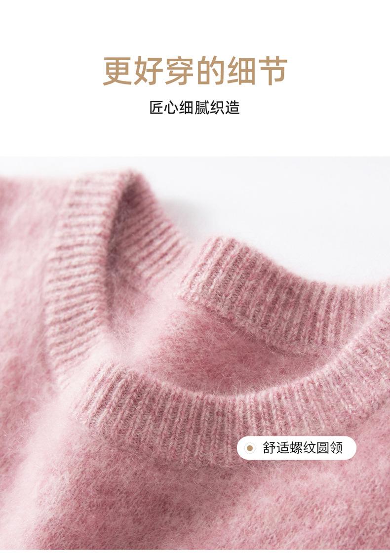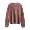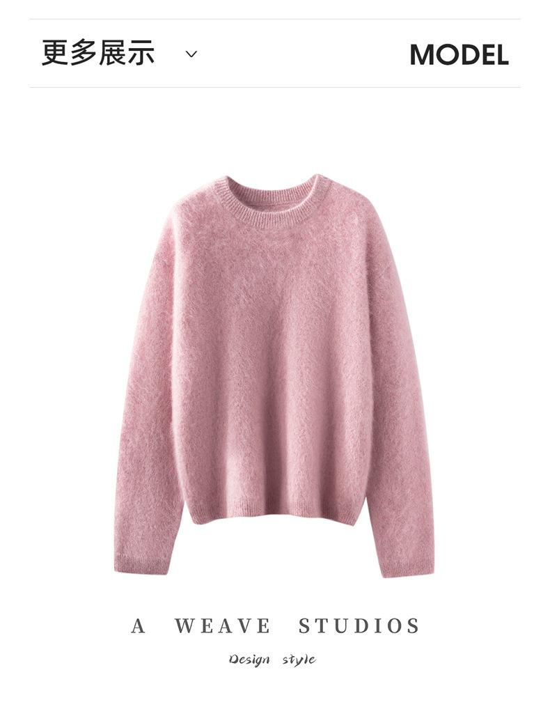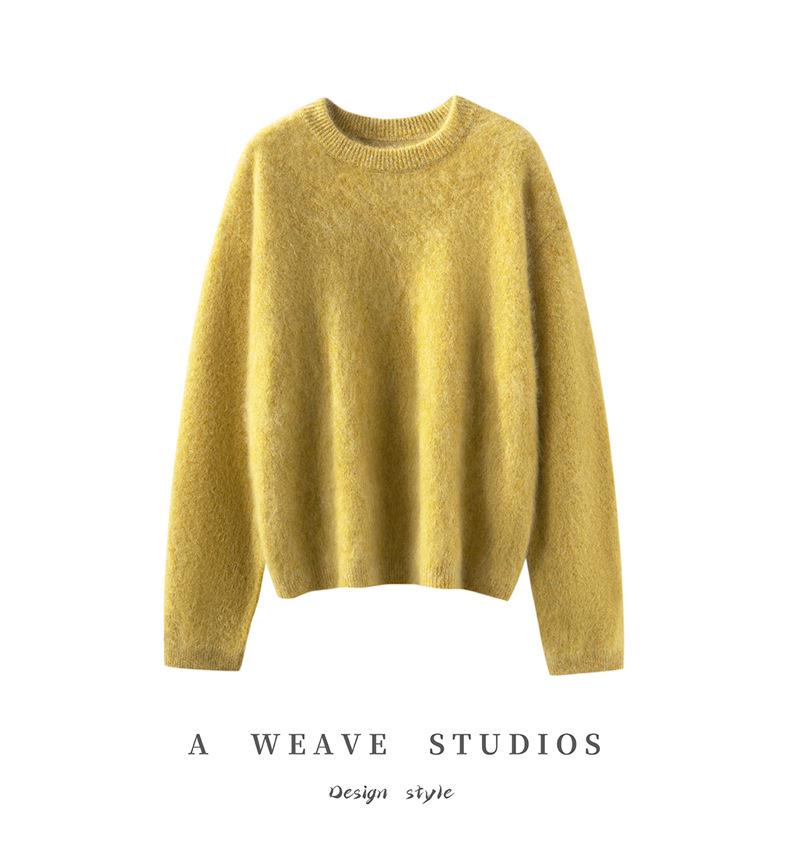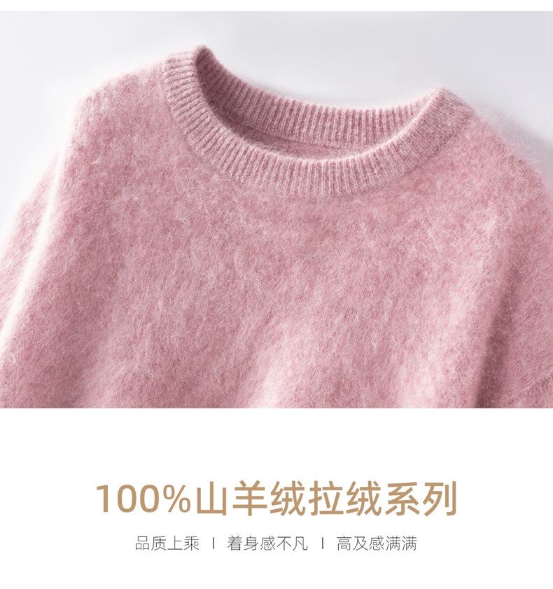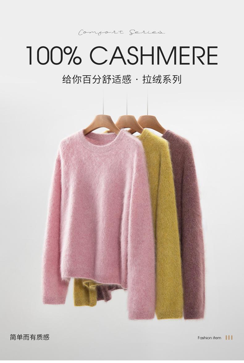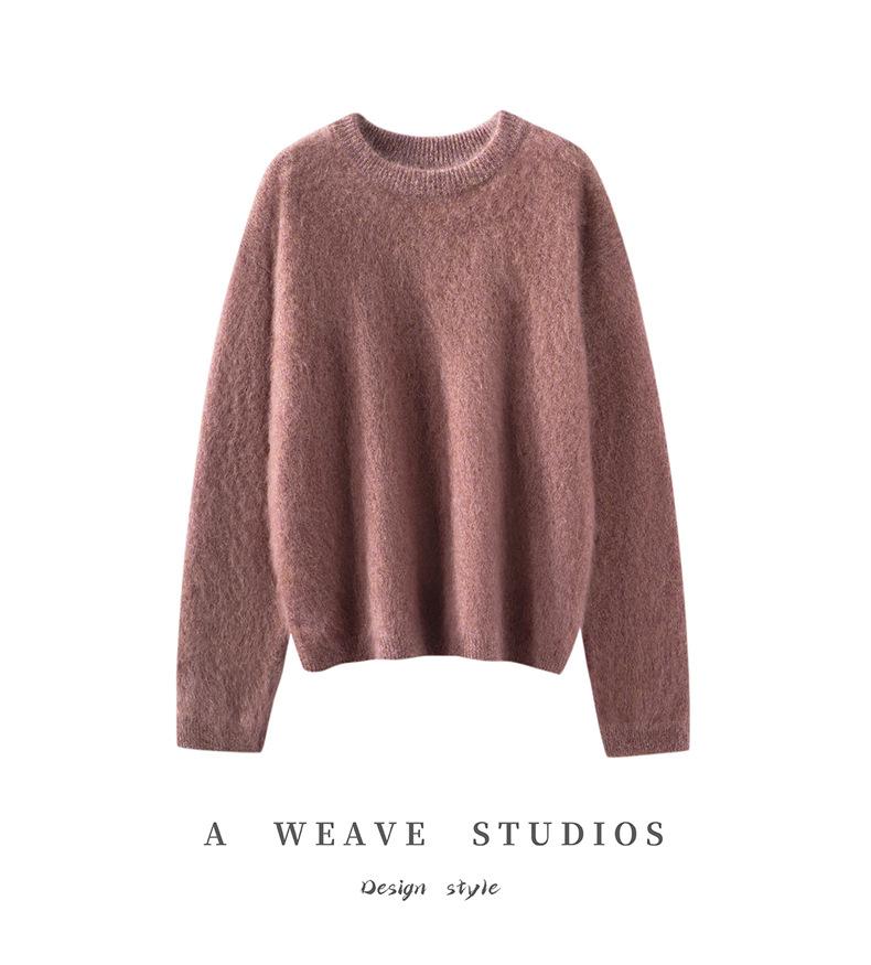 Suéter cepillado para mujer 100% cachemira pura moda simple color sólido cuello redondo holgado versátil punto base suéter de pelo largo