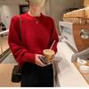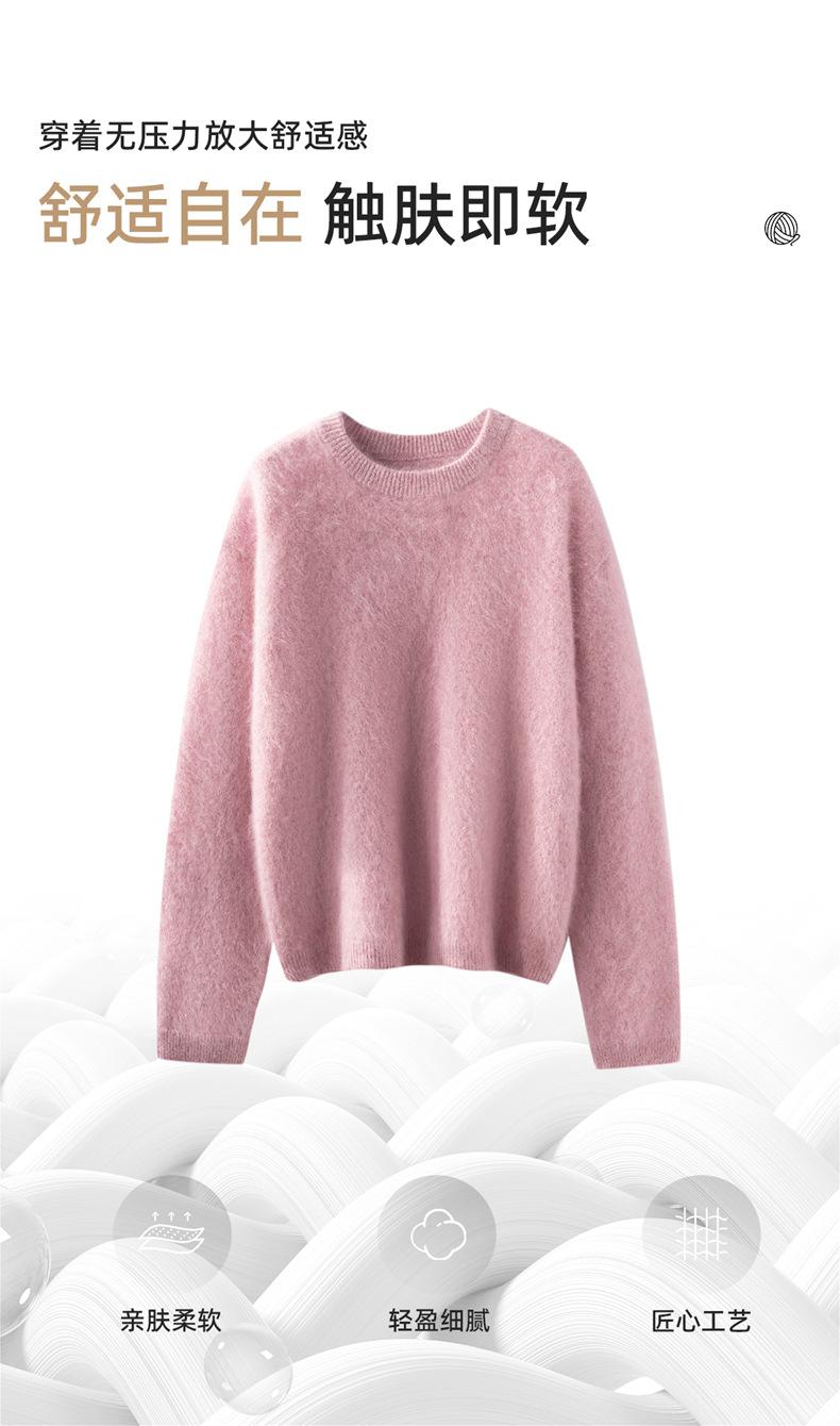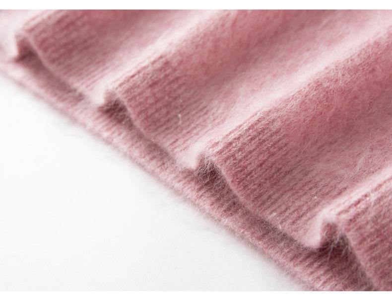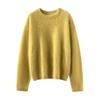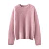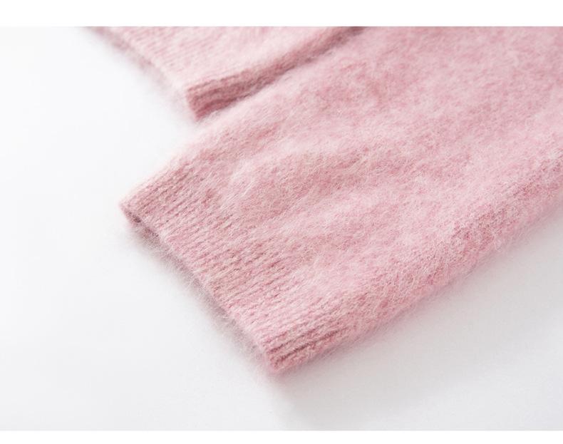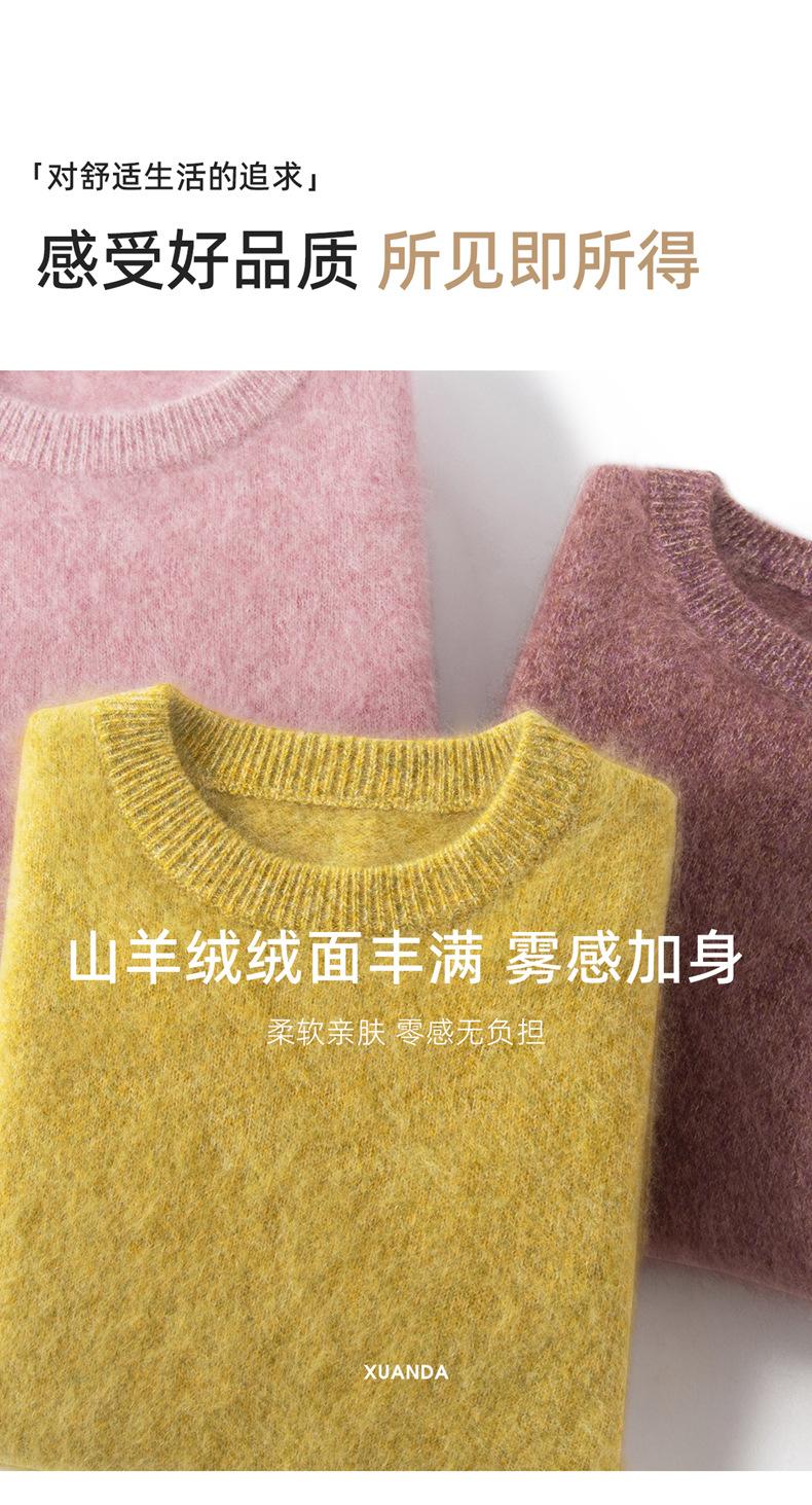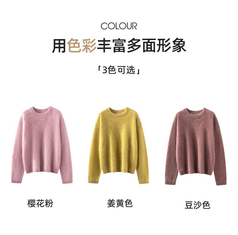 Suéter cepillado para mujer 100% cachemira pura moda simple color sólido cuello redondo holgado versátil punto base suéter de pelo largo
