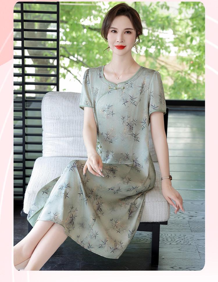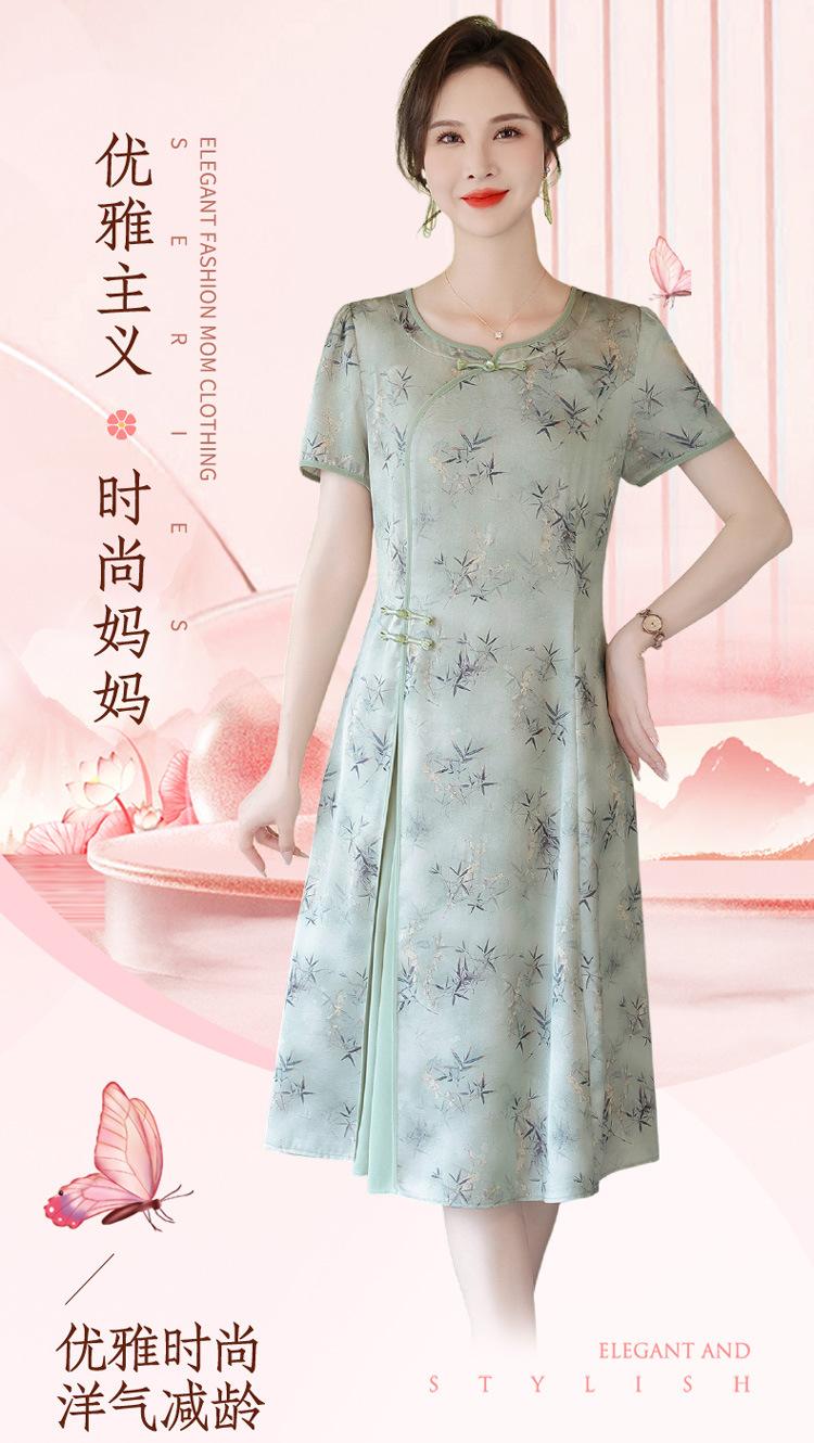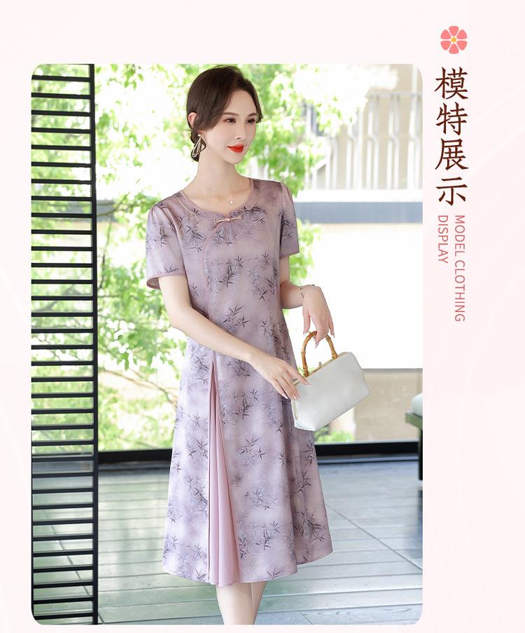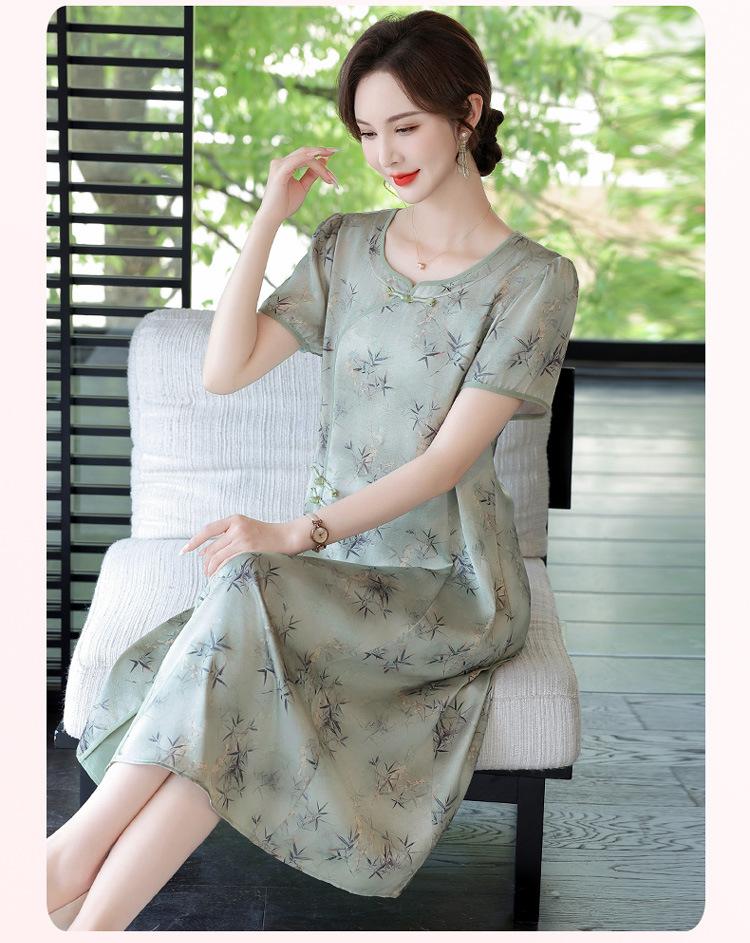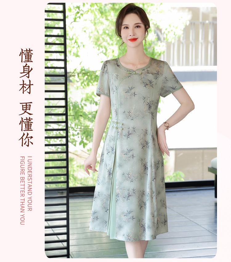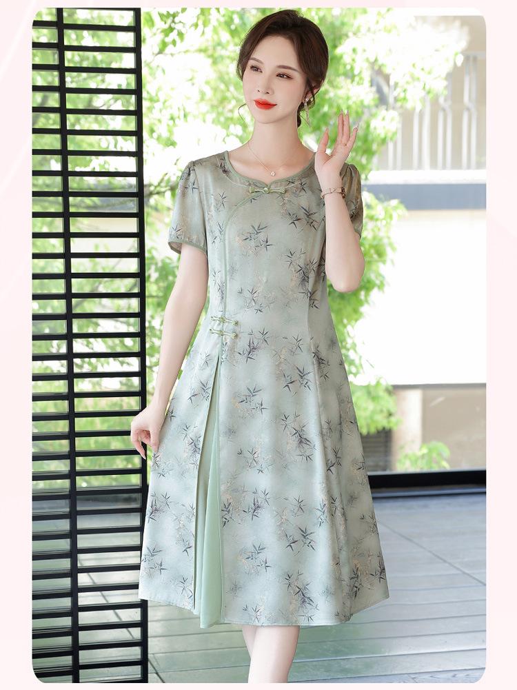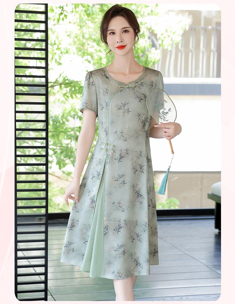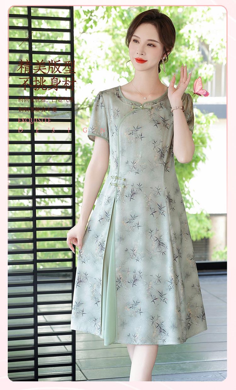 Vestido de Verano para Mamá de Estilo Chino Nuevo Estilo Verano Cheongsam Mejorado Mujeres de Mediana Edad y Mayores Falda de Estilo Chino