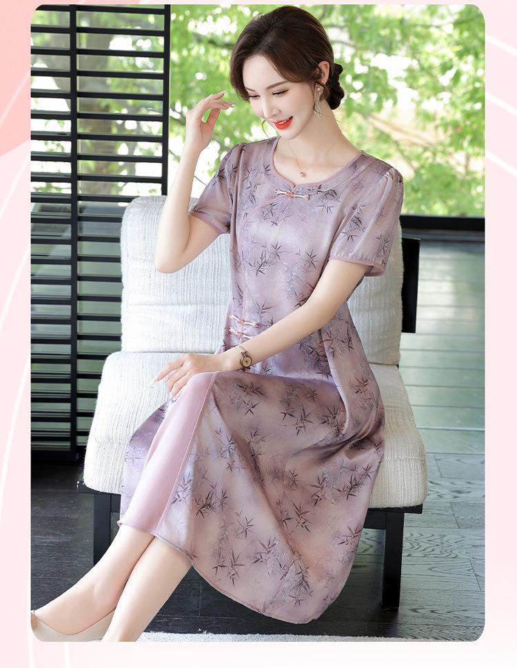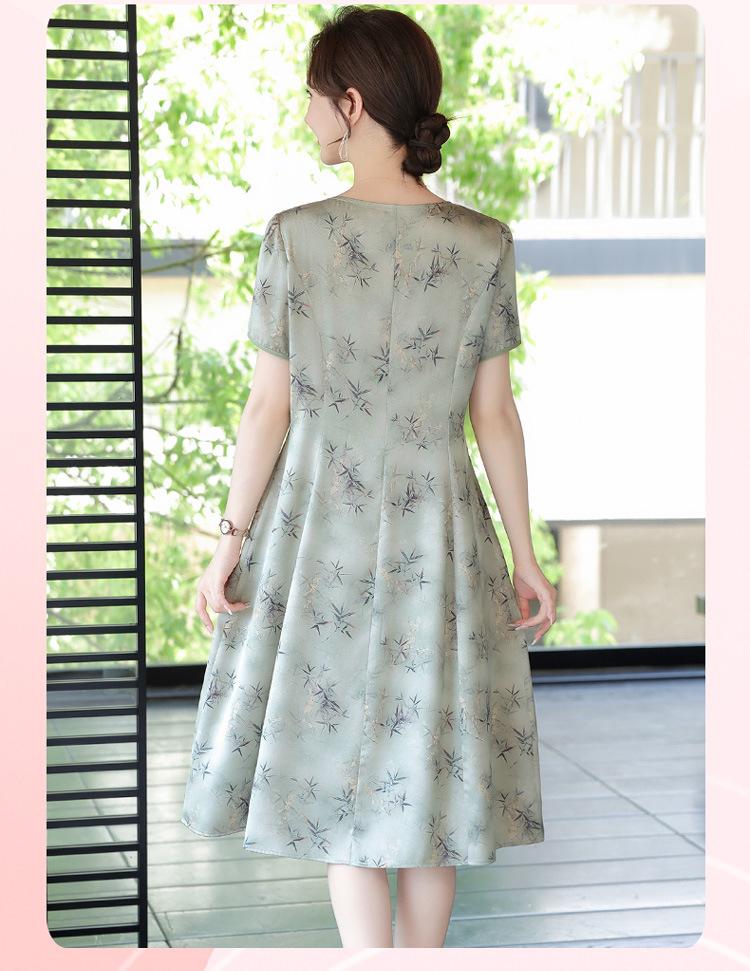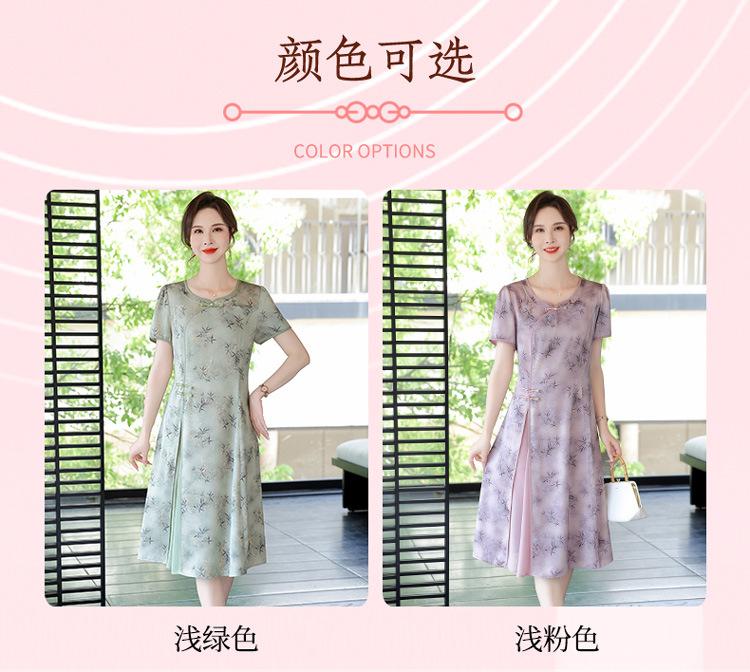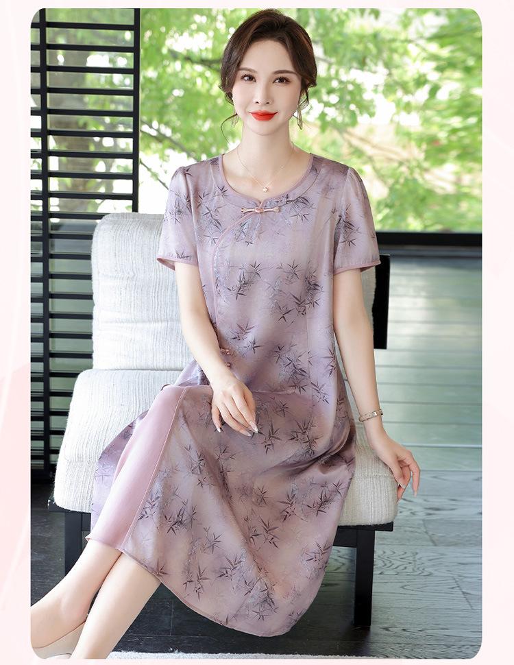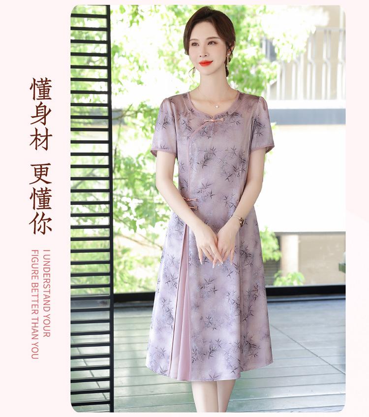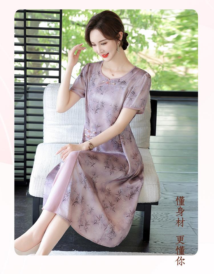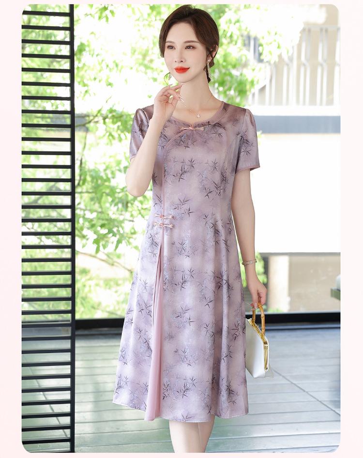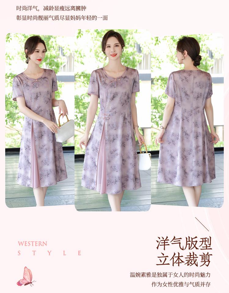 Vestido de Verano para Mamá de Estilo Chino Nuevo Estilo Verano Cheongsam Mejorado Mujeres de Mediana Edad y Mayores Falda de Estilo Chino