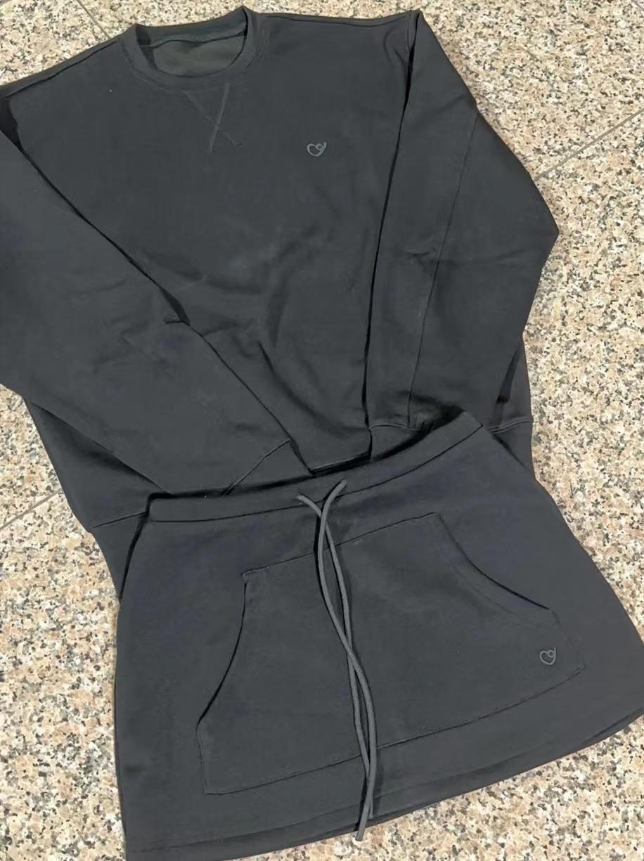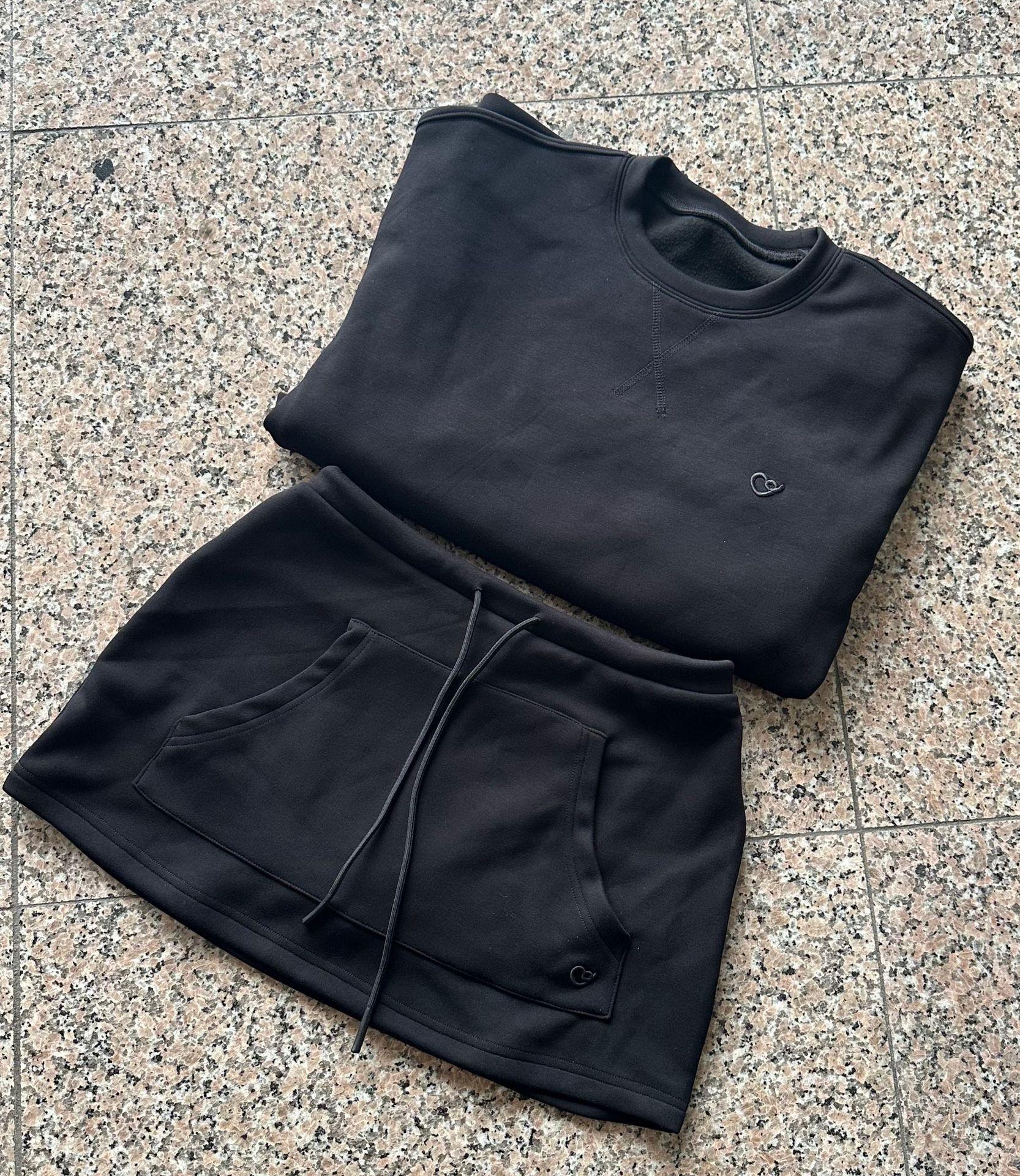 Gray sweater (in stock), Black sweater (in stock), Black skirt (in stock)