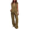 Fábrica de Origen Amazon Transfronterizo Primavera y Otoño Nuevo Temperamento Sin Mangas Traje de Botones Conjunto de Pantalones Largos Holgados para Mujer
