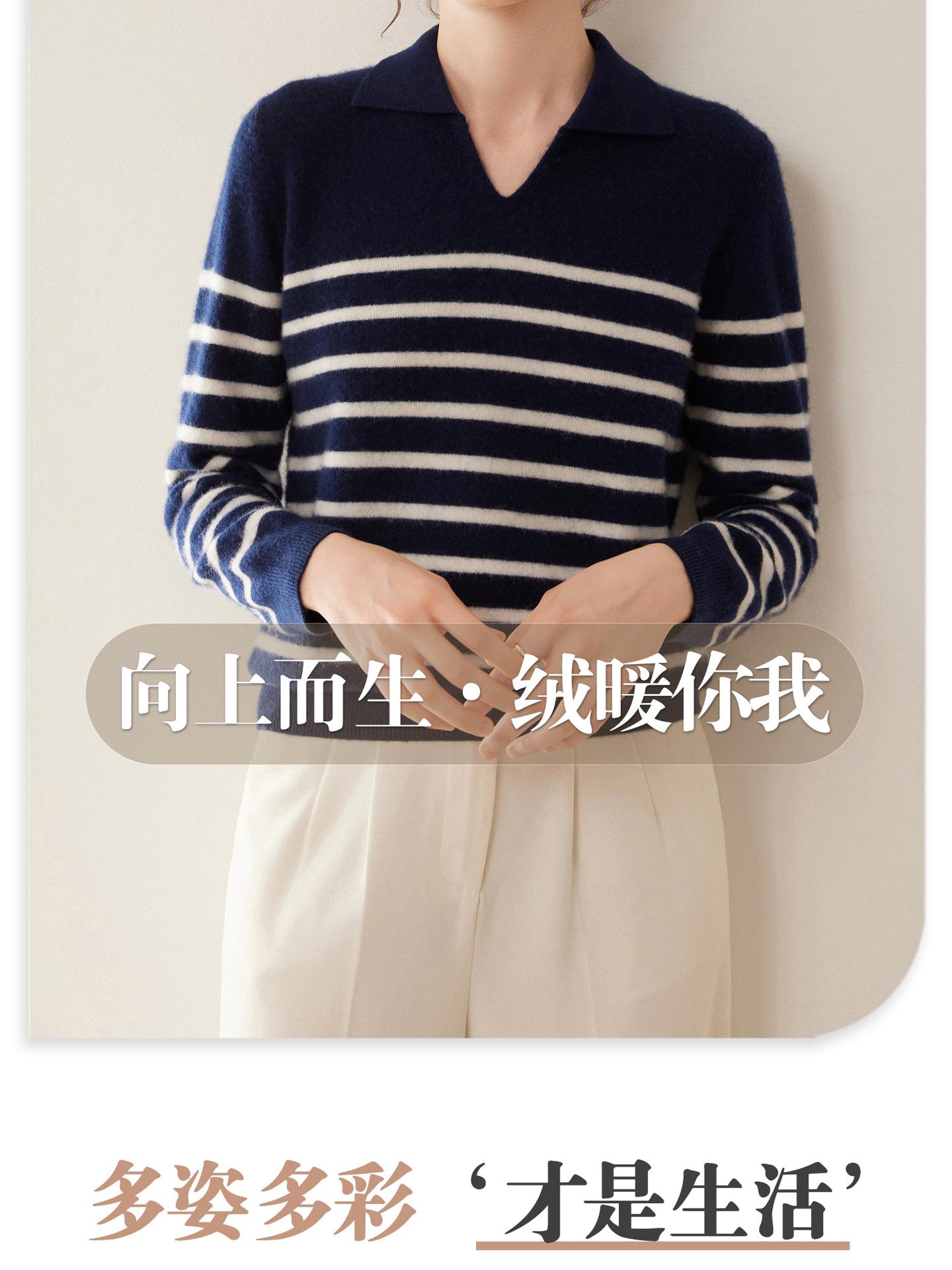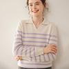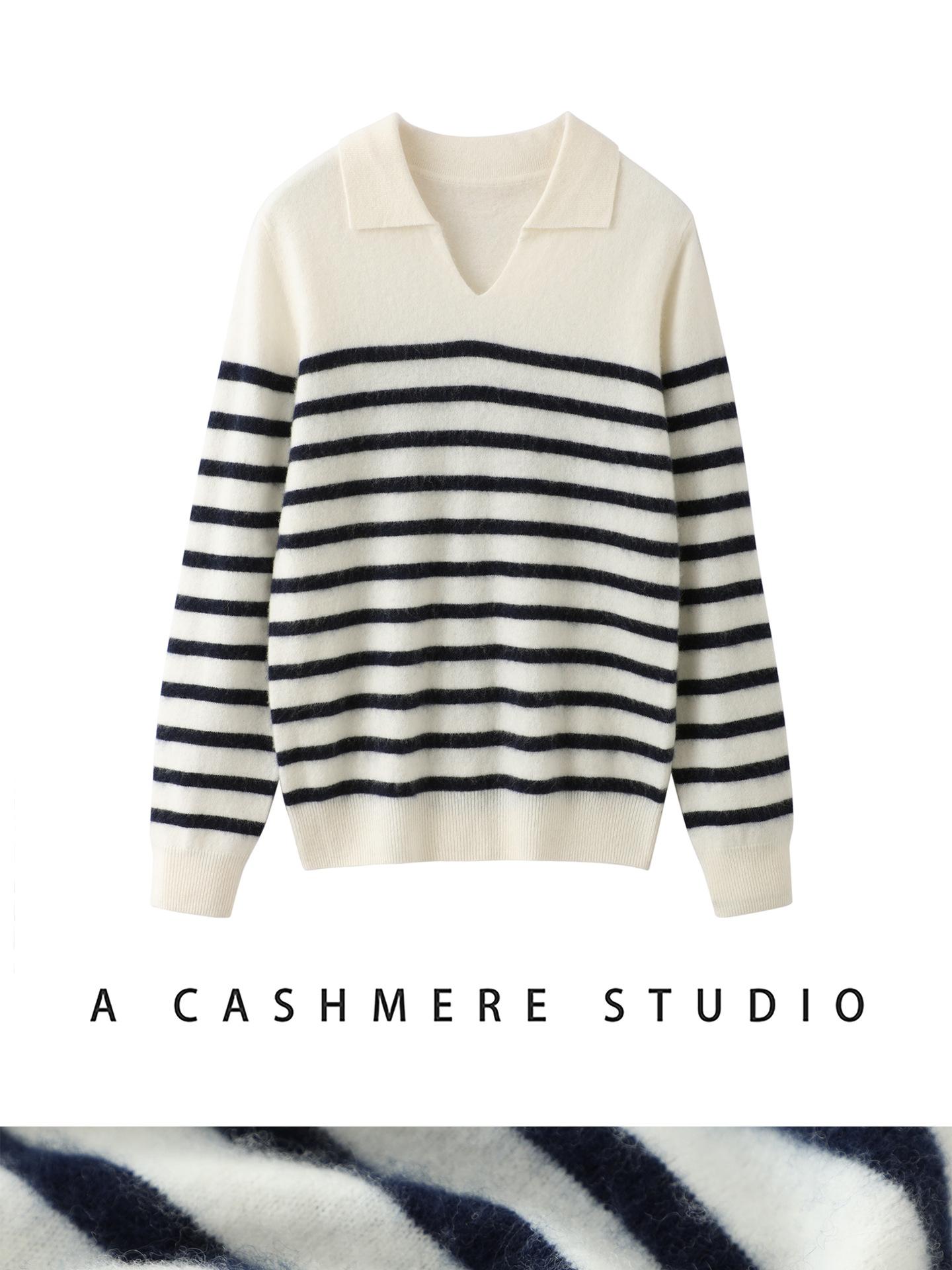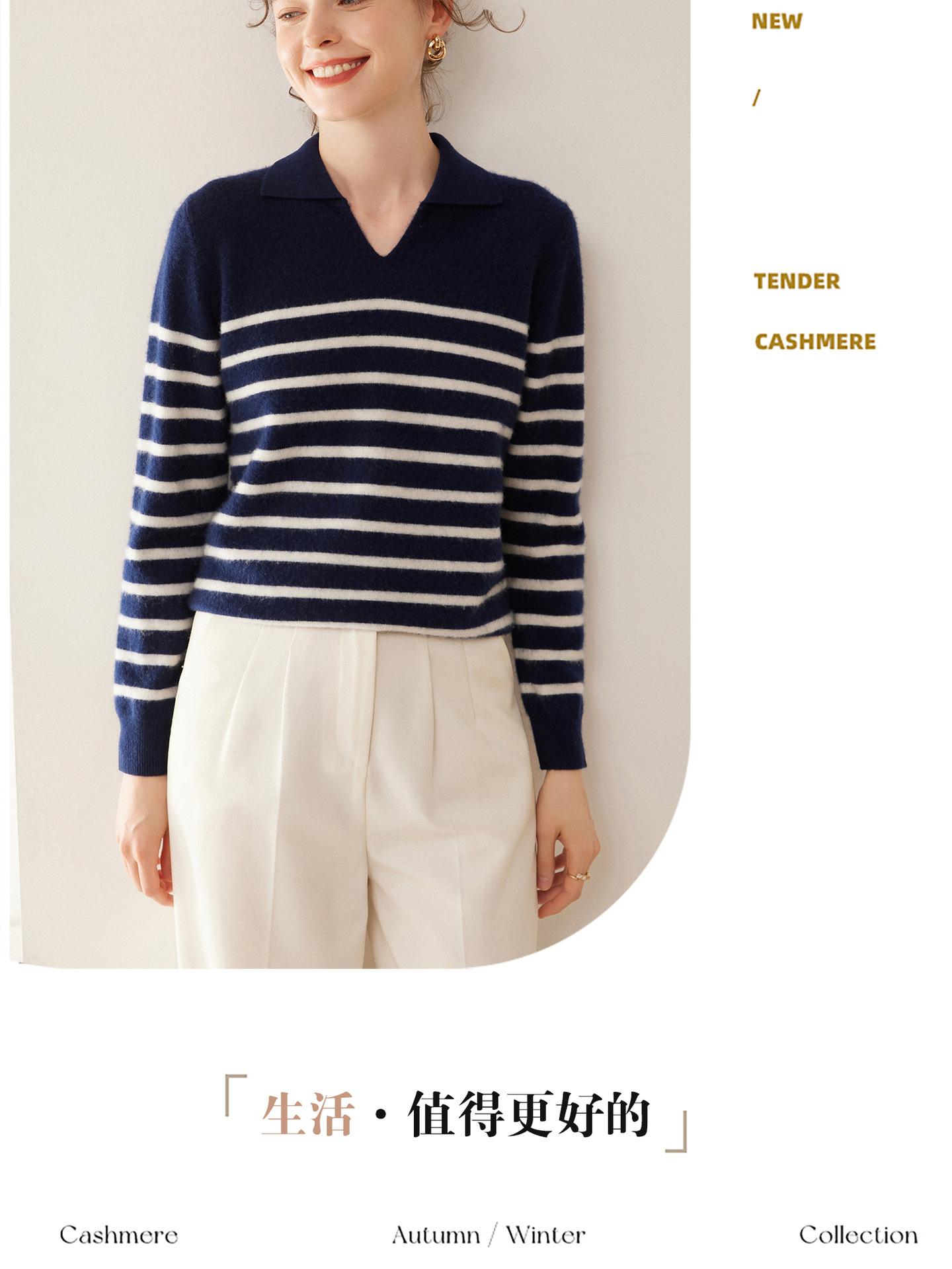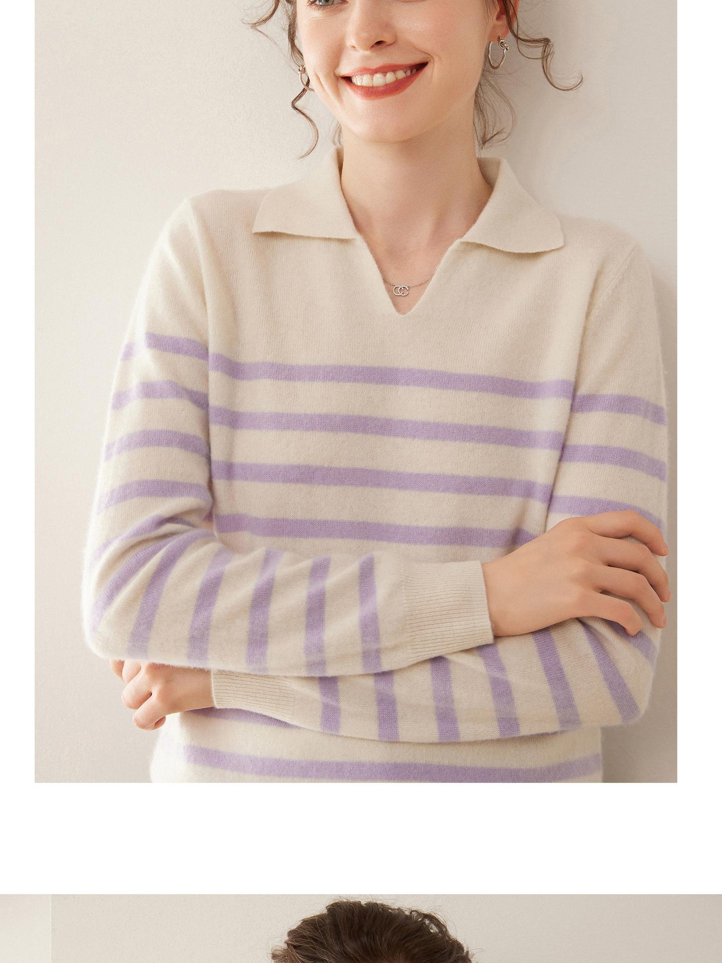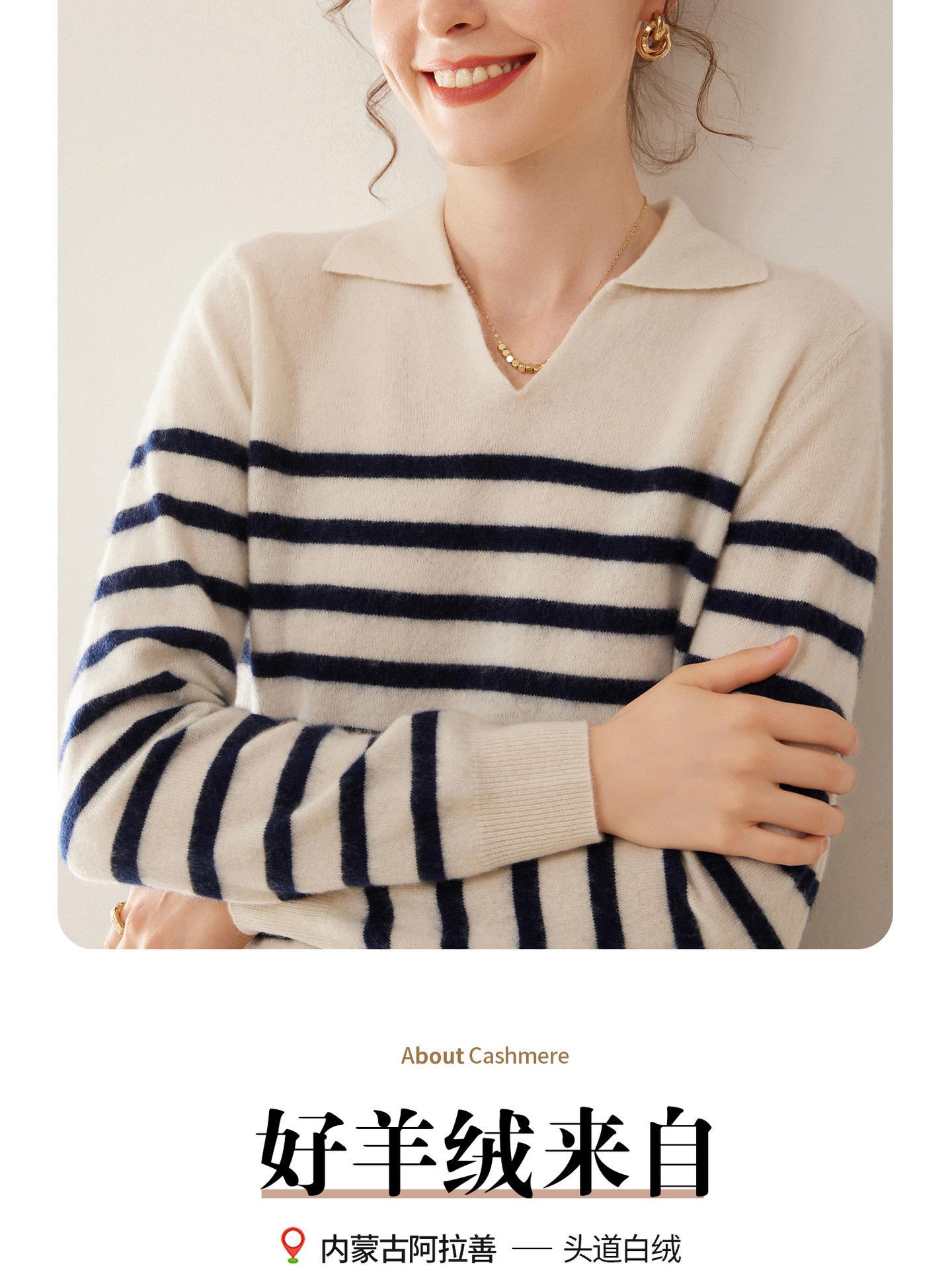 Suéter de Cachemira Nuevo Otoño/Invierno para Mujer Cuello en V Moda Tejido Camisa Base Manga Larga Diseño Rayado Moderno Versátil Suave