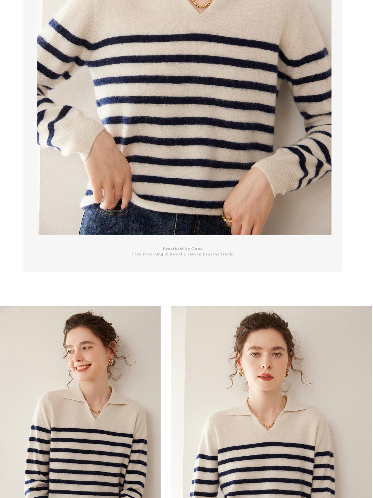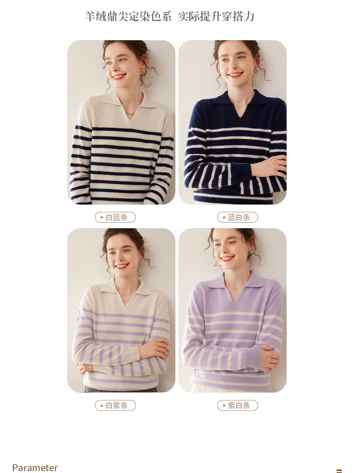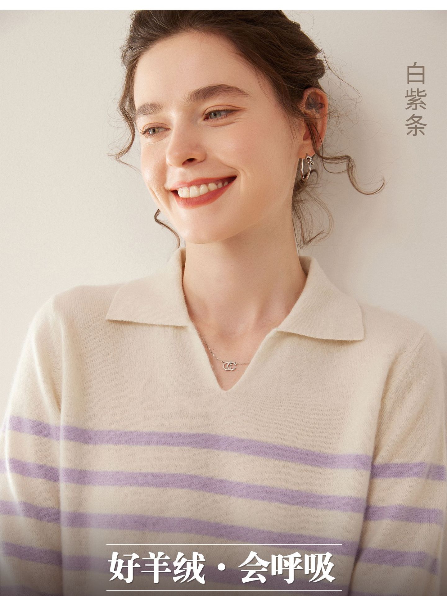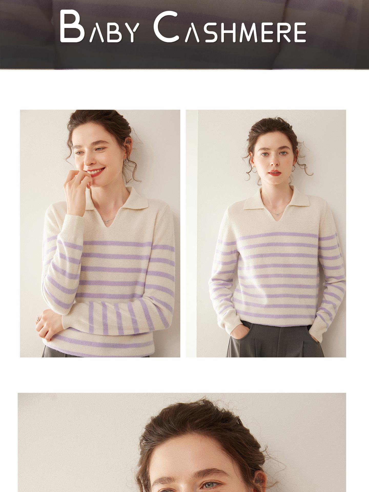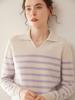 Suéter de Cachemira Nuevo Otoño/Invierno para Mujer Cuello en V Moda Tejido Camisa Base Manga Larga Diseño Rayado Moderno Versátil Suave