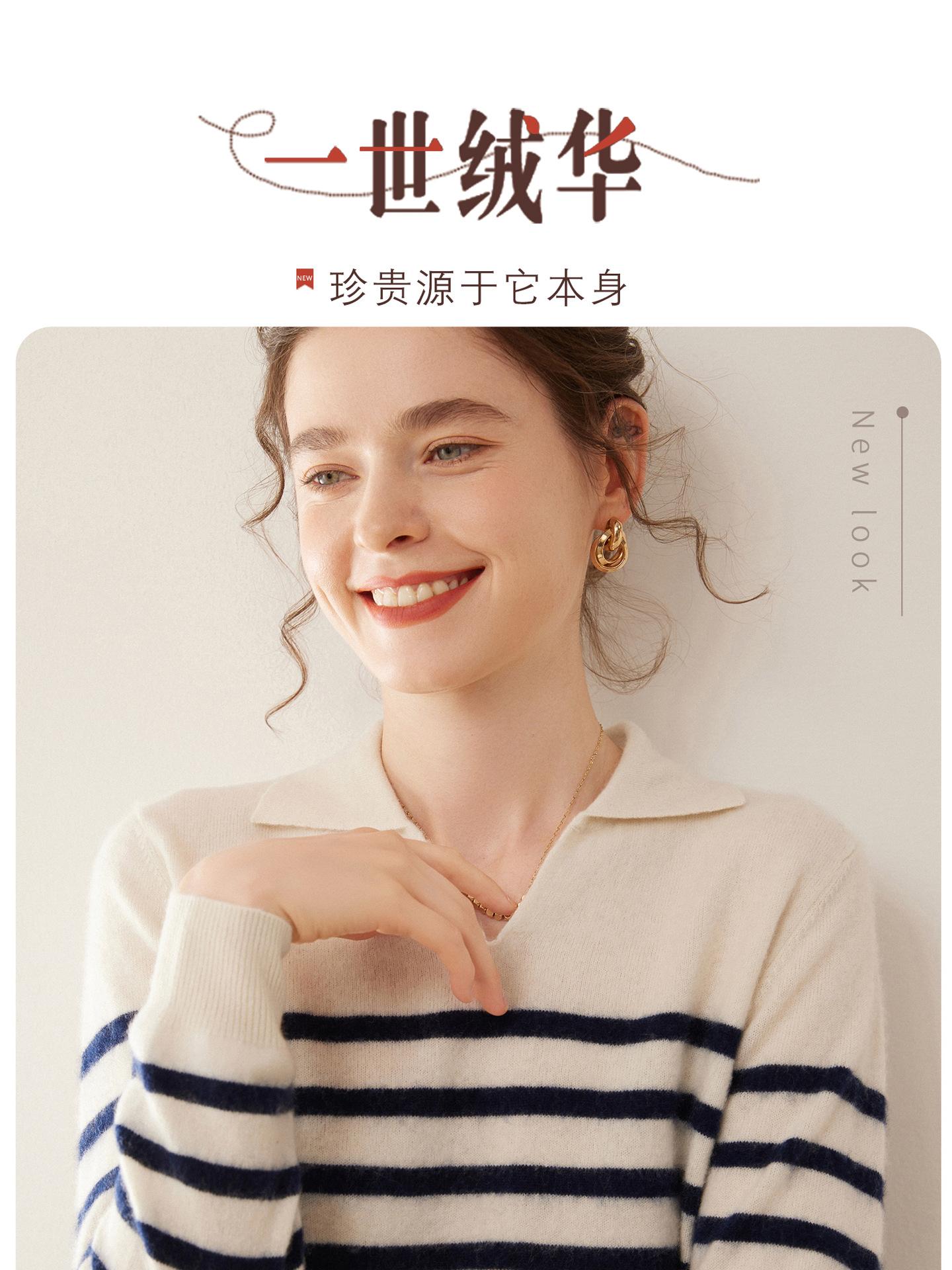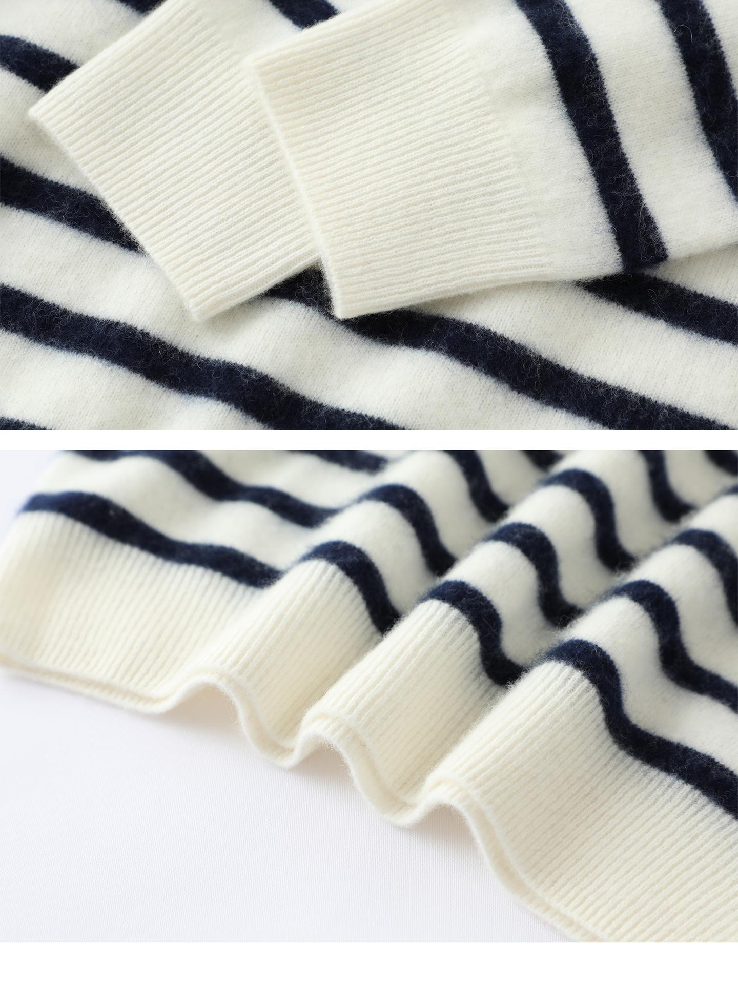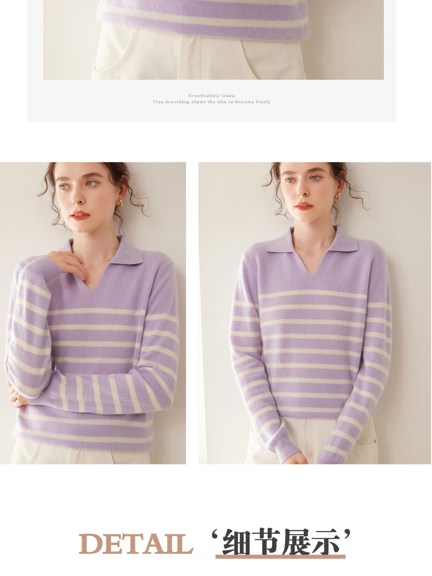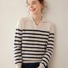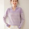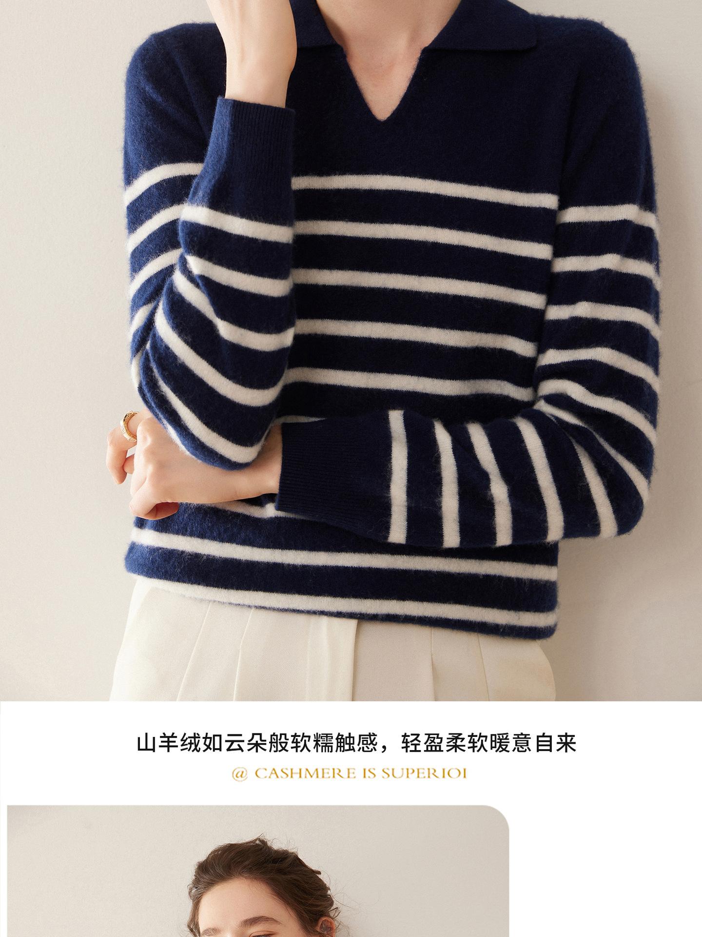 Suéter de Cachemira Nuevo Otoño/Invierno para Mujer Cuello en V Moda Tejido Camisa Base Manga Larga Diseño Rayado Moderno Versátil Suave