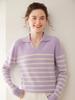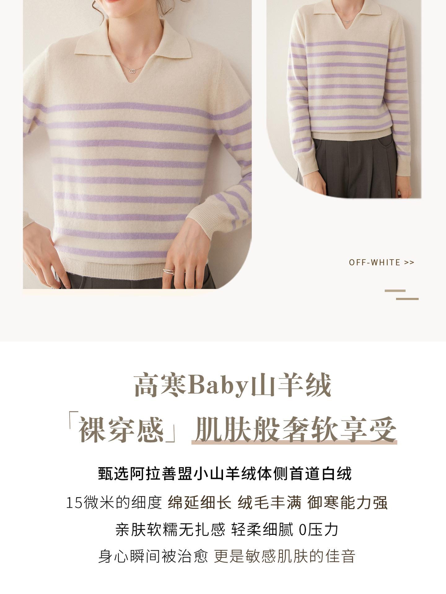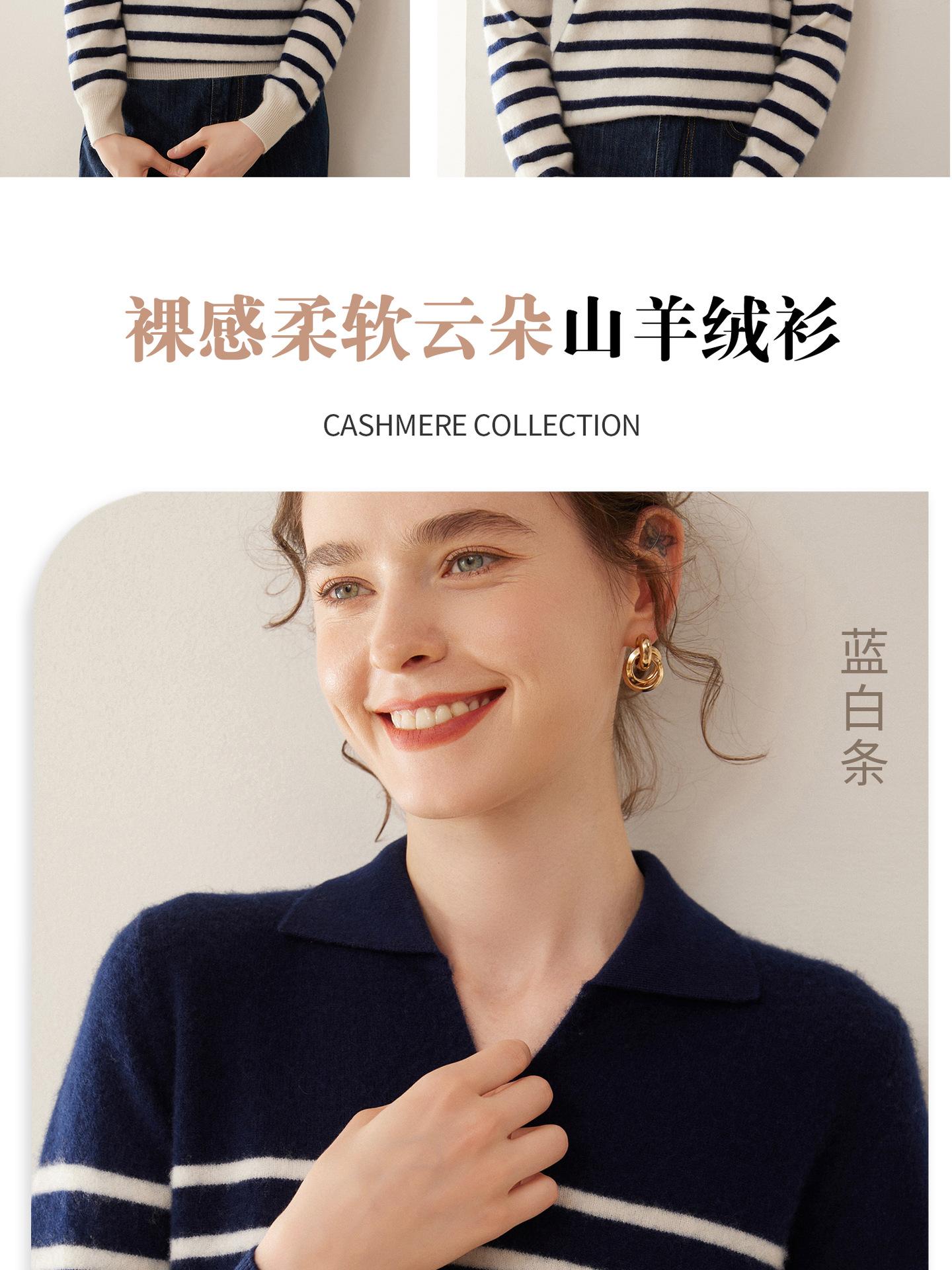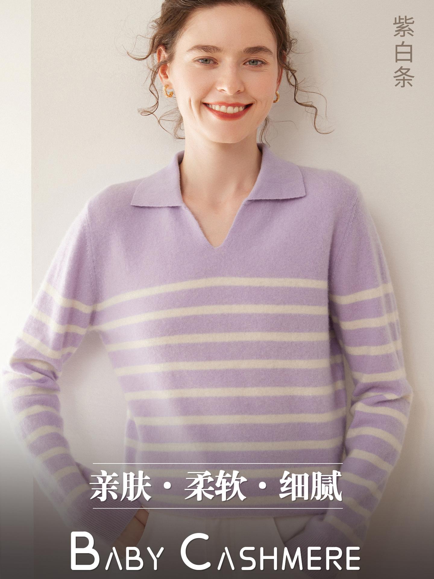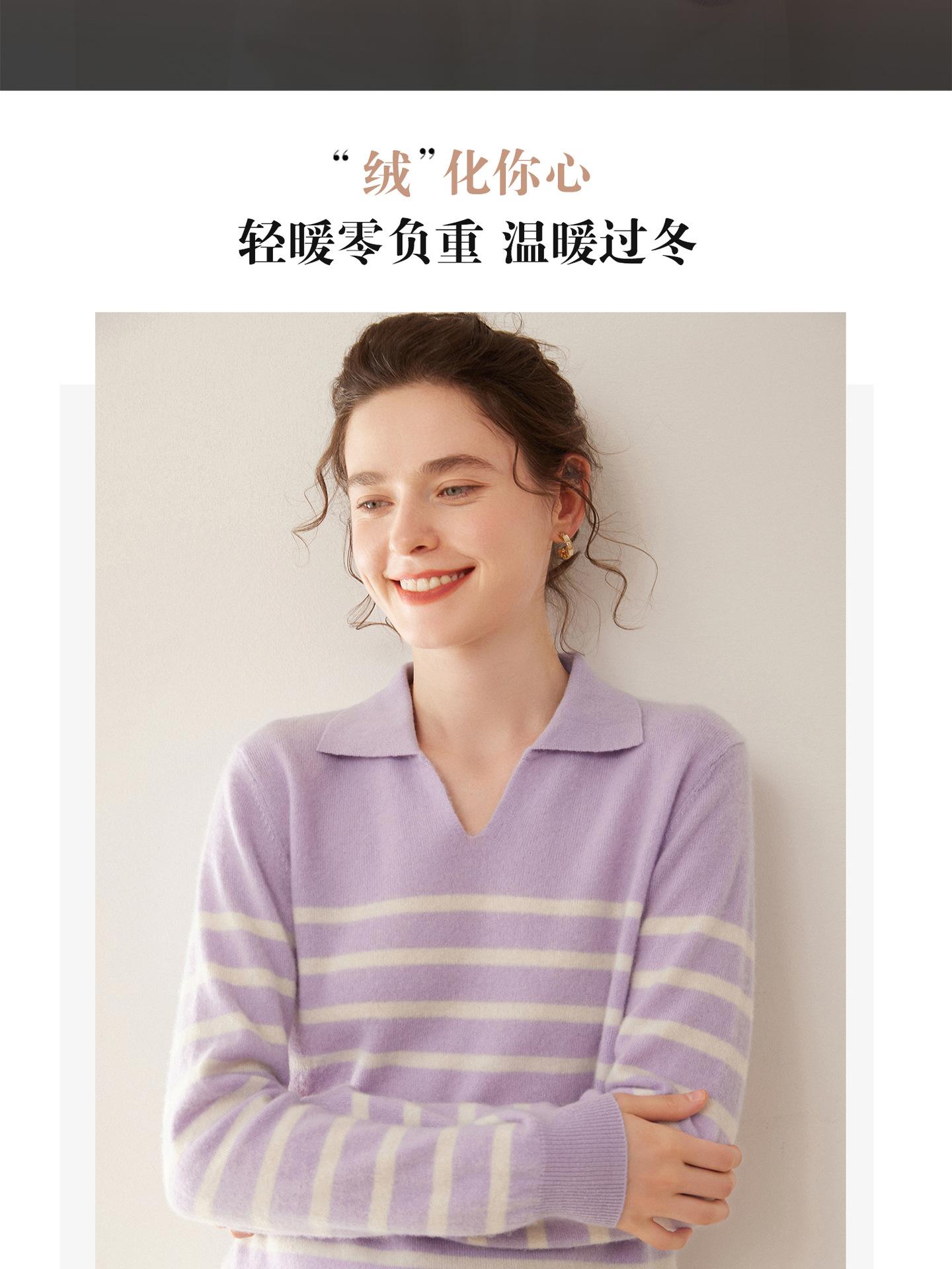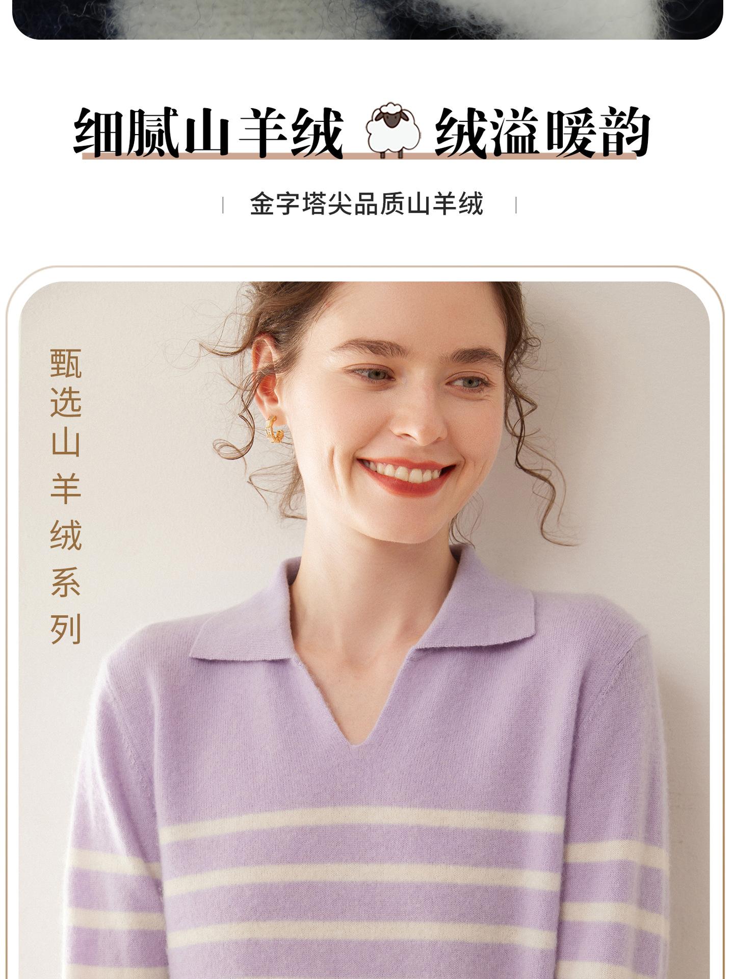 Suéter de Cachemira Nuevo Otoño/Invierno para Mujer Cuello en V Moda Tejido Camisa Base Manga Larga Diseño Rayado Moderno Versátil Suave