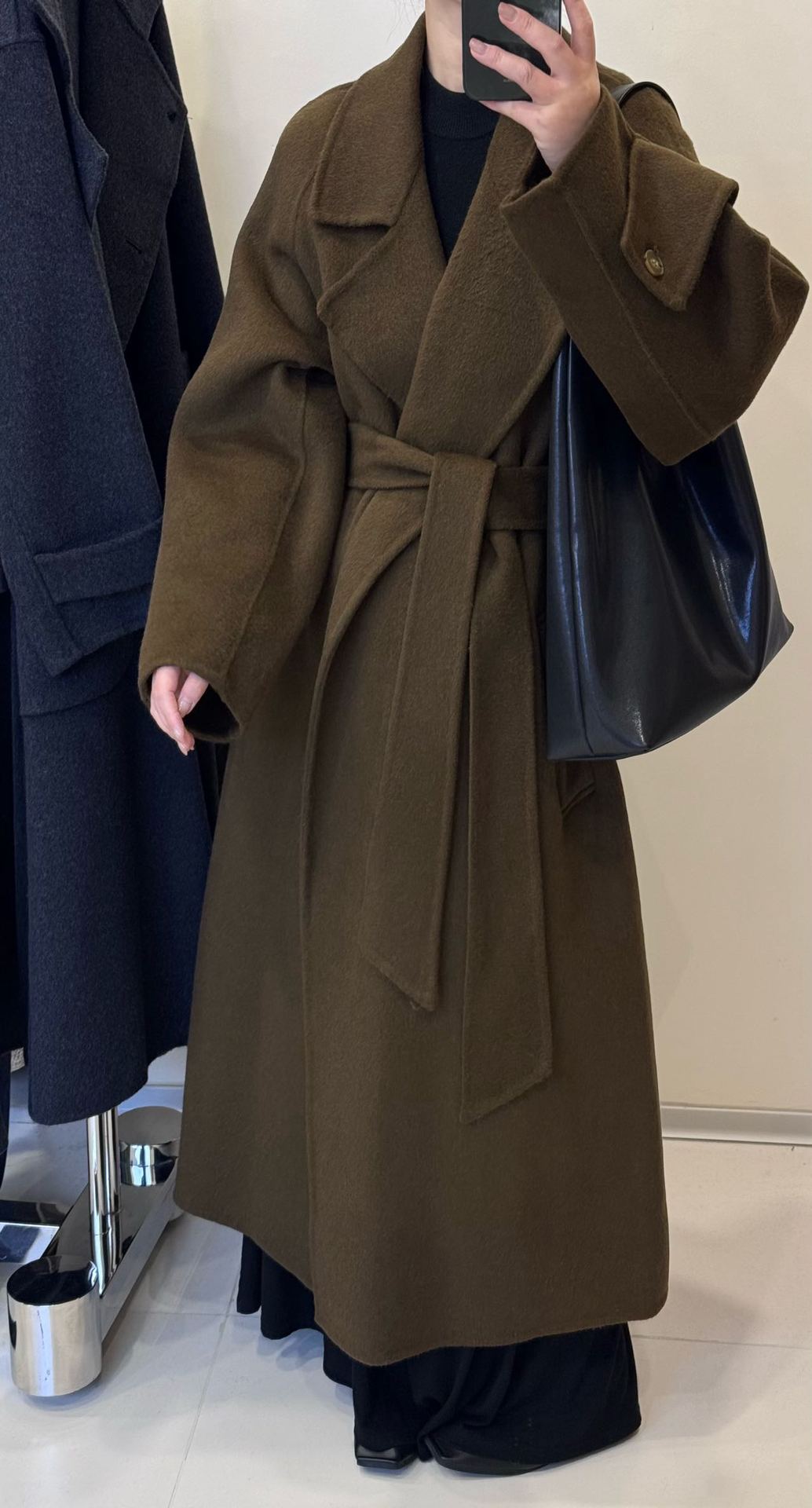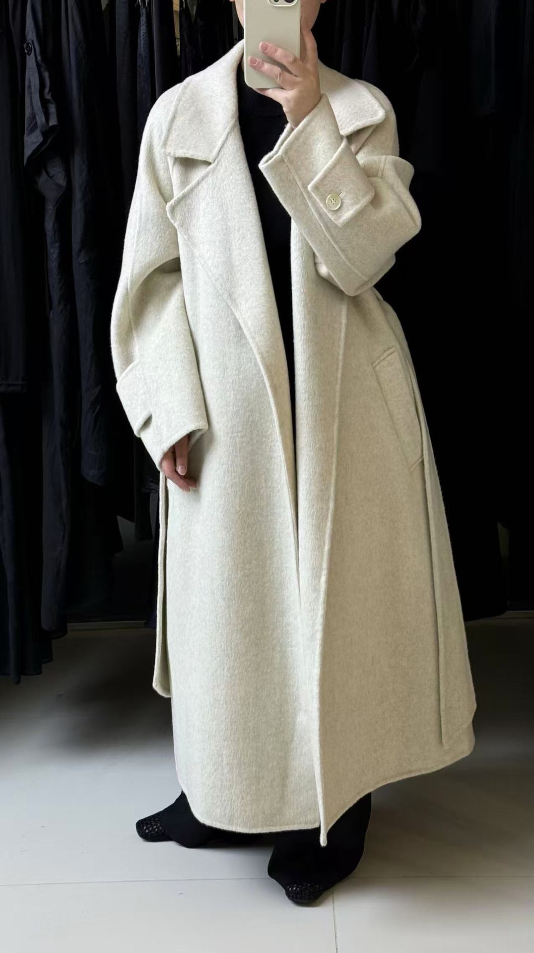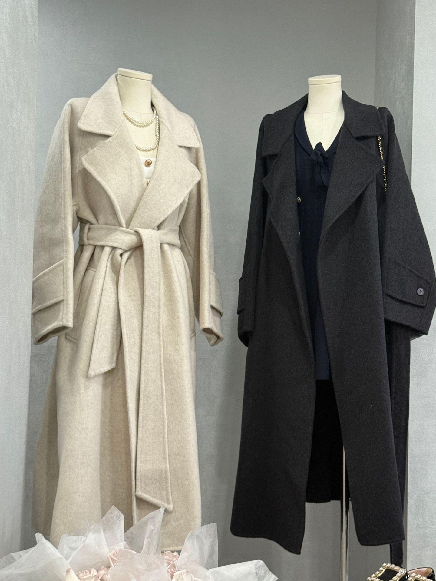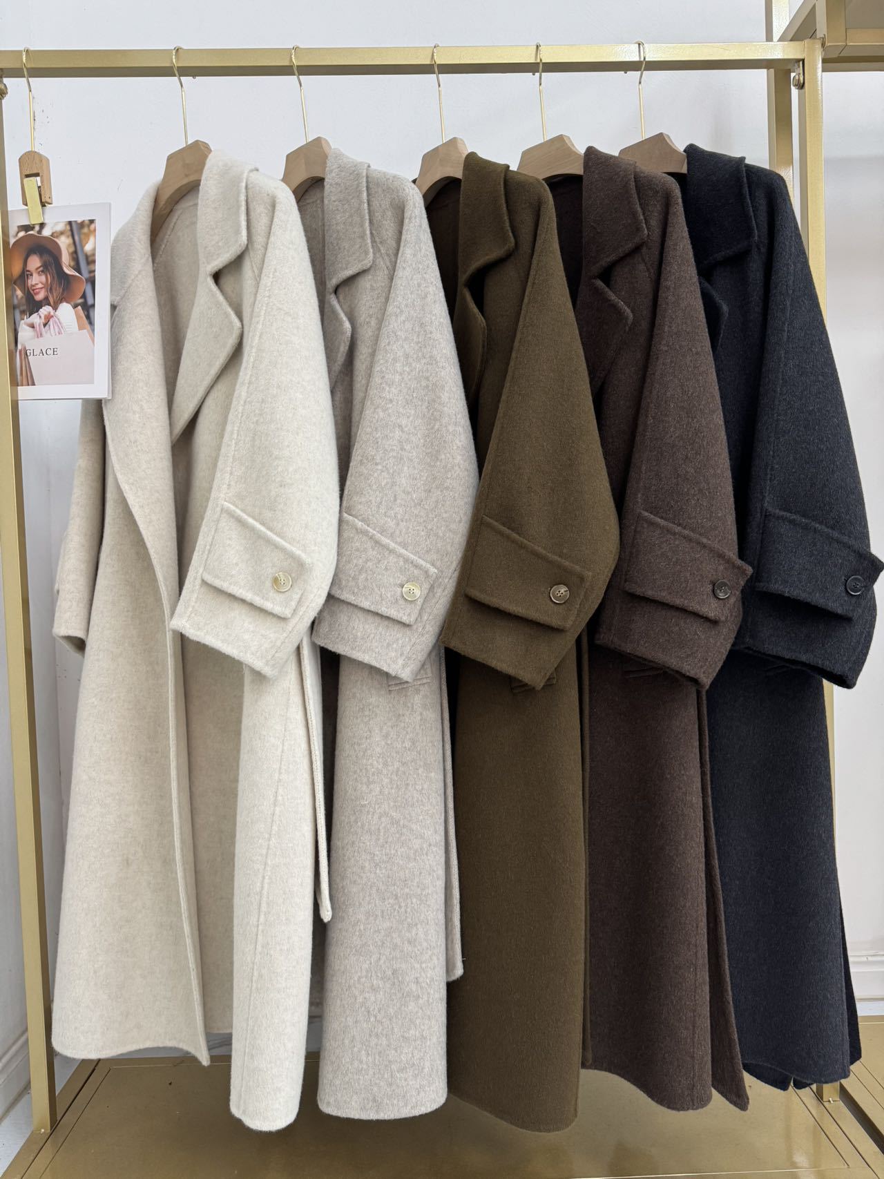 Nuevo Abrigo de Lana de Doble Cara para Mujer Otoño/Invierno Largo Estilo Coreano de Alta Gama con Cinturón Holgado Coreano Lazy Coat