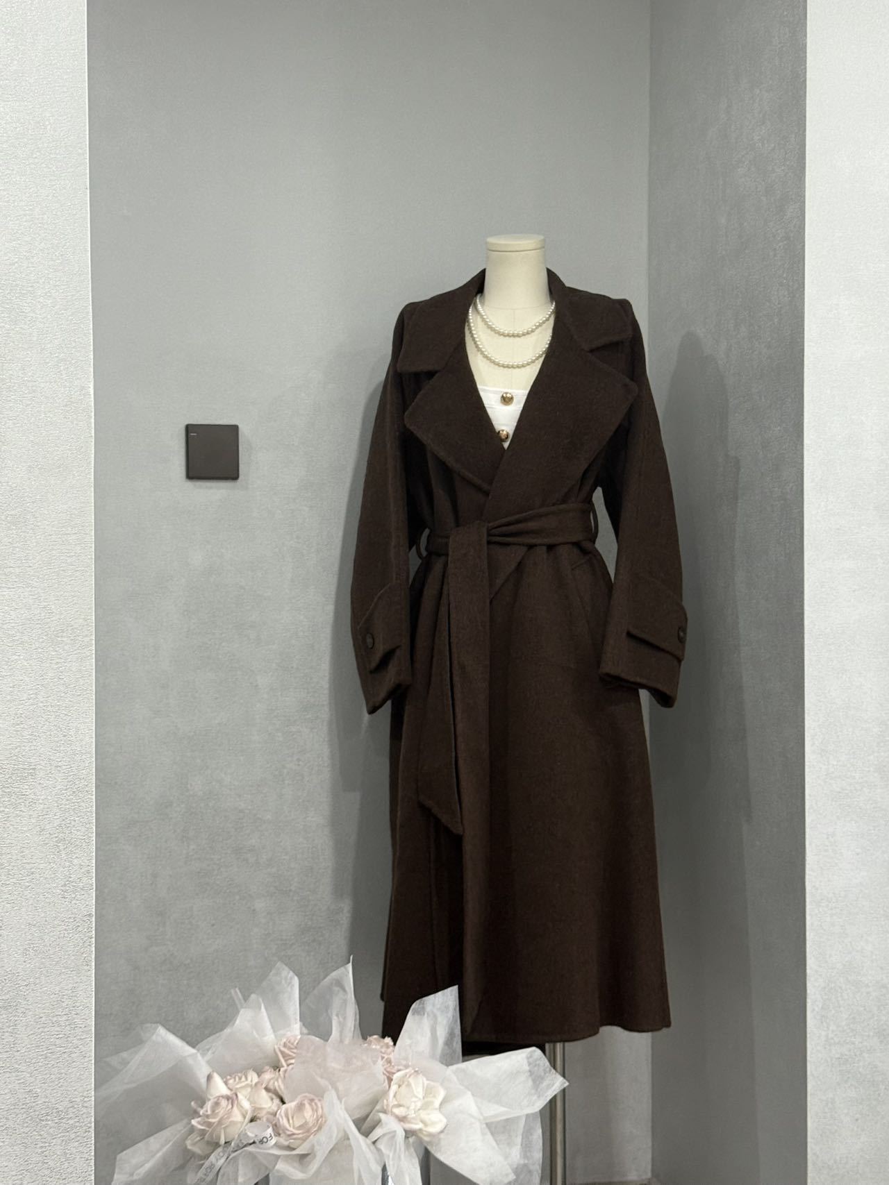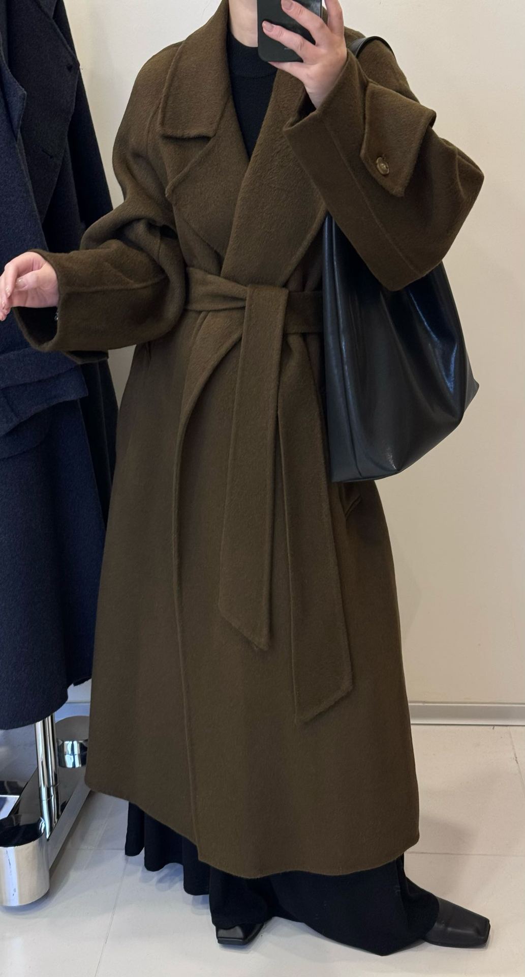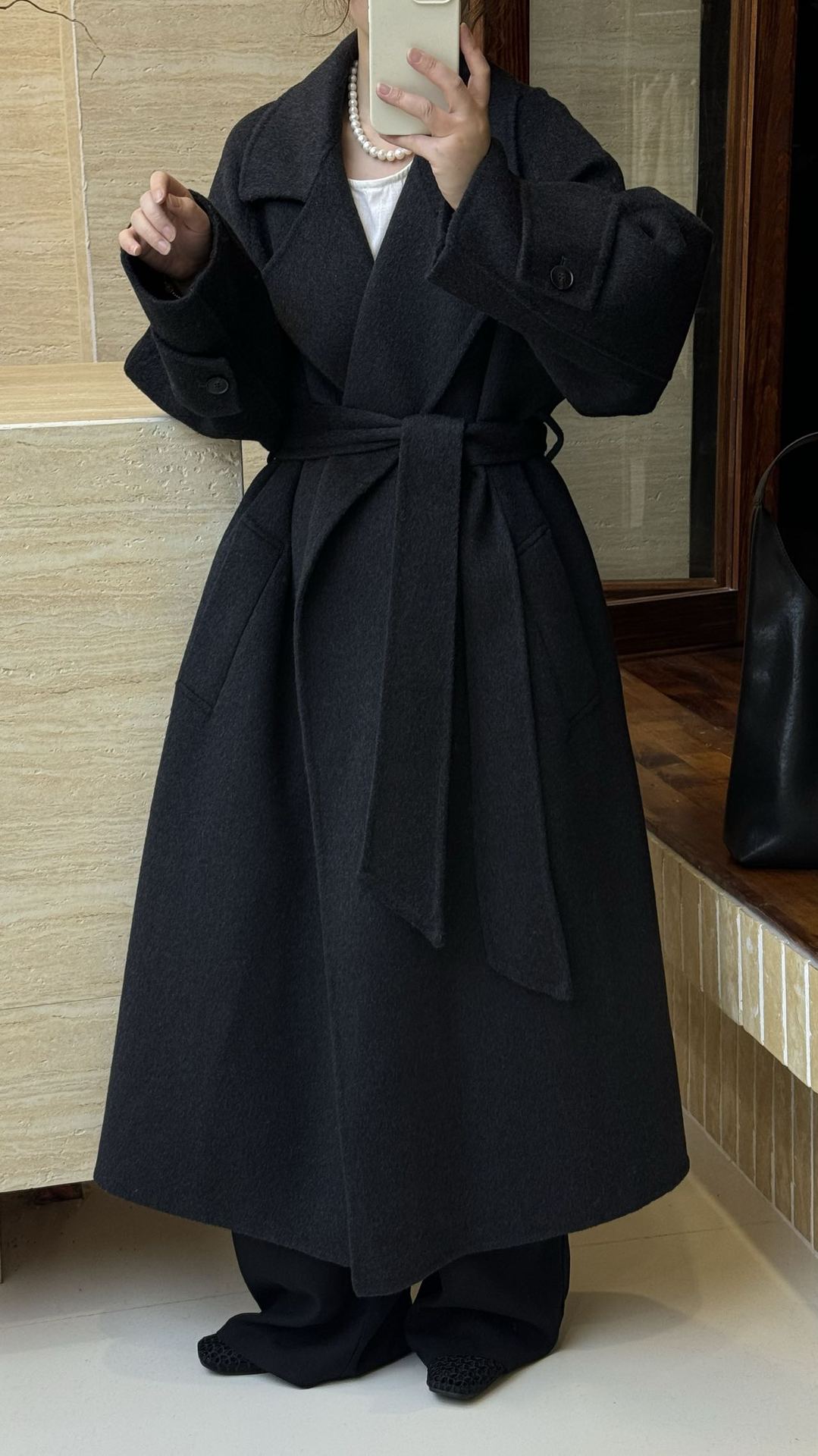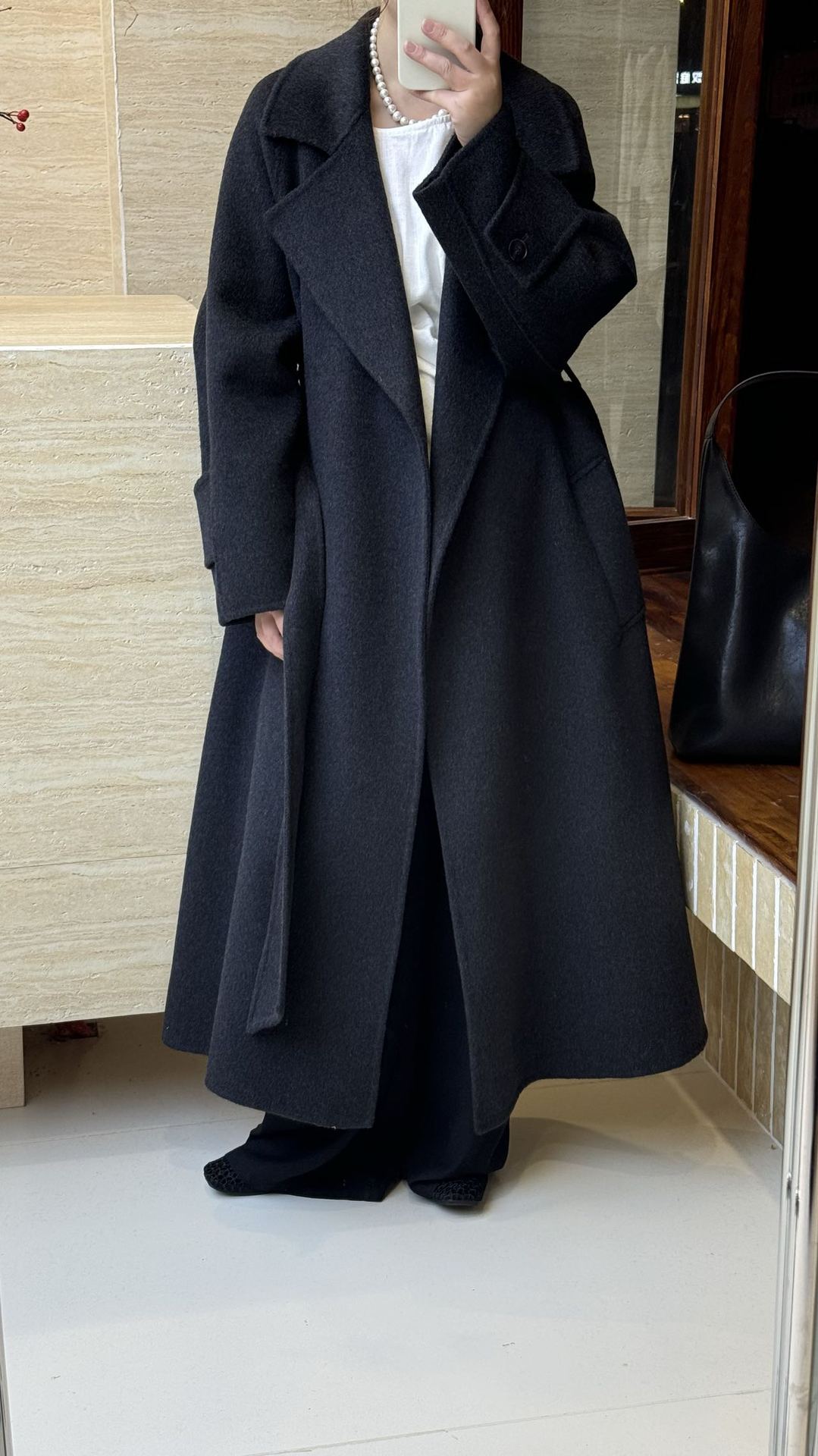 Nuevo Abrigo de Lana de Doble Cara para Mujer Otoño/Invierno Largo Estilo Coreano de Alta Gama con Cinturón Holgado Coreano Lazy Coat