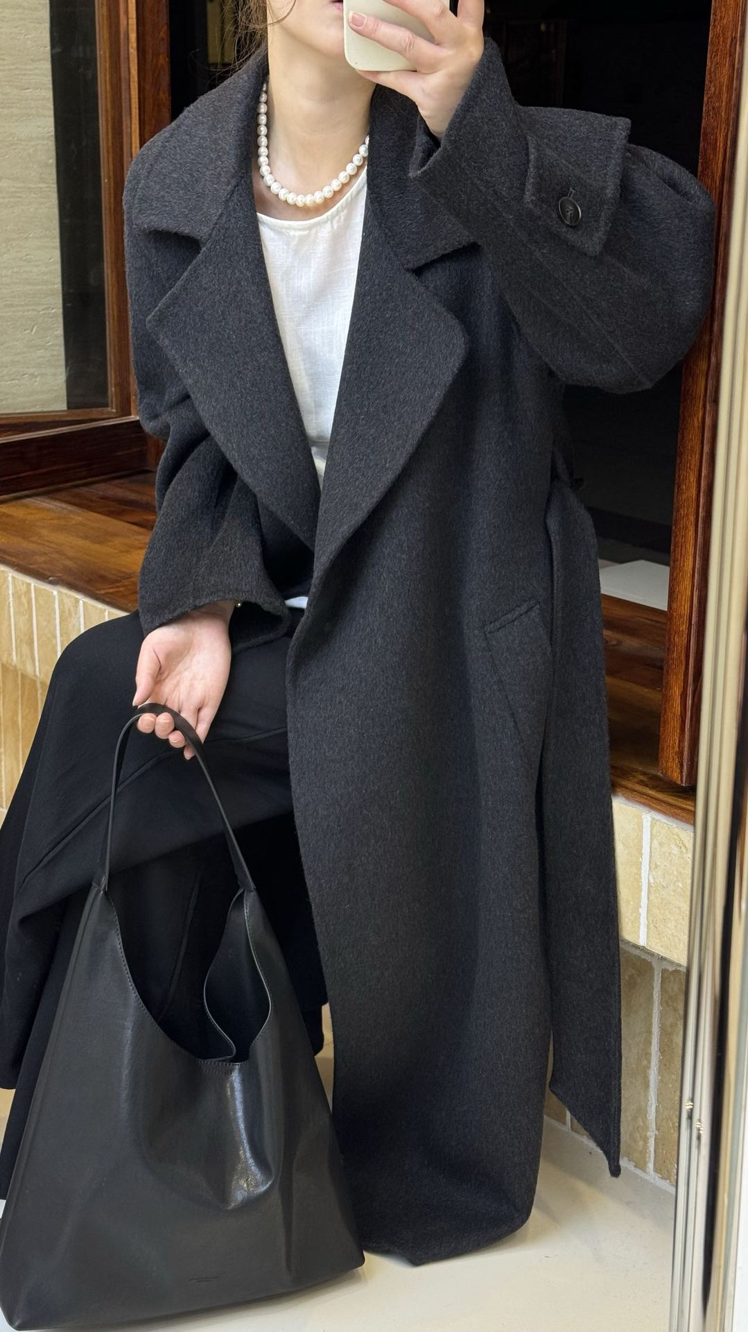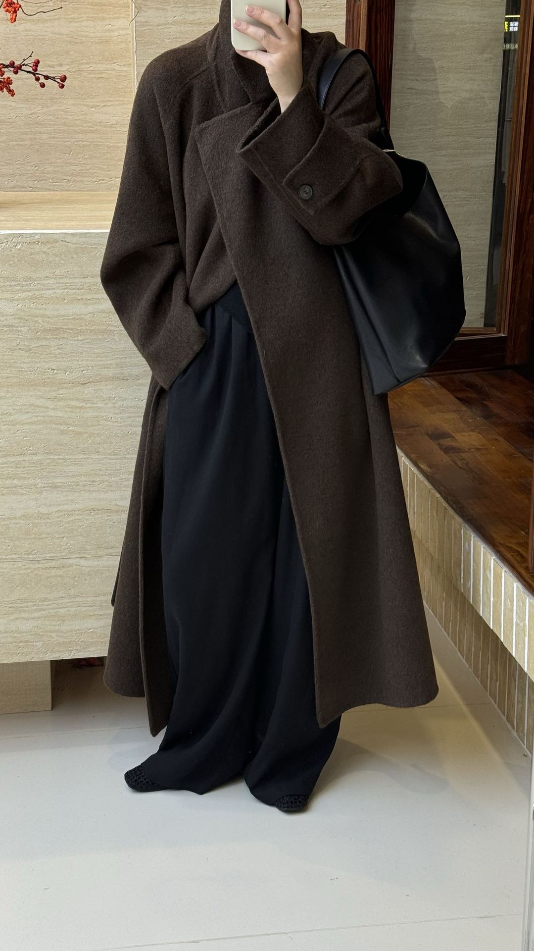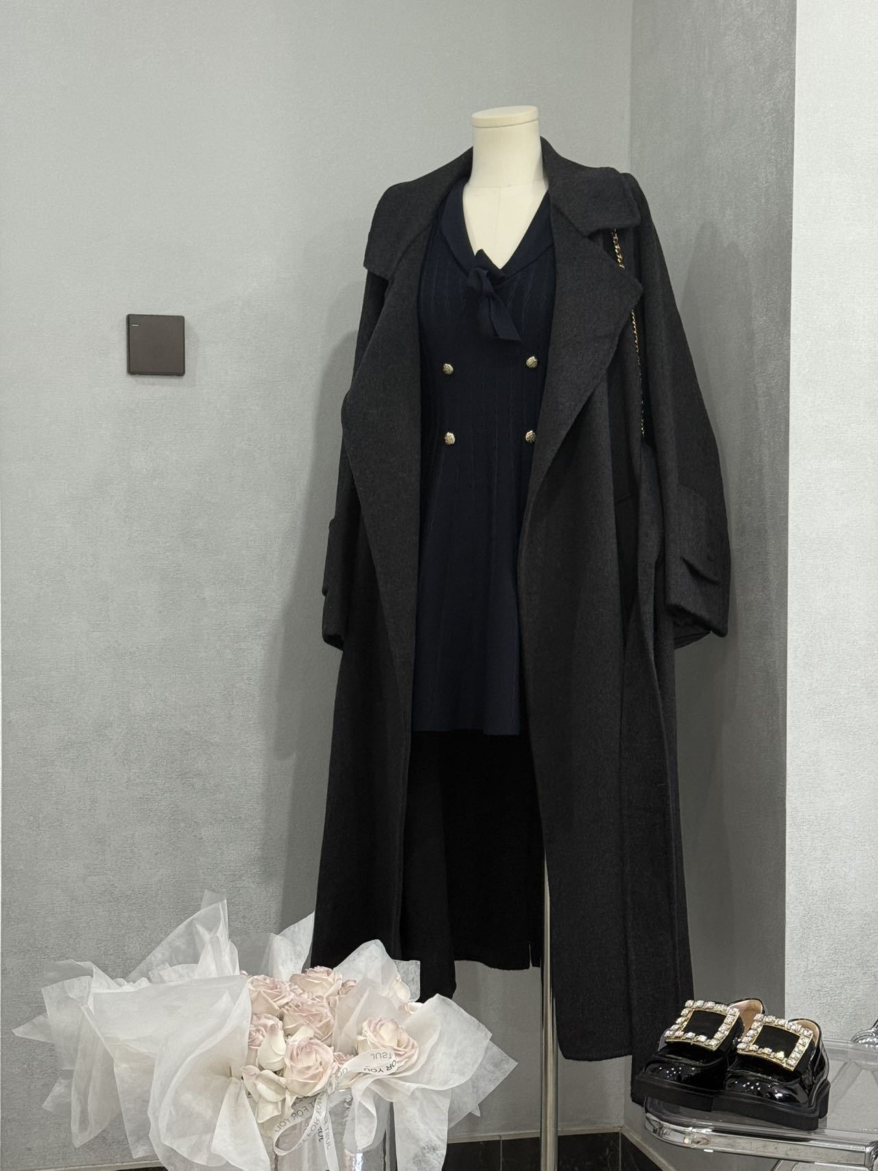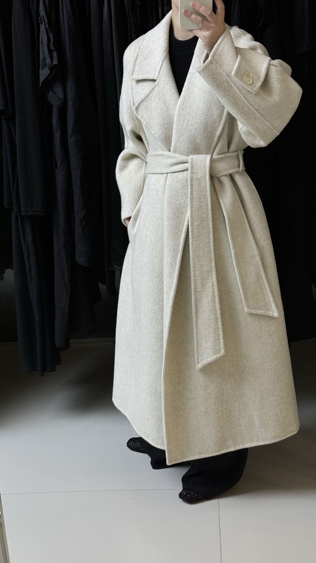 Nuevo Abrigo de Lana de Doble Cara para Mujer Otoño/Invierno Largo Estilo Coreano de Alta Gama con Cinturón Holgado Coreano Lazy Coat