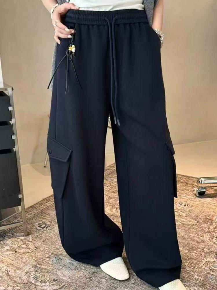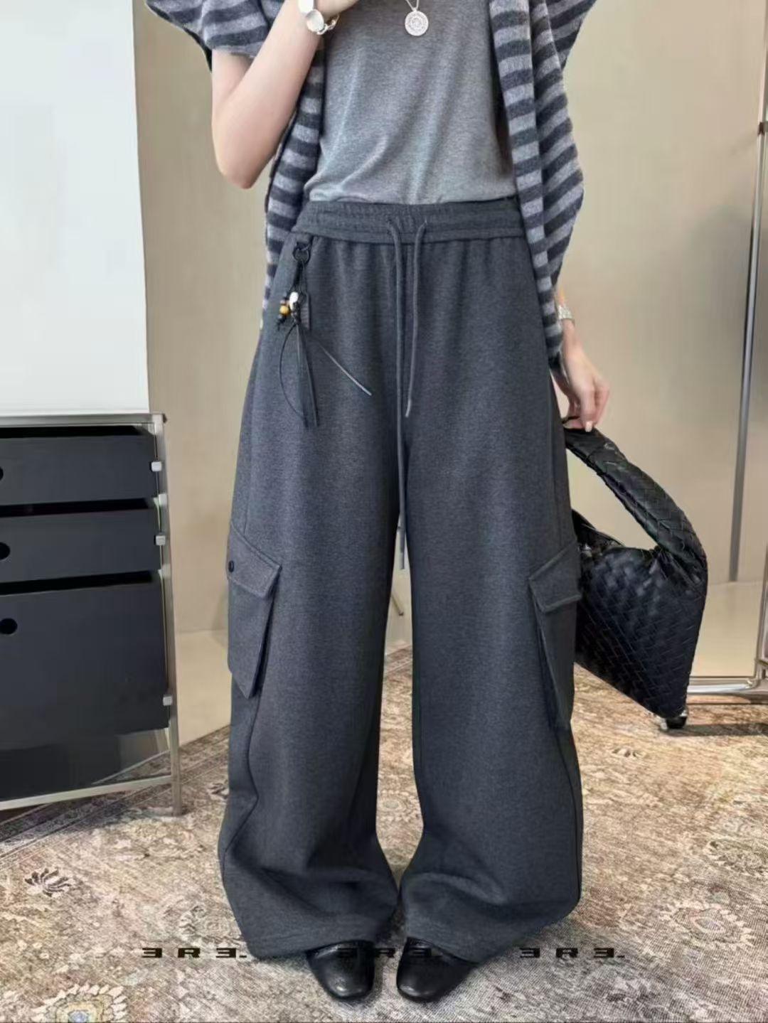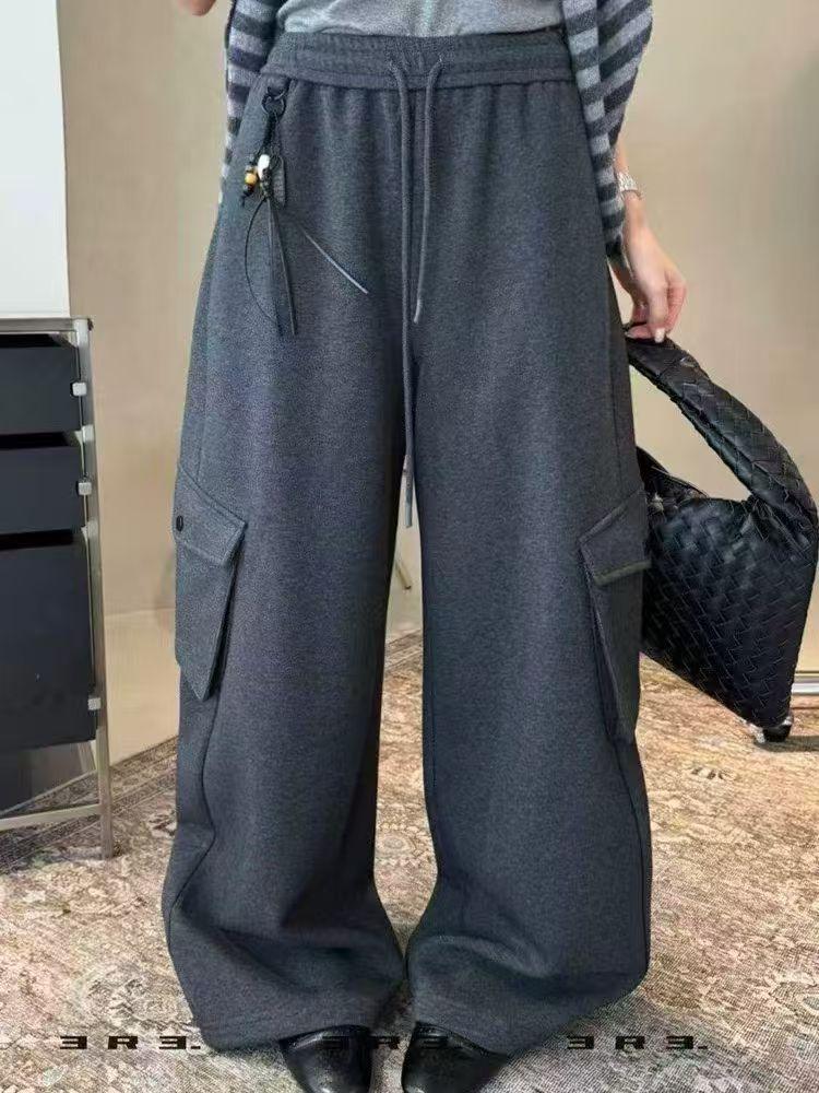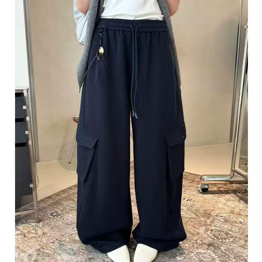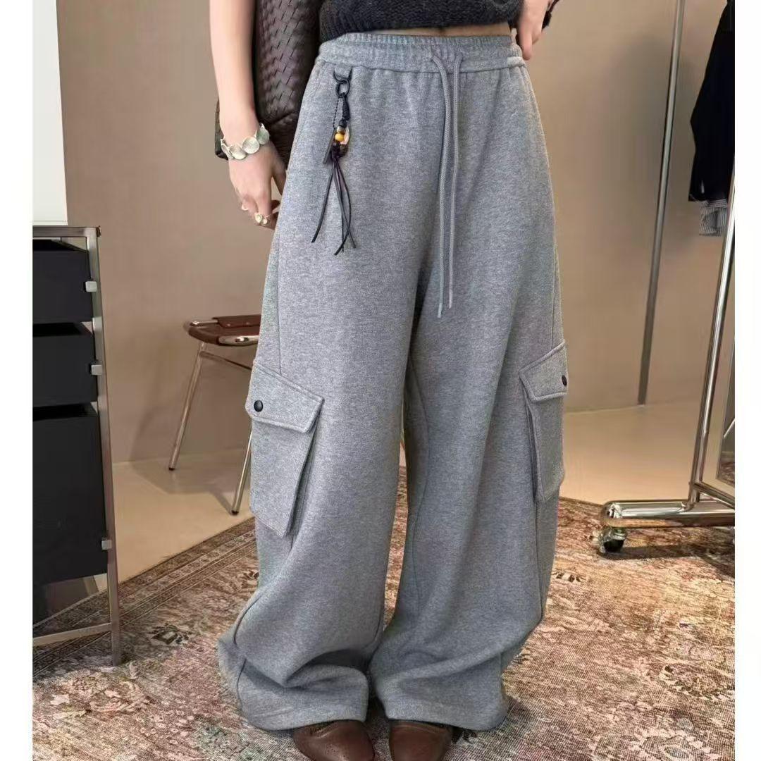 Pantalones de chándal de trabajo de estilo europeo de pierna ancha para mujer 2025 Otoño Nueva moda Cintura alta Pierna recta Versátil Suelto Deportivo Casual