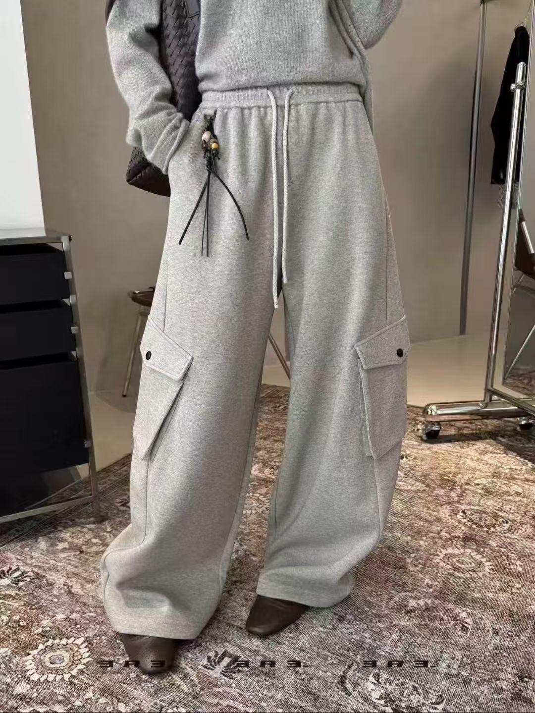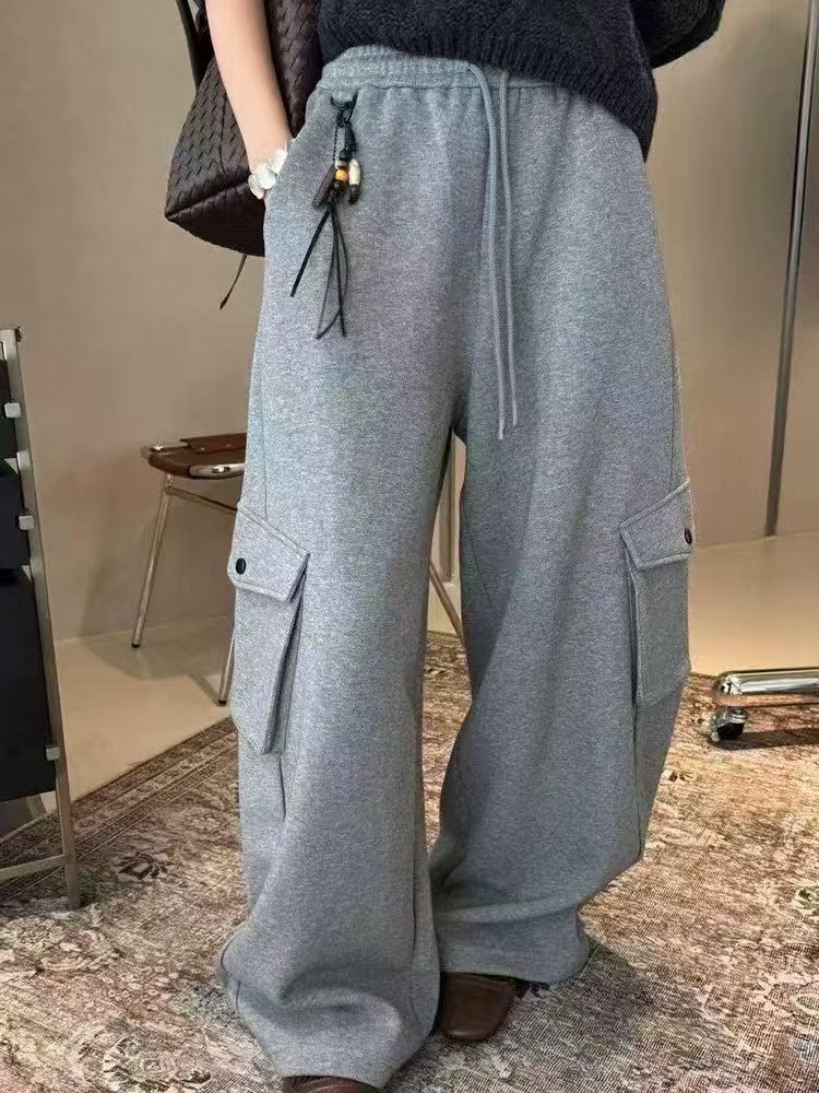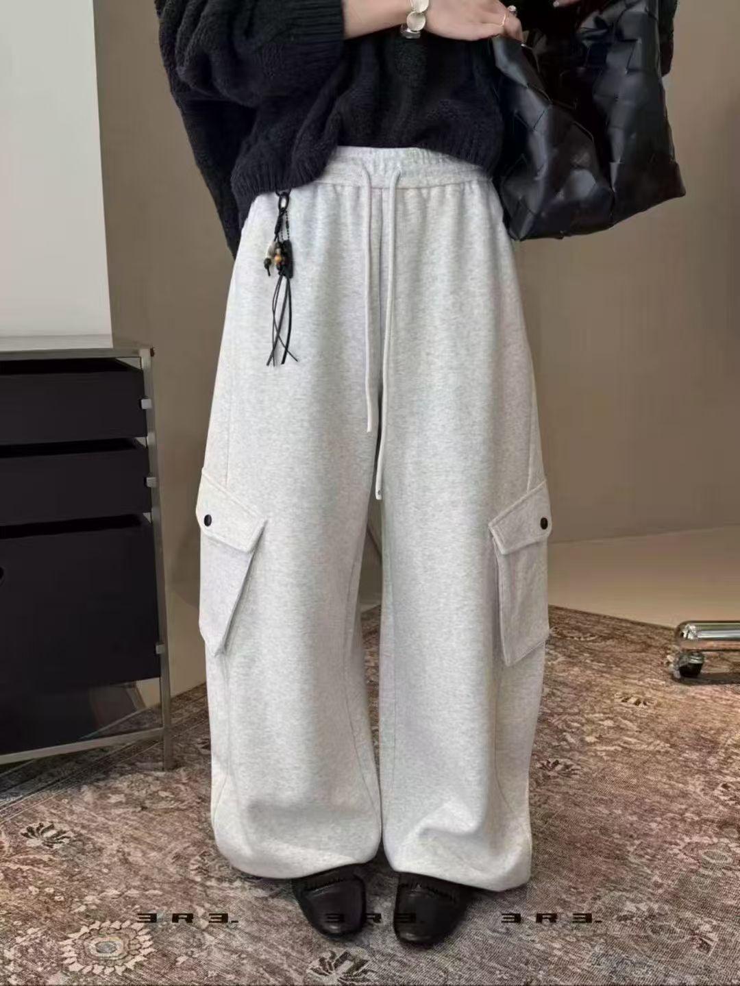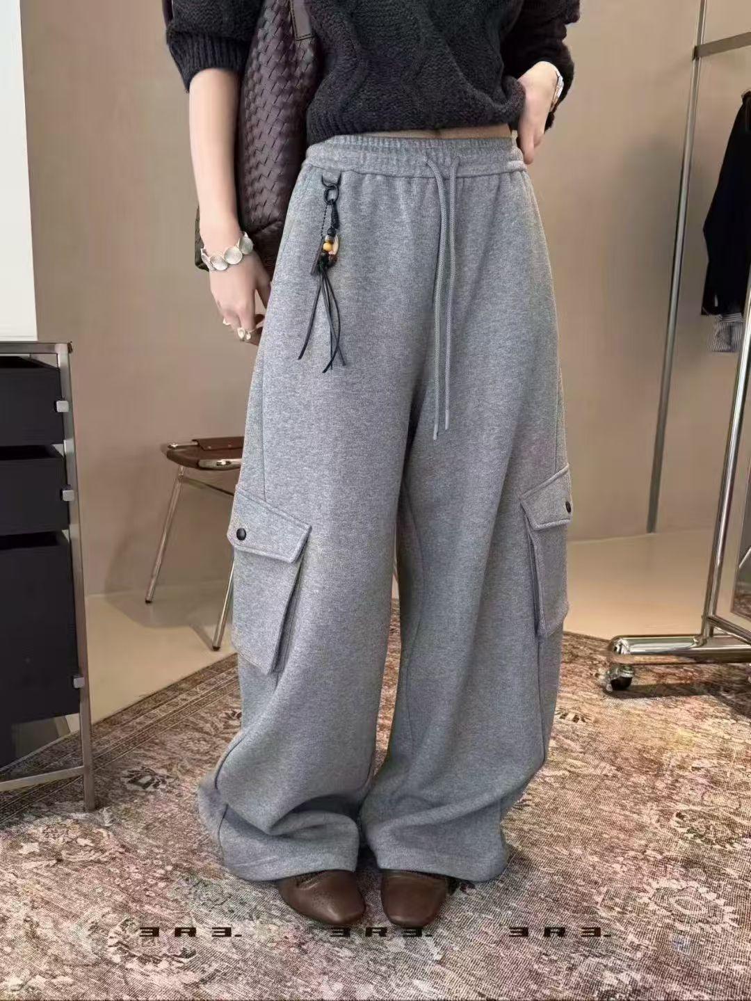 Pantalones de chándal de trabajo de estilo europeo de pierna ancha para mujer 2025 Otoño Nueva moda Cintura alta Pierna recta Versátil Suelto Deportivo Casual