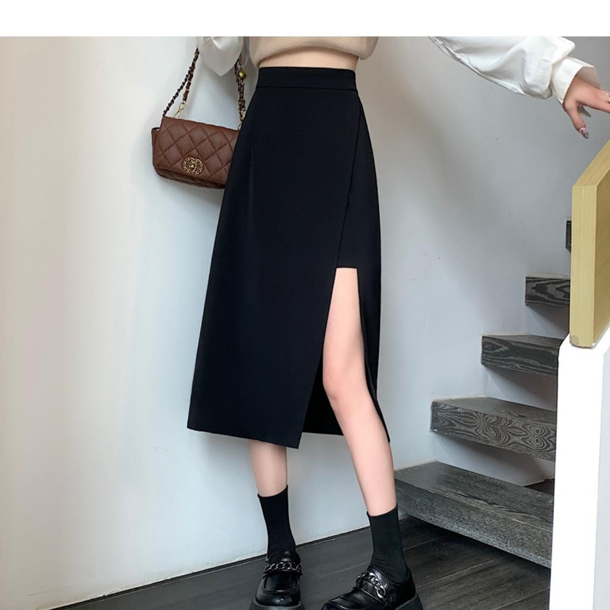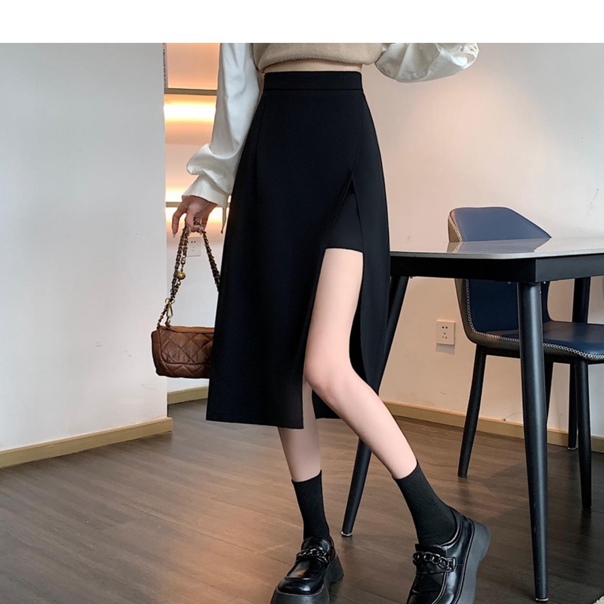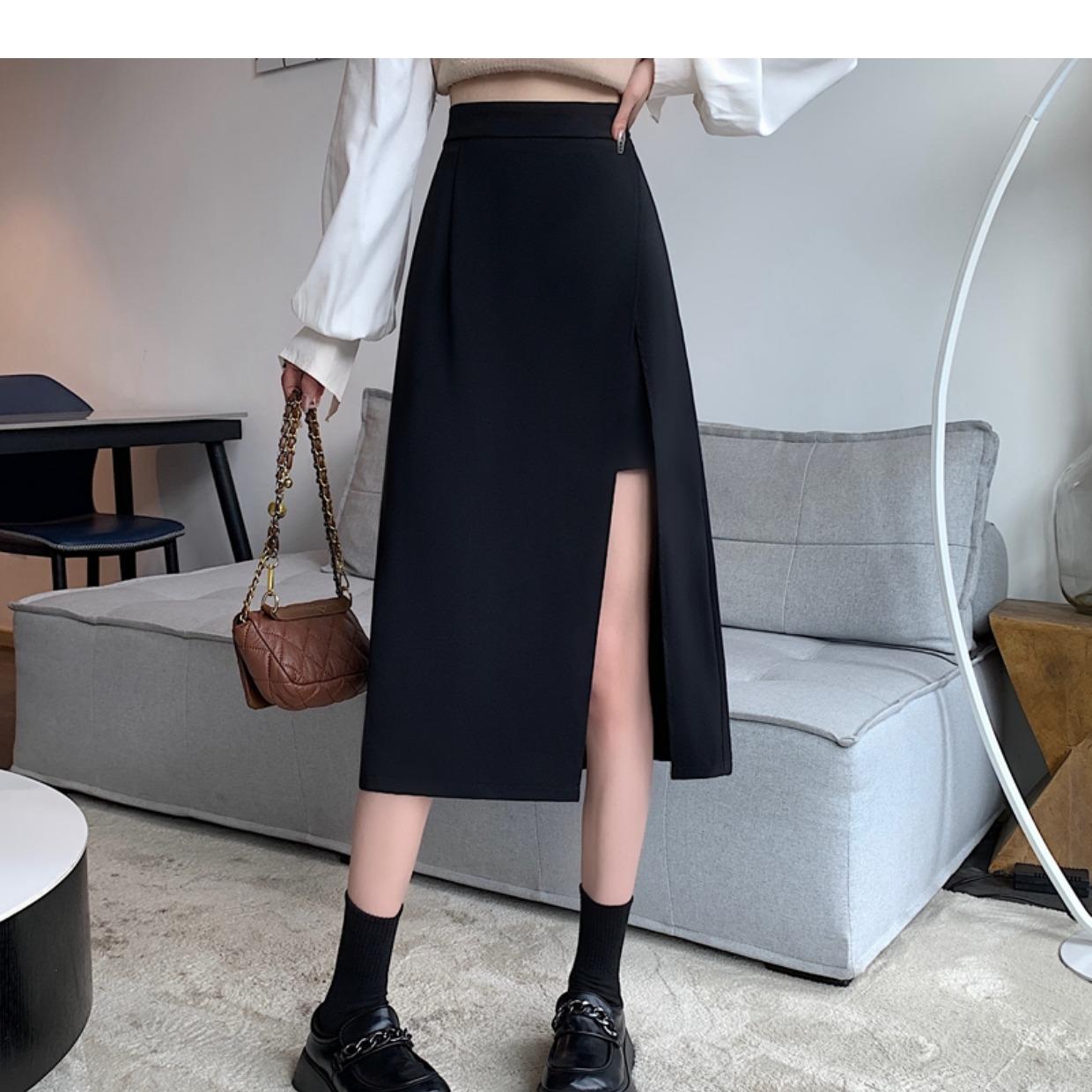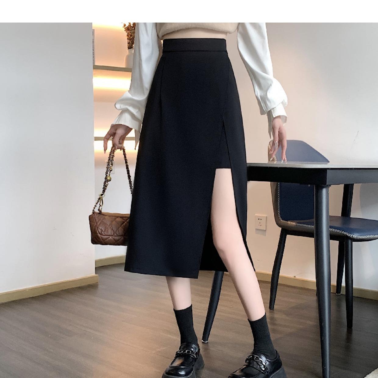 Falda de traje para mujer, talla grande, diseño de hermana gordita de otoño, cintura alta, línea A, falda larga, falda con abertura lateral pequeña