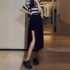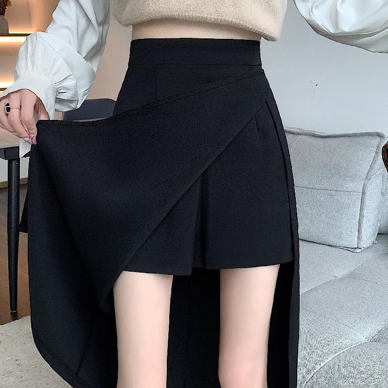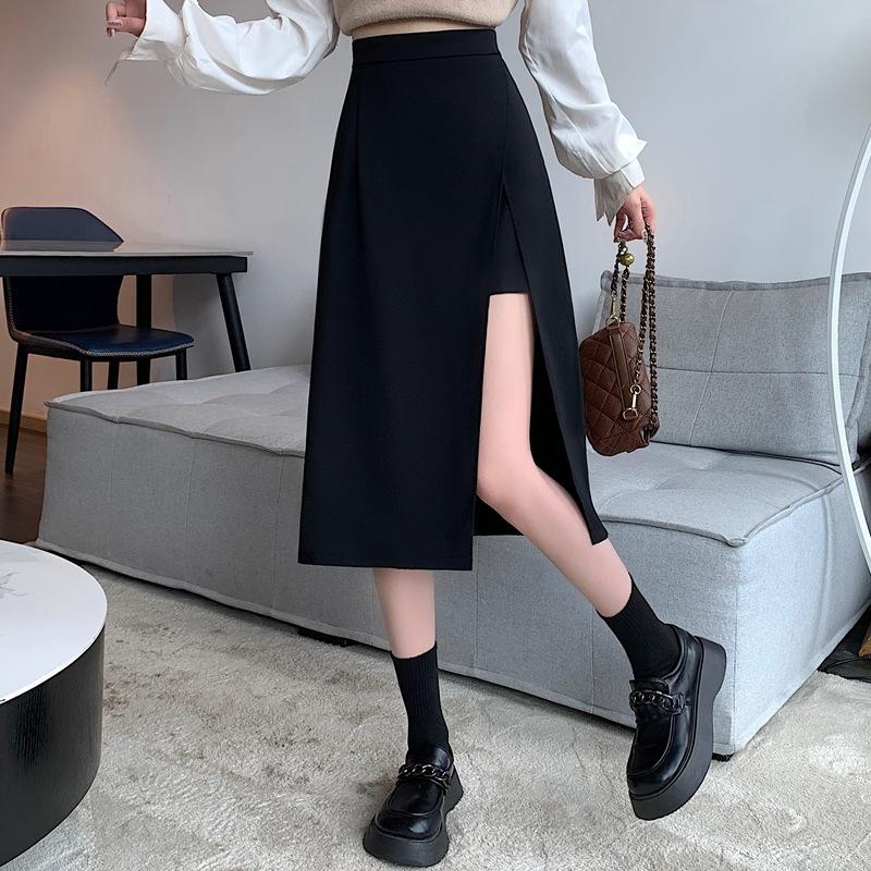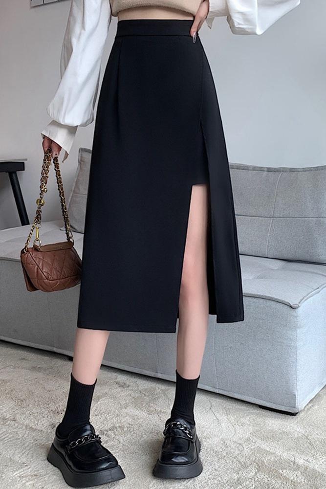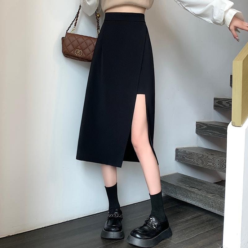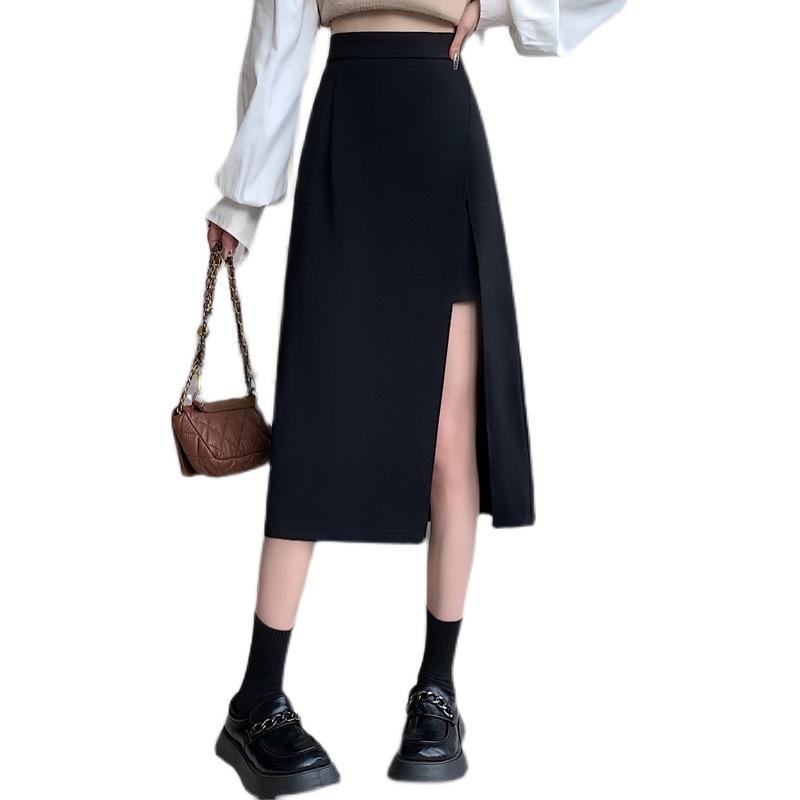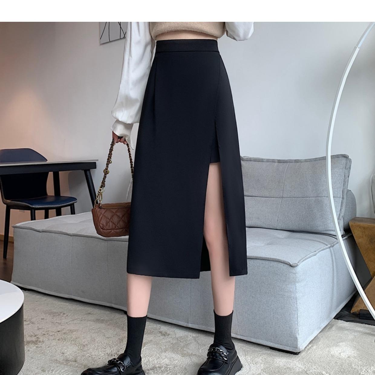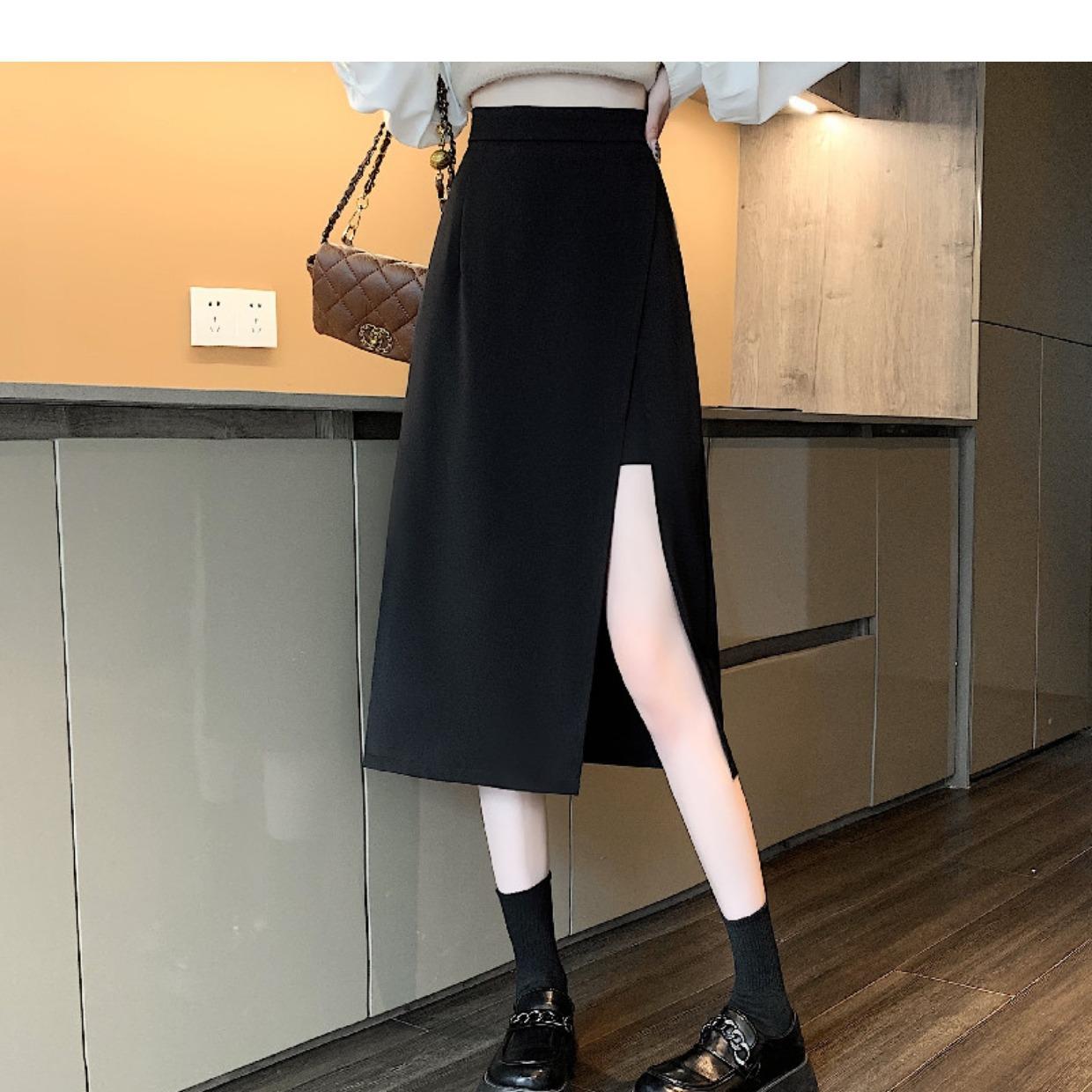Falda de traje para mujer, talla grande, diseño de hermana gordita de otoño, cintura alta, línea A, falda larga, falda con abertura lateral pequeña