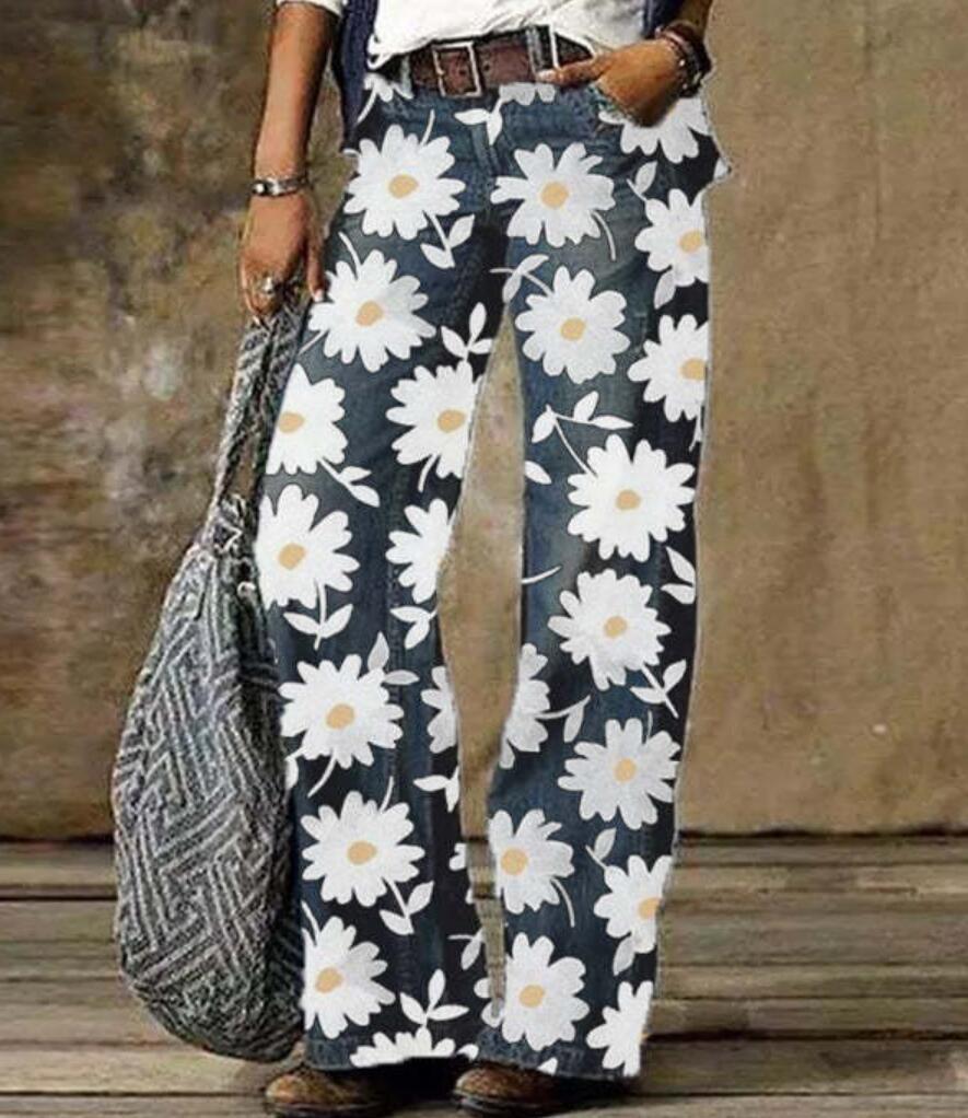 Pantalones de pierna ancha transfronterizos 2023 Primavera y Verano Amazon Pantalones rectos urbanos casuales sin cinturón Pantalones estampados Lunares
