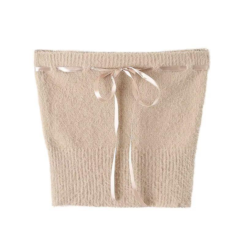 SW309-25 Verano Nuevo Chica Francesa Temperamento Romántico Casual Encaje con Cordones Lazo Bandeau Chal Set