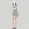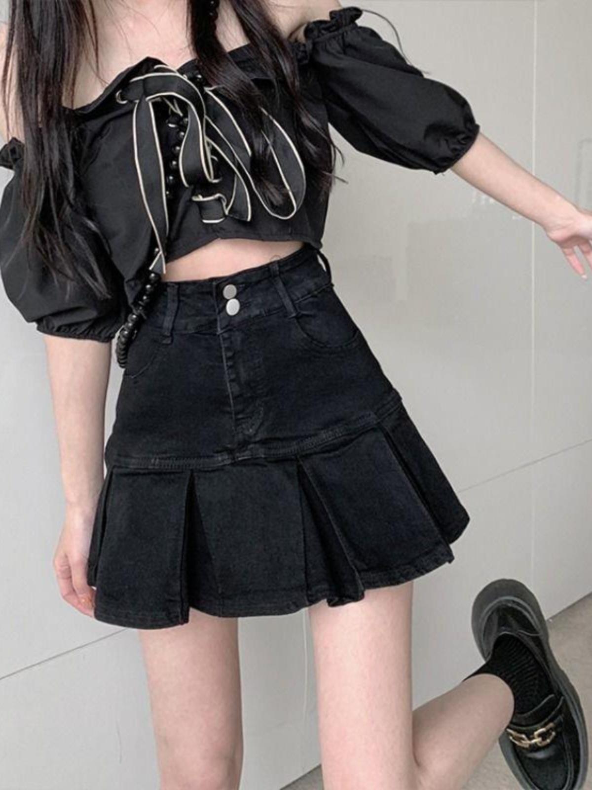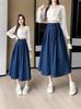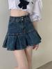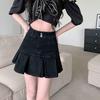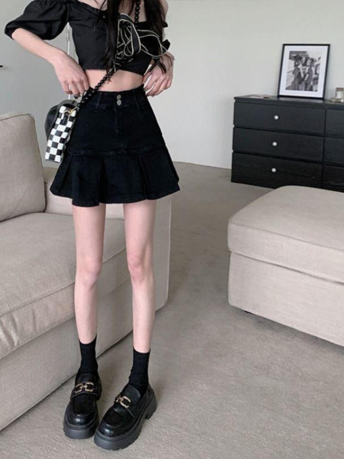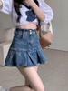 Nueva Falda Denim Plisada Retro Adelgazante Anti-Exposición Falda Corta Mujer Verano Petite Cintura Alta Línea A Falda Midi