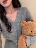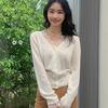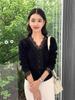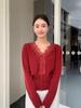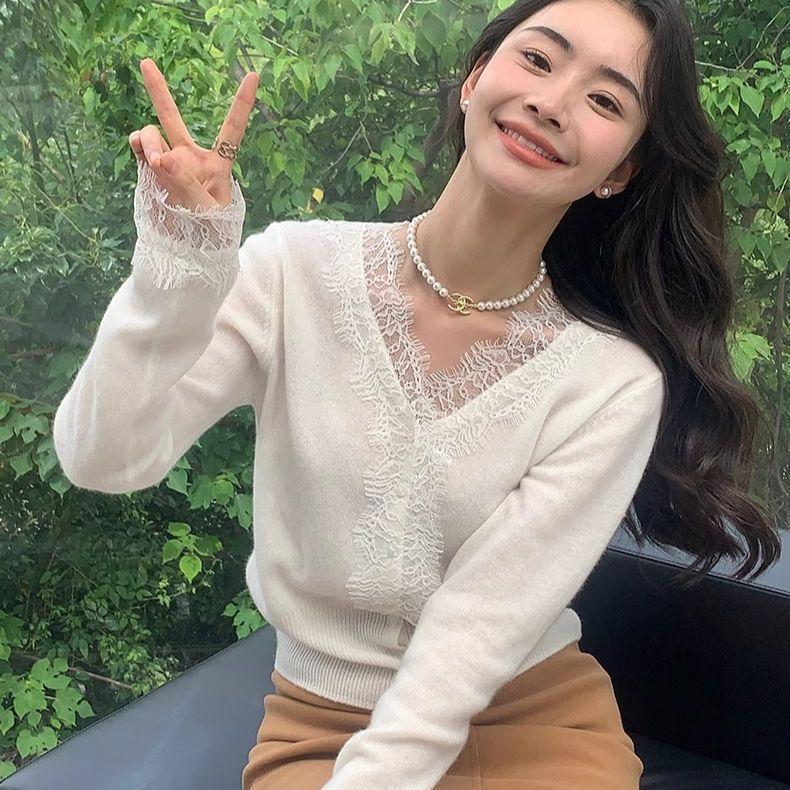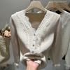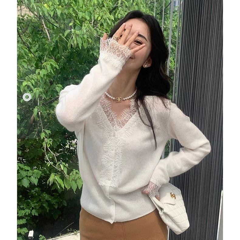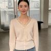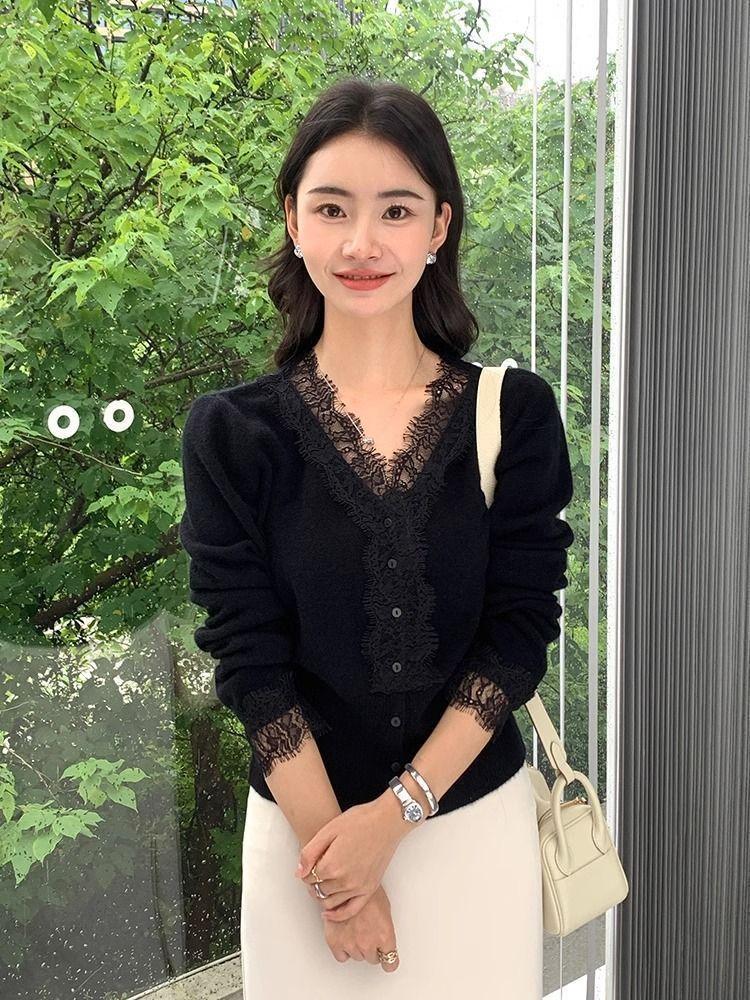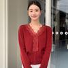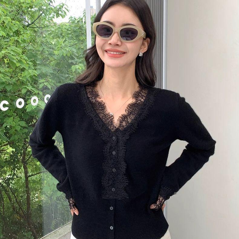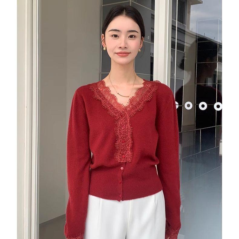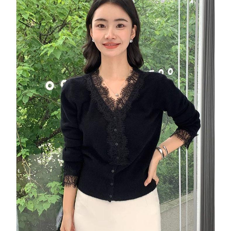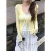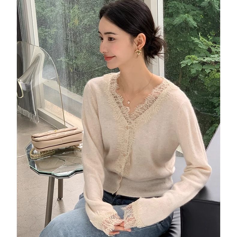 Cárdigan de Encaje Mujer Cuello en V Corto Suéter Exterior Delgado 2025 Nuevo Primavera Abrigo de Punto Dopamina Moda