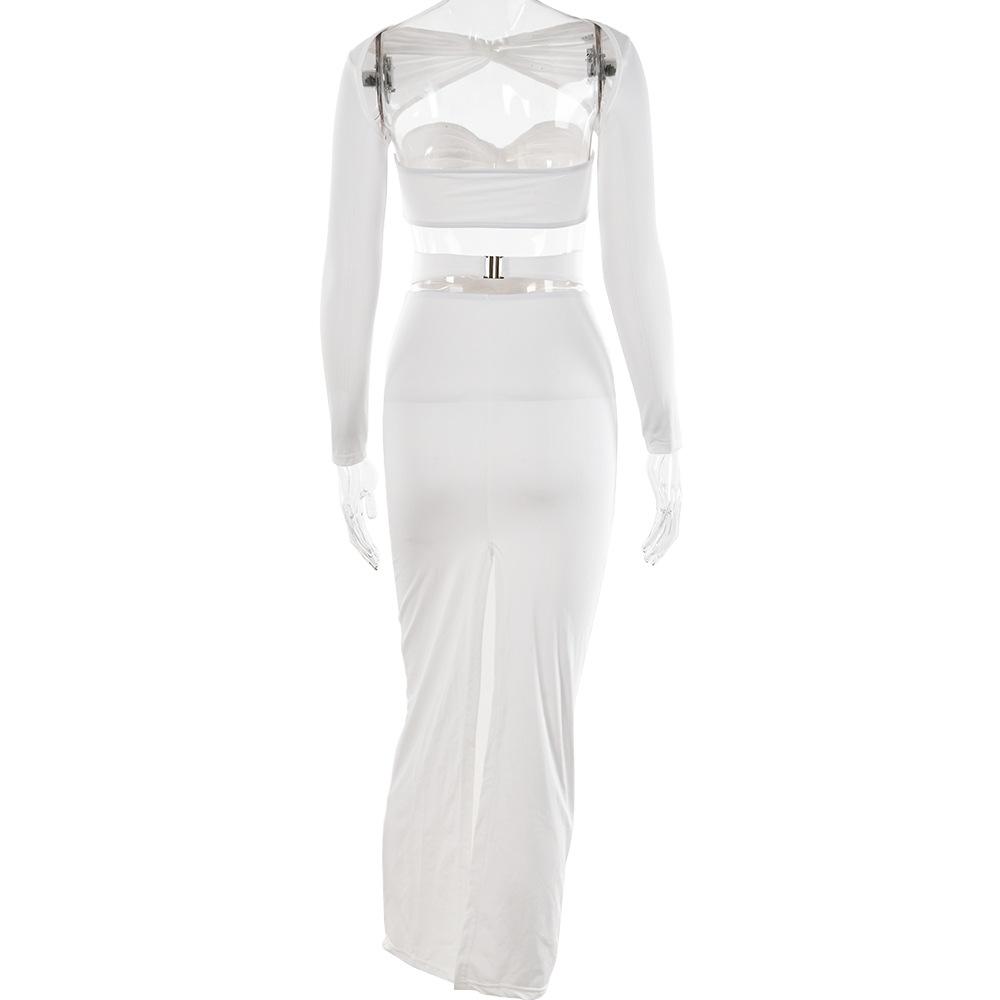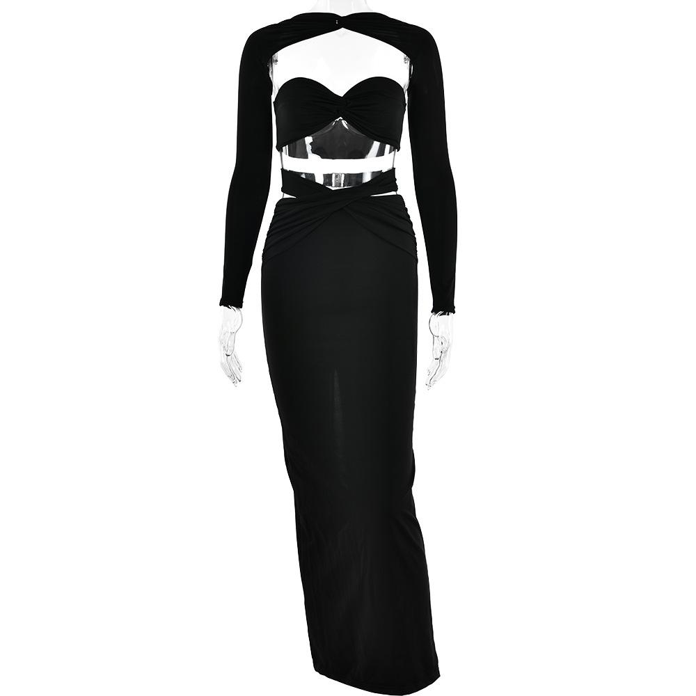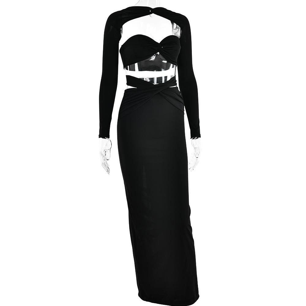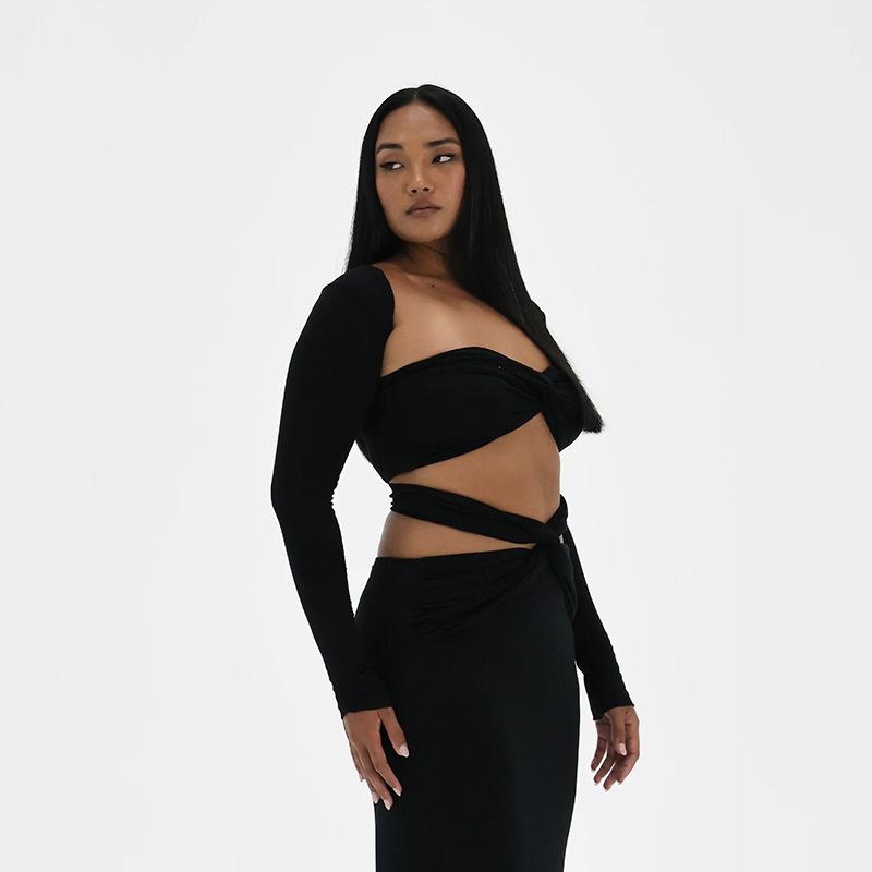 Conjunto de top de tubo de tres piezas, una pieza de ropa se puede usar de múltiples maneras; falda con tirantes + manga única estilo lazo, diseño único, cuidadosamente cortado y producido, tejido de seda de leche de alta calidad, alta elasticidad y comodidad, relación costo-beneficio y sentido de la moda.