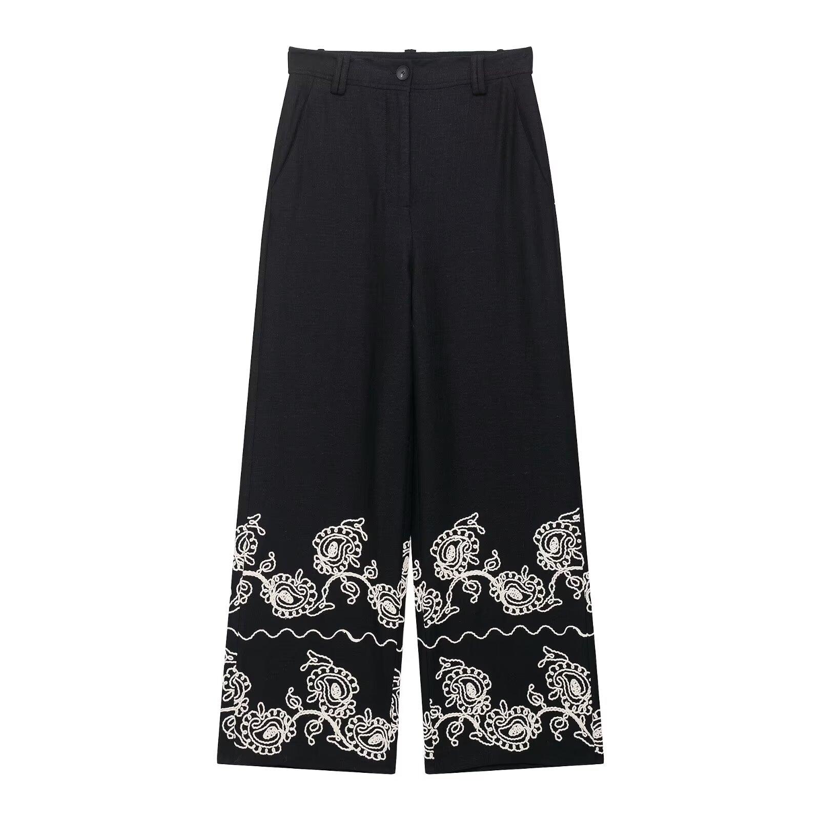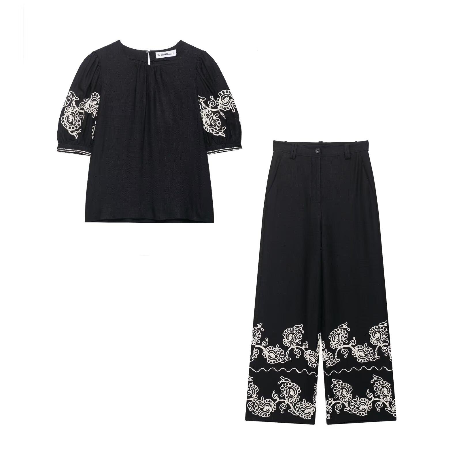 Venta al por Mayor Transfronteriza 2024 Verano Nueva Moda Reductor de Edad Top Bordado sin Mangas + Traje de Pantalón