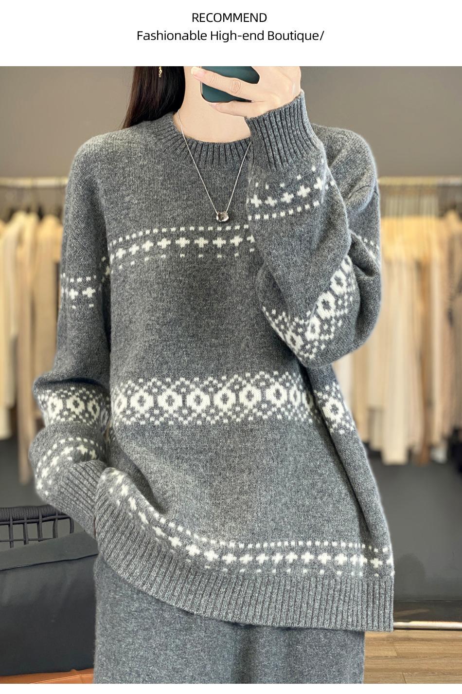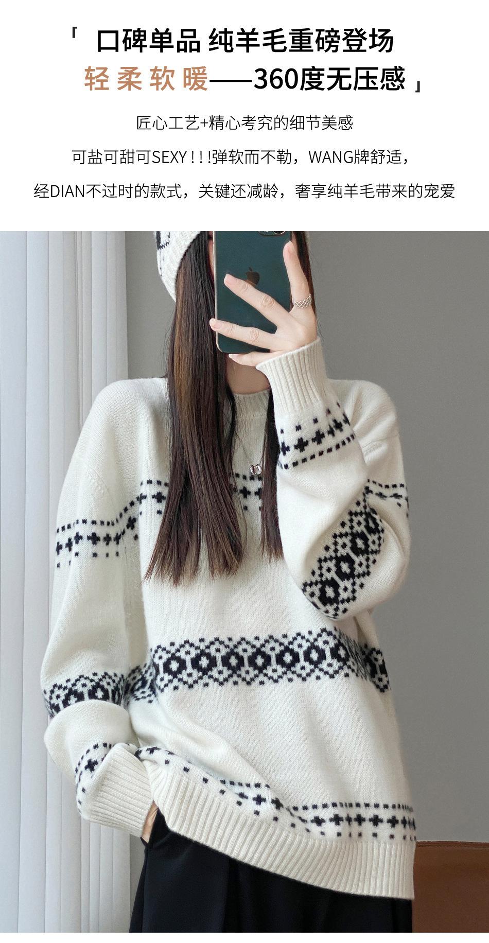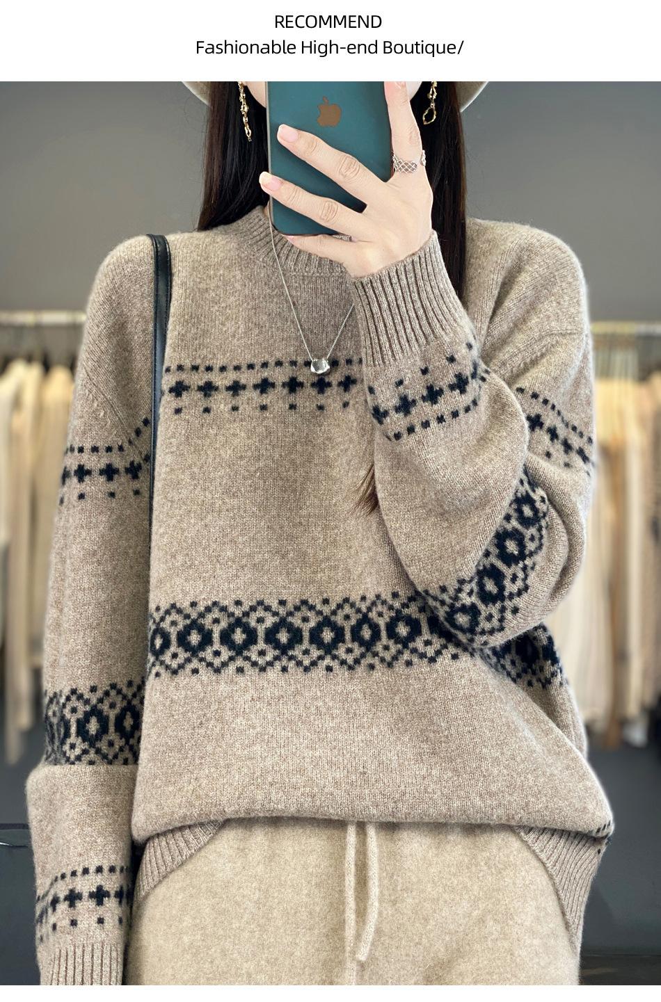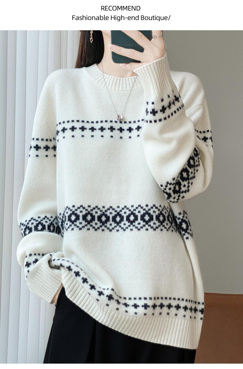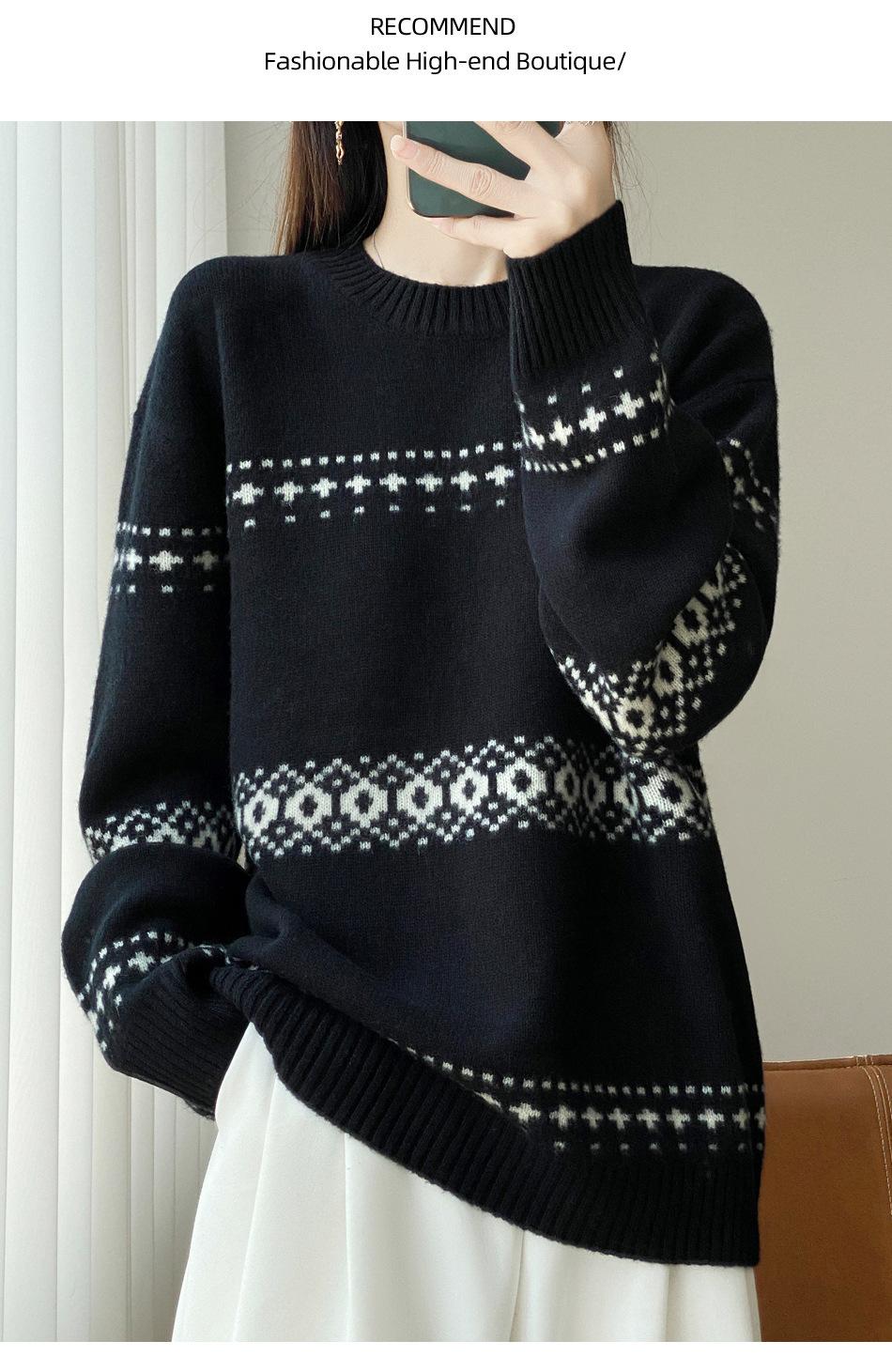 Suéter de Nuevo Estilo Otoño/Invierno 2025 100% Lana para Mujer Holgado Cuello Redondo Vintage Grueso Jersey Básico de Punto