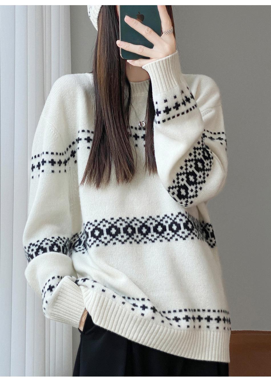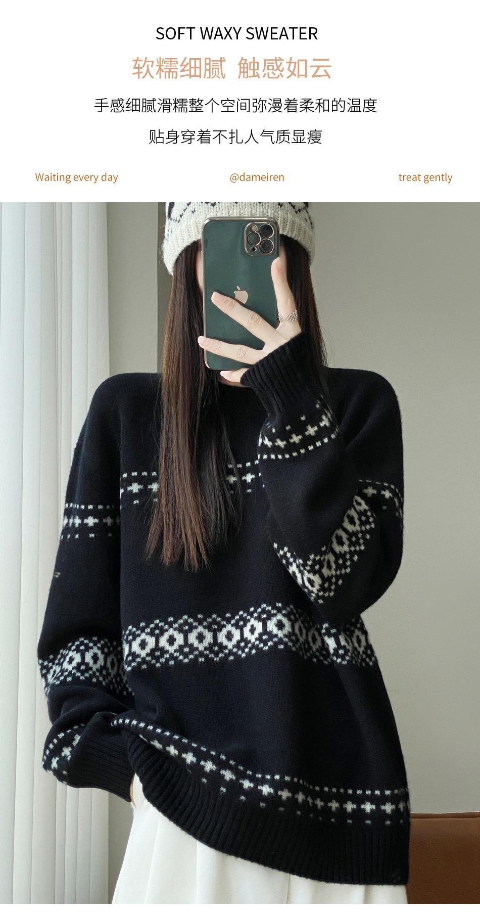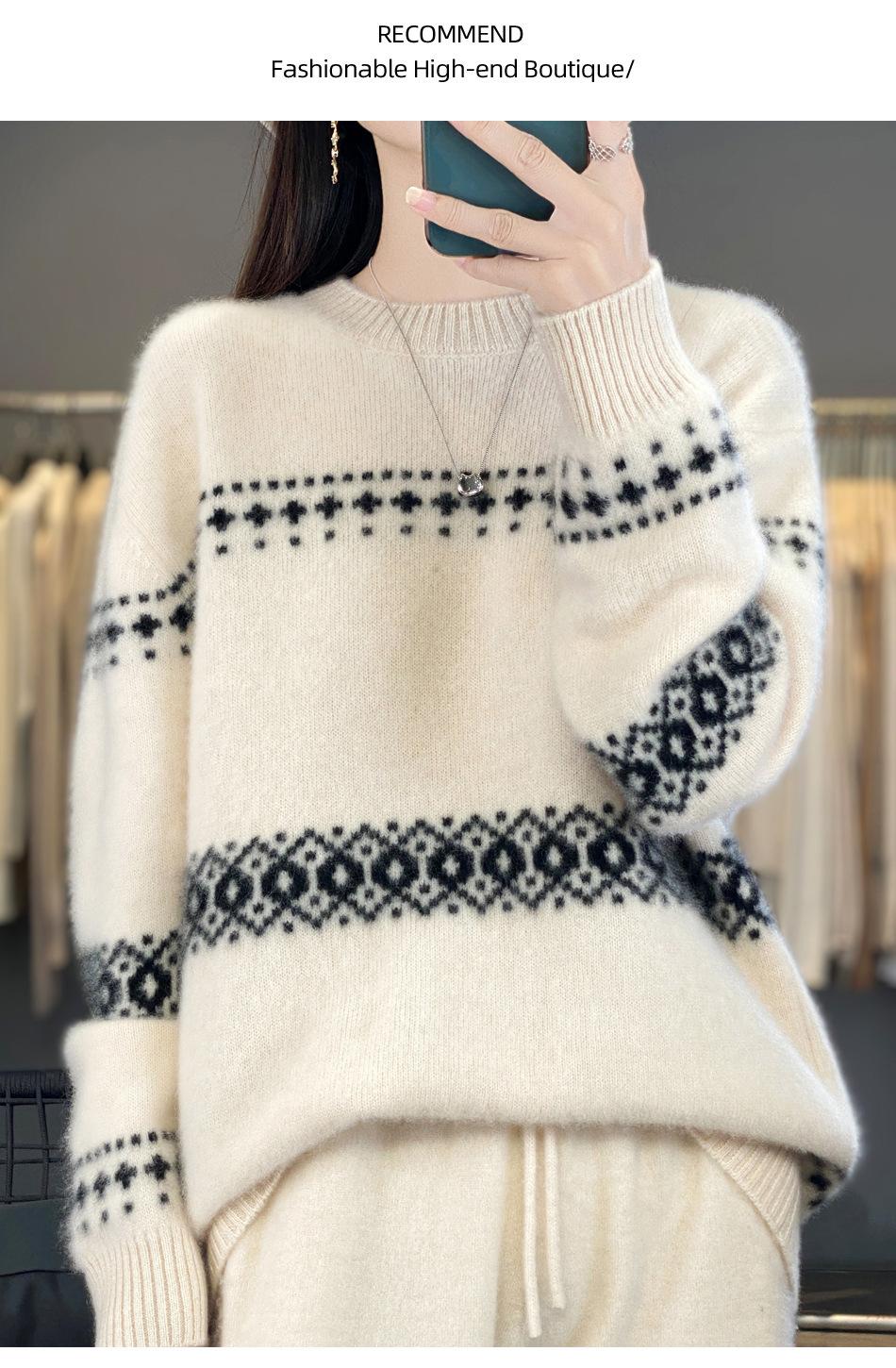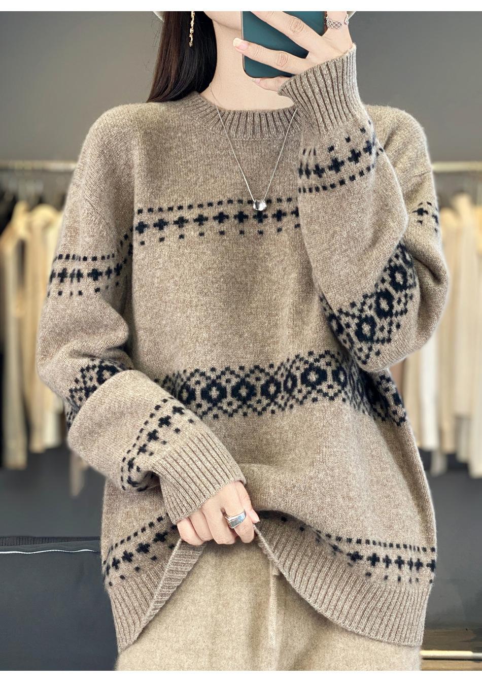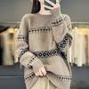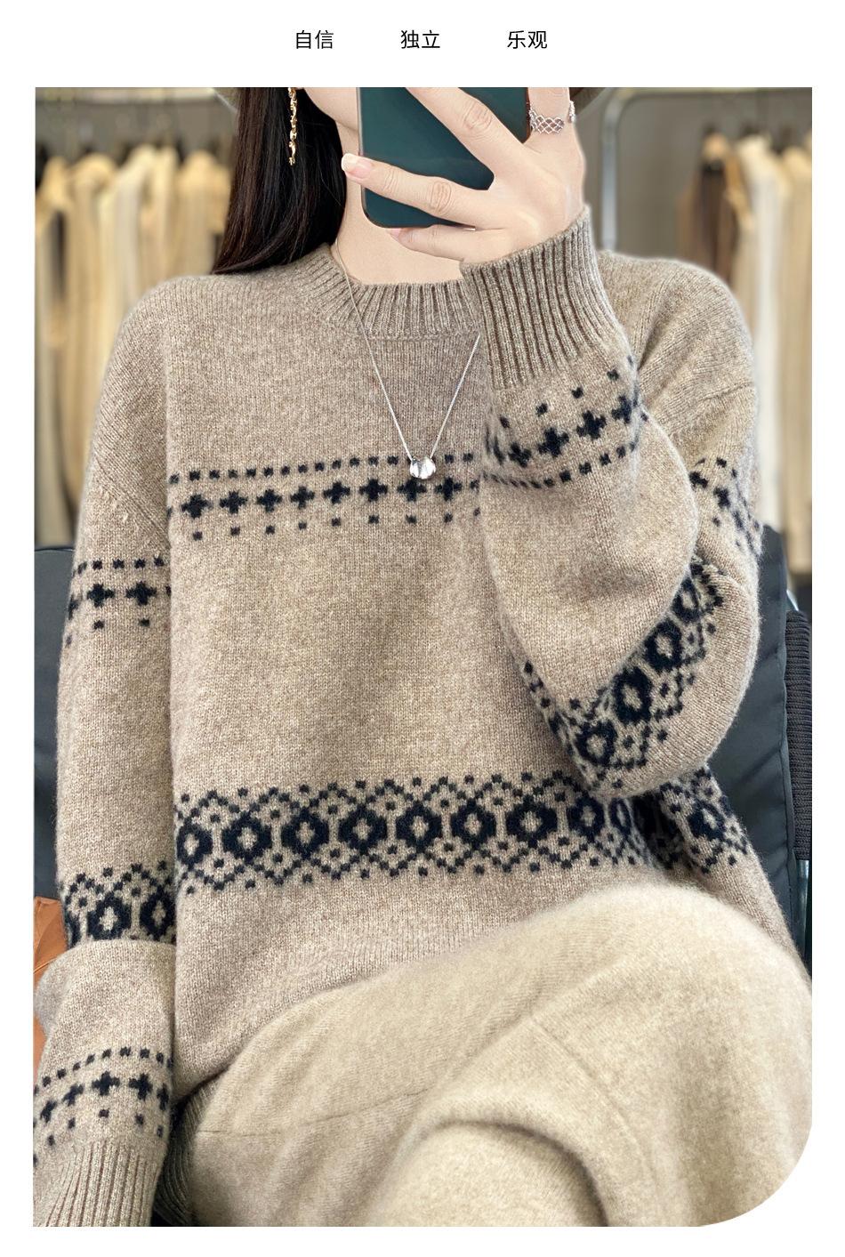 Suéter de Nuevo Estilo Otoño/Invierno 2025 100% Lana para Mujer Holgado Cuello Redondo Vintage Grueso Jersey Básico de Punto