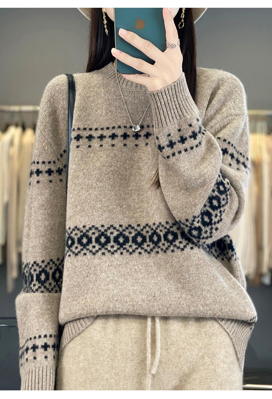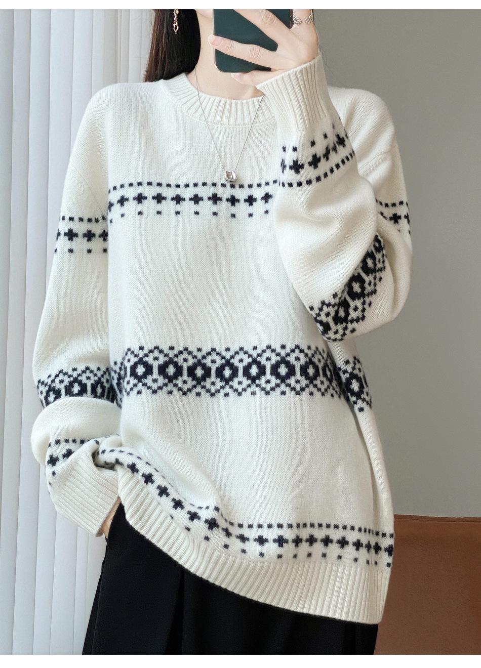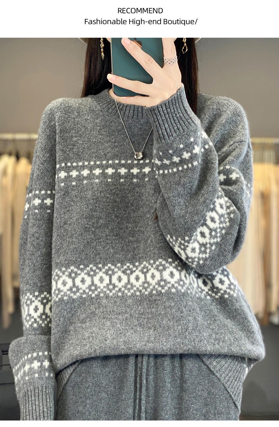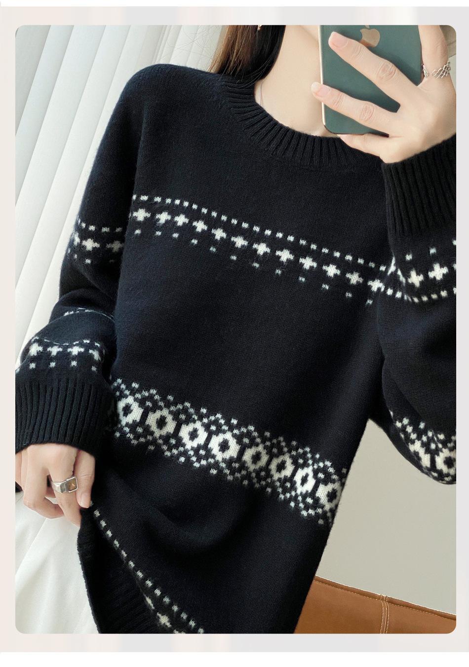 Suéter de Nuevo Estilo Otoño/Invierno 2025 100% Lana para Mujer Holgado Cuello Redondo Vintage Grueso Jersey Básico de Punto