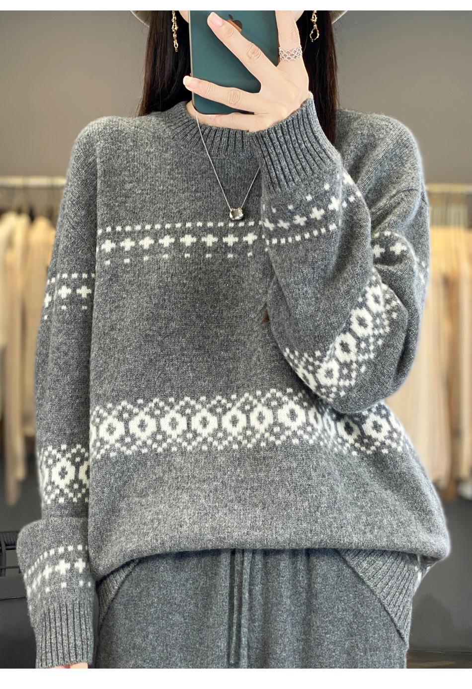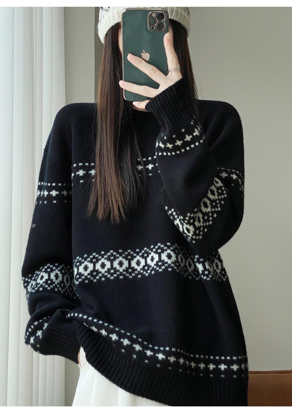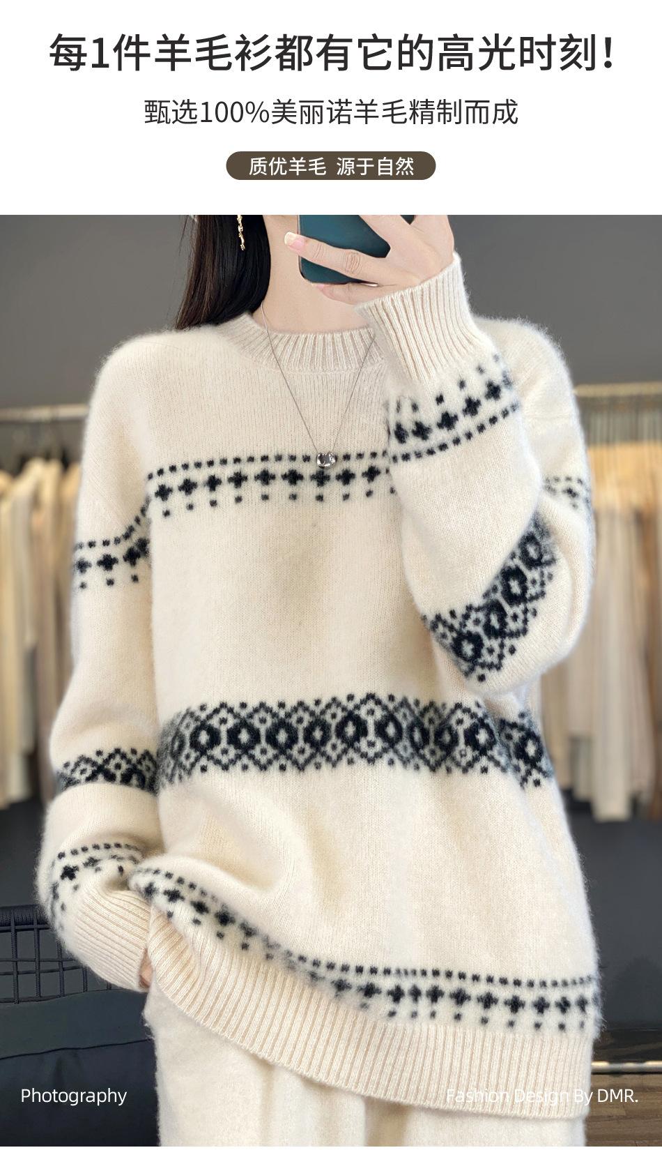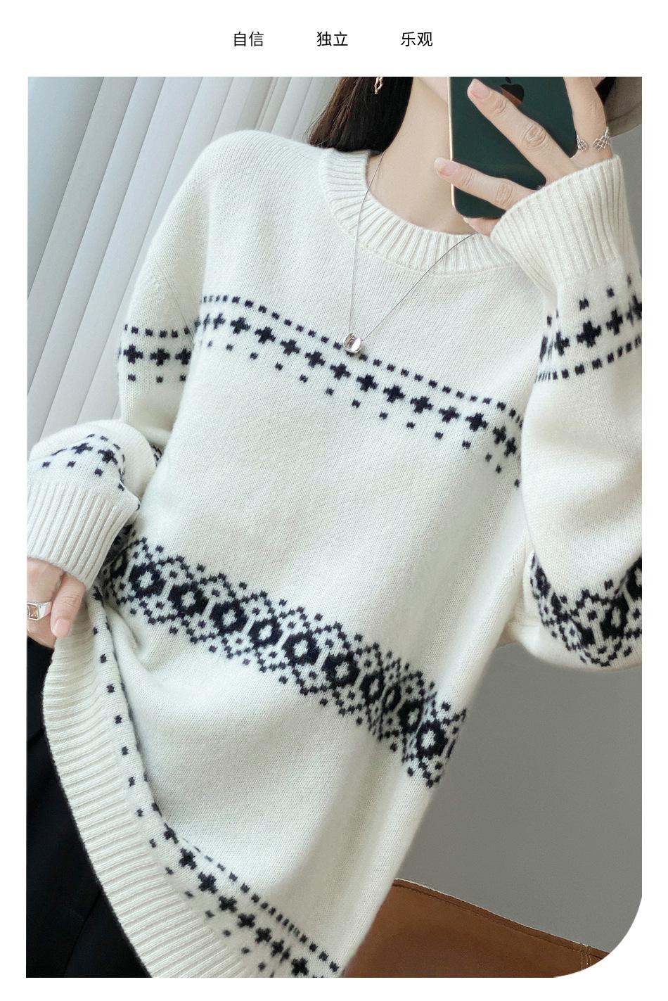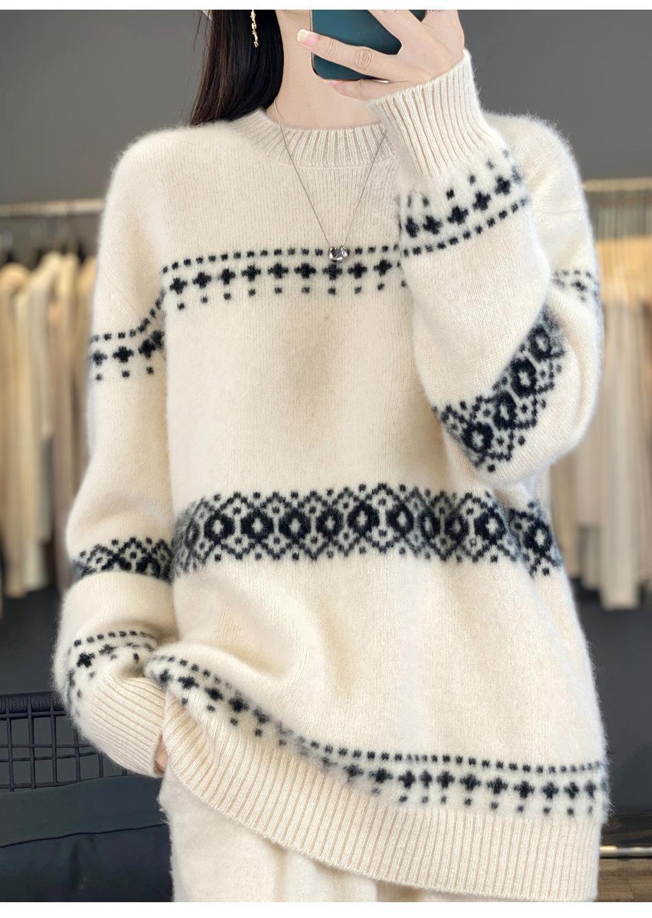 Suéter de Nuevo Estilo Otoño/Invierno 2025 100% Lana para Mujer Holgado Cuello Redondo Vintage Grueso Jersey Básico de Punto