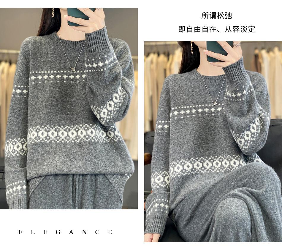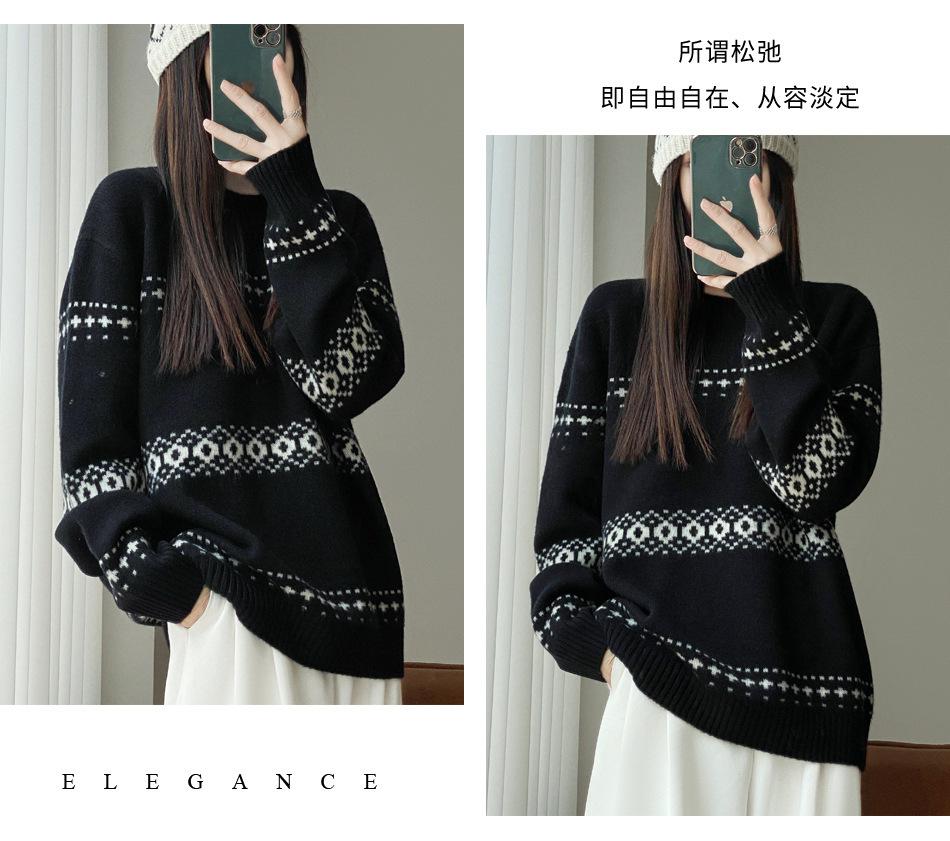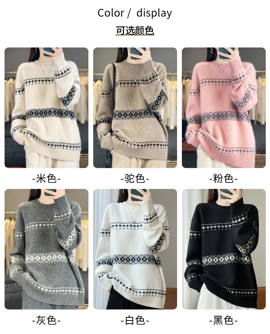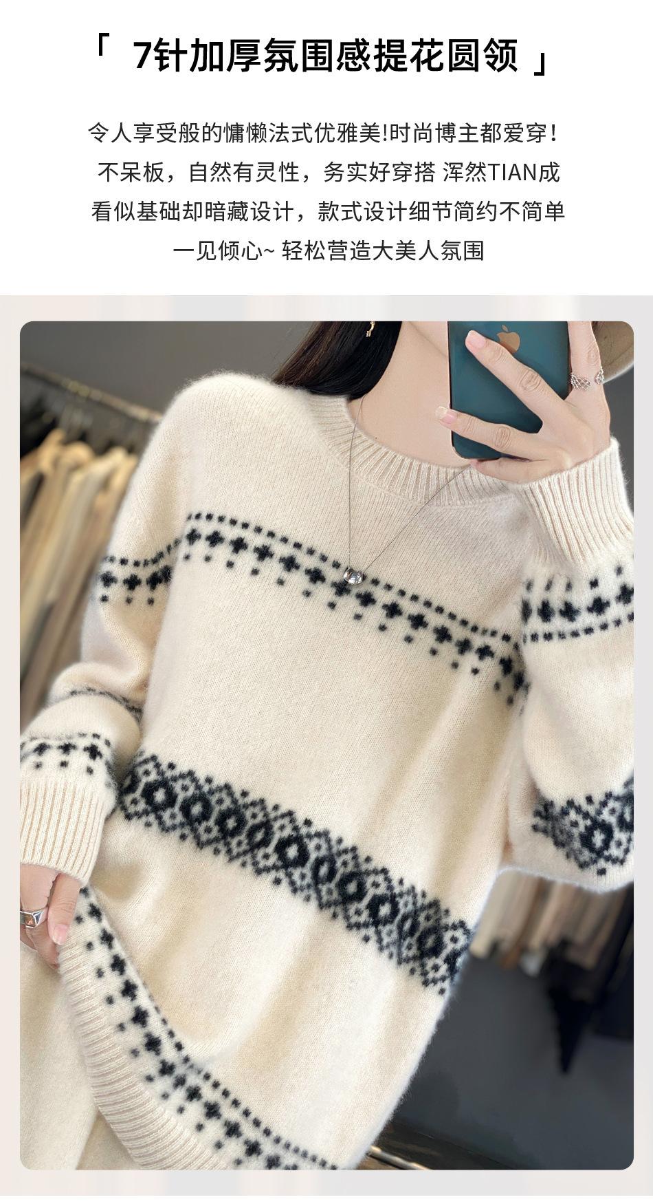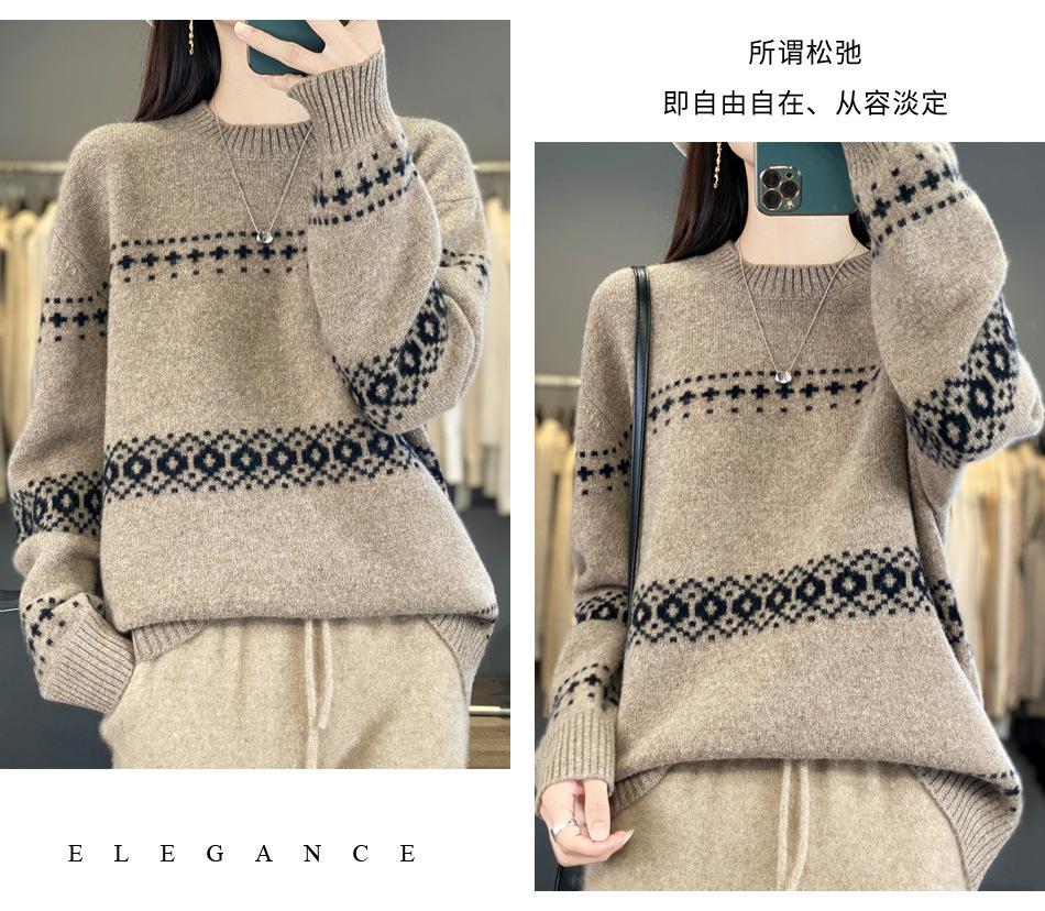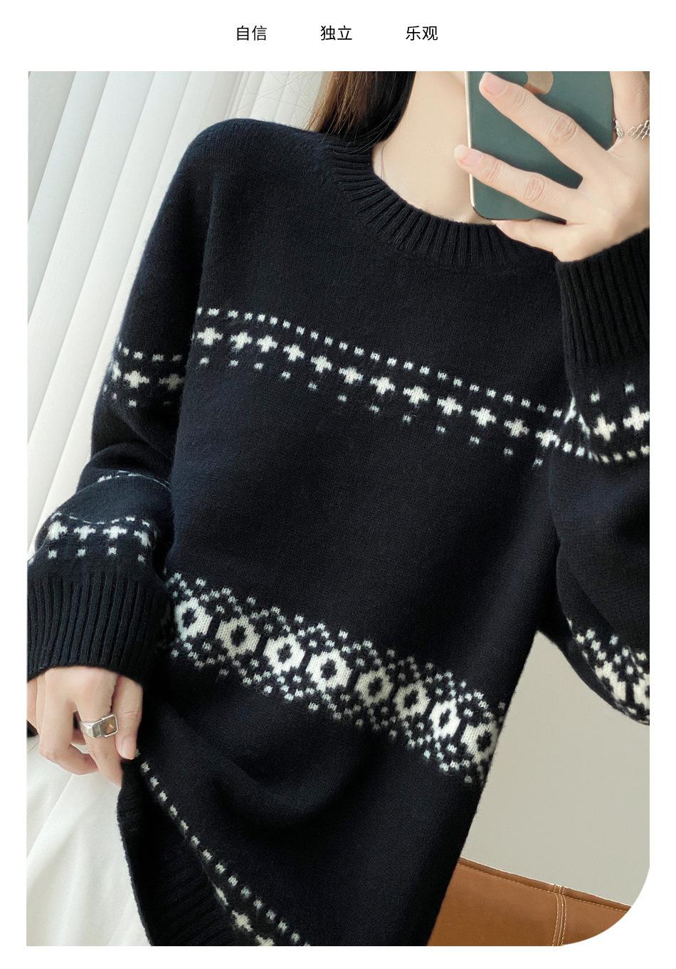 Suéter de Nuevo Estilo Otoño/Invierno 2025 100% Lana para Mujer Holgado Cuello Redondo Vintage Grueso Jersey Básico de Punto