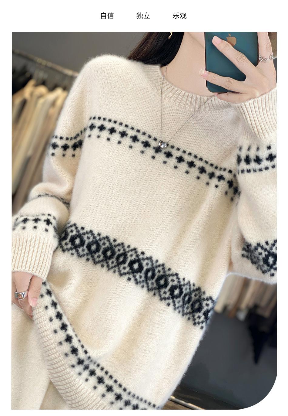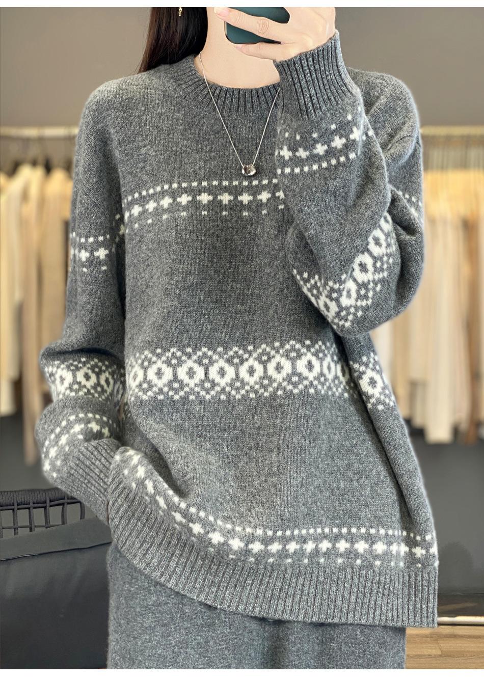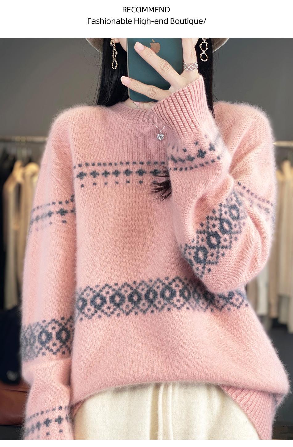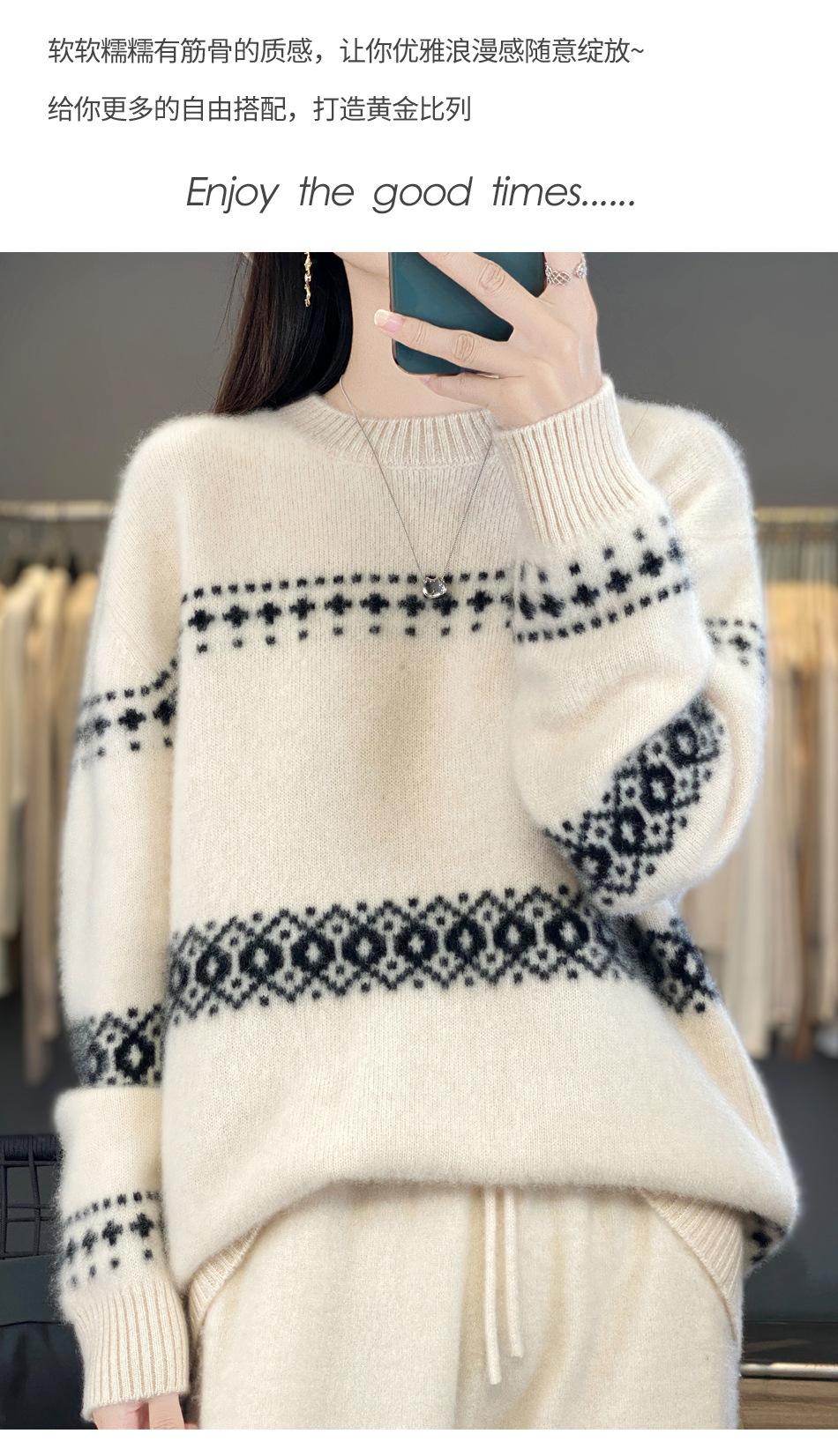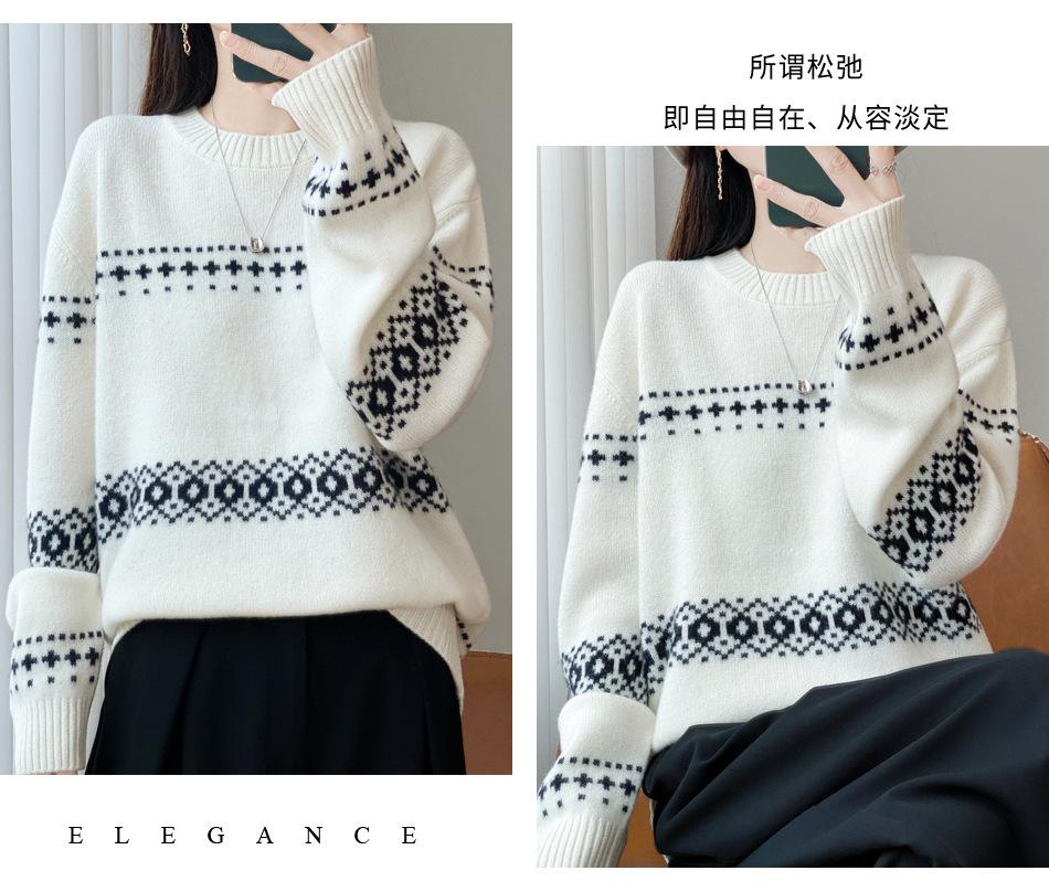 Suéter de Nuevo Estilo Otoño/Invierno 2025 100% Lana para Mujer Holgado Cuello Redondo Vintage Grueso Jersey Básico de Punto