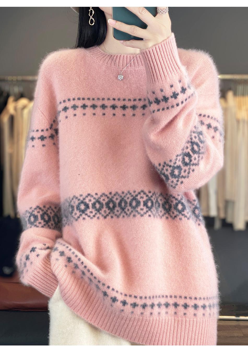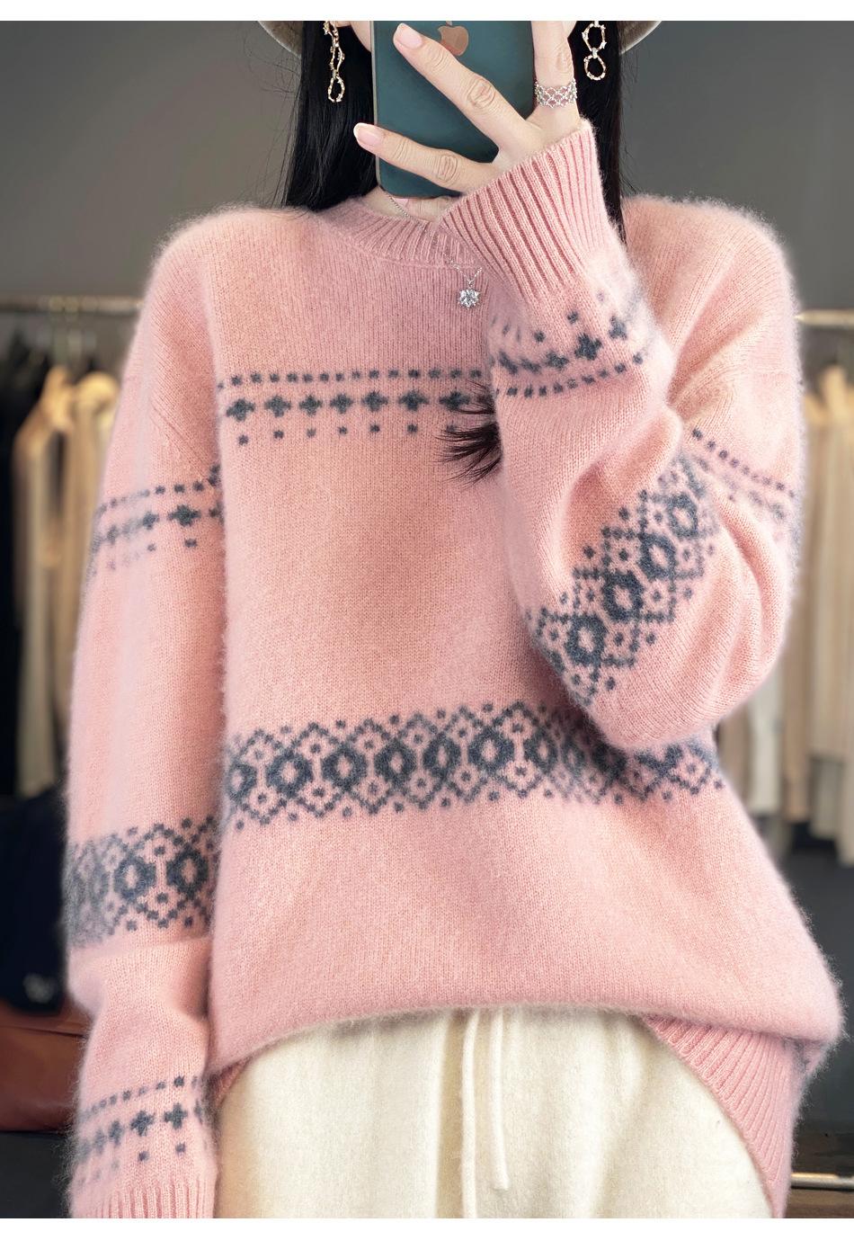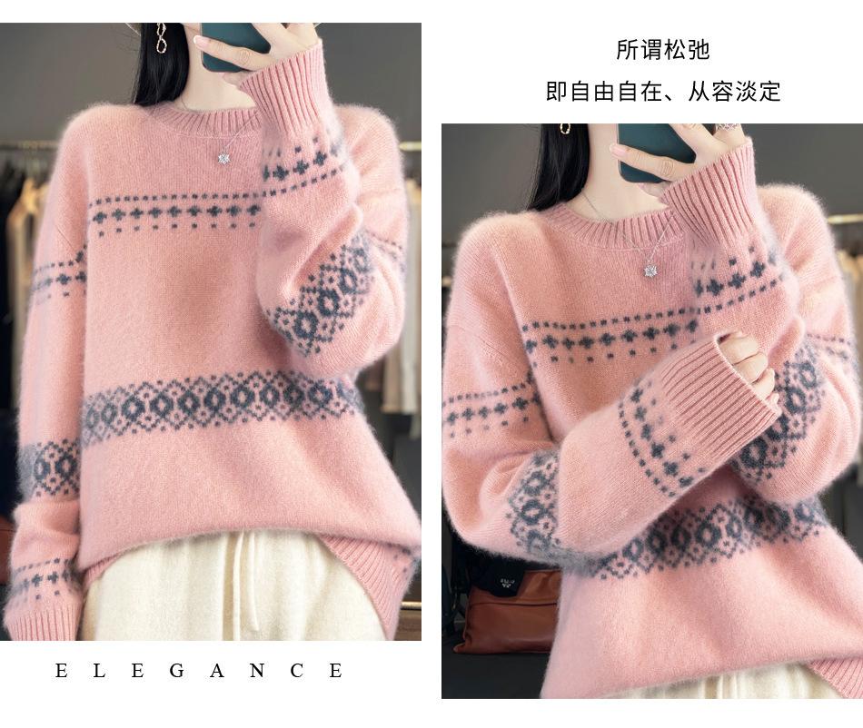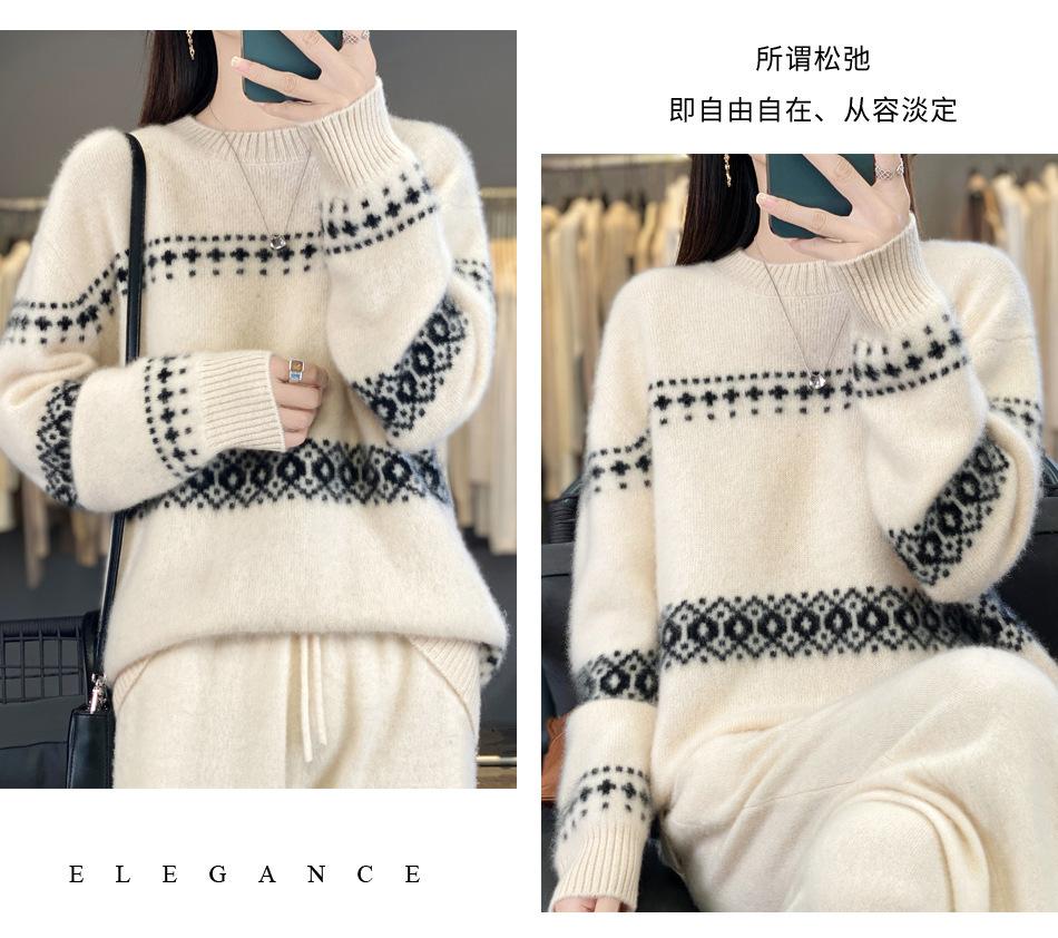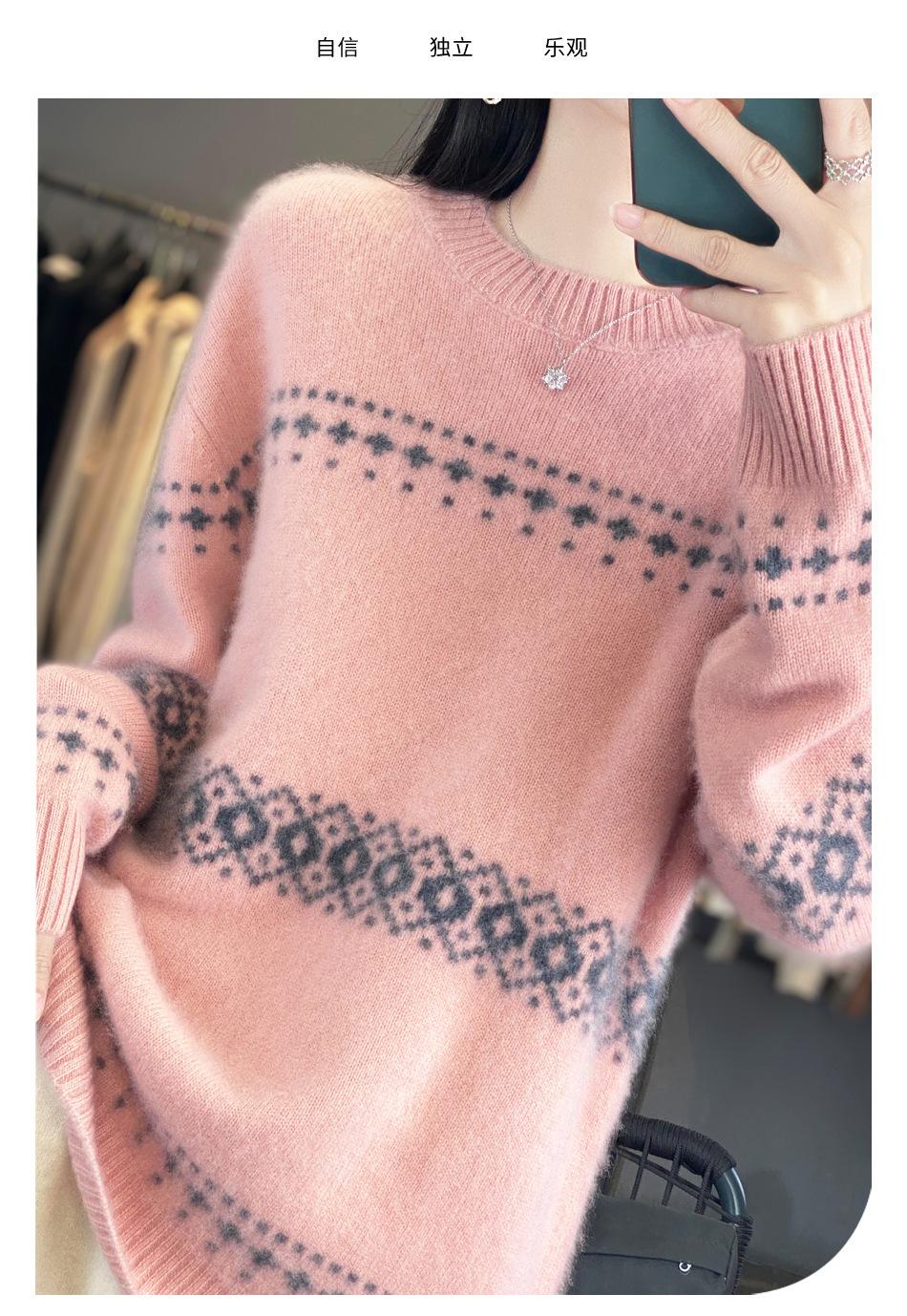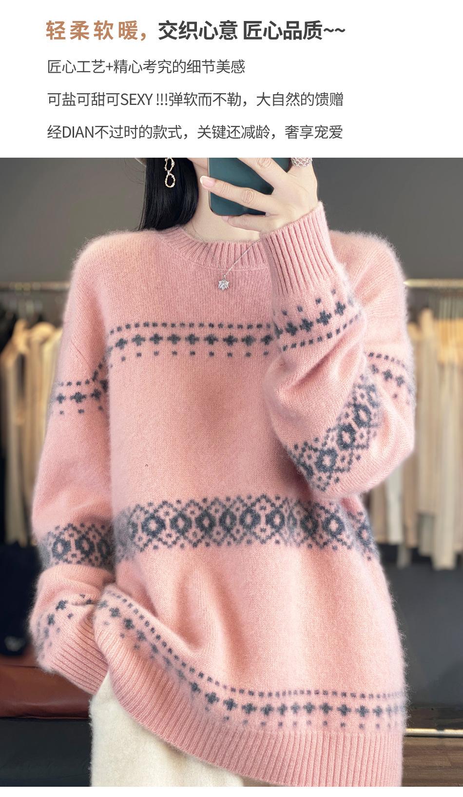 Suéter de Nuevo Estilo Otoño/Invierno 2025 100% Lana para Mujer Holgado Cuello Redondo Vintage Grueso Jersey Básico de Punto