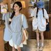 Blusas de Maternidad, Ropa de Verano, Camisetas Holgadas de Manga Corta Estilo Coreano, Trajes de Longitud Media que Cubren la Barriga, Conjuntos de Dos Piezas de Shorts de Verano