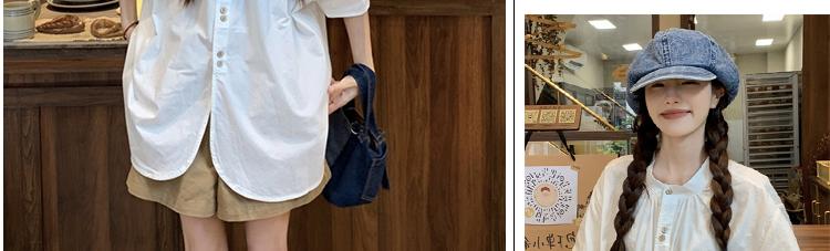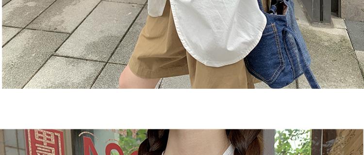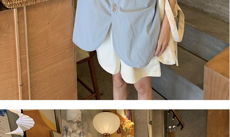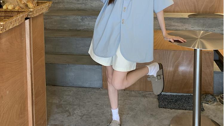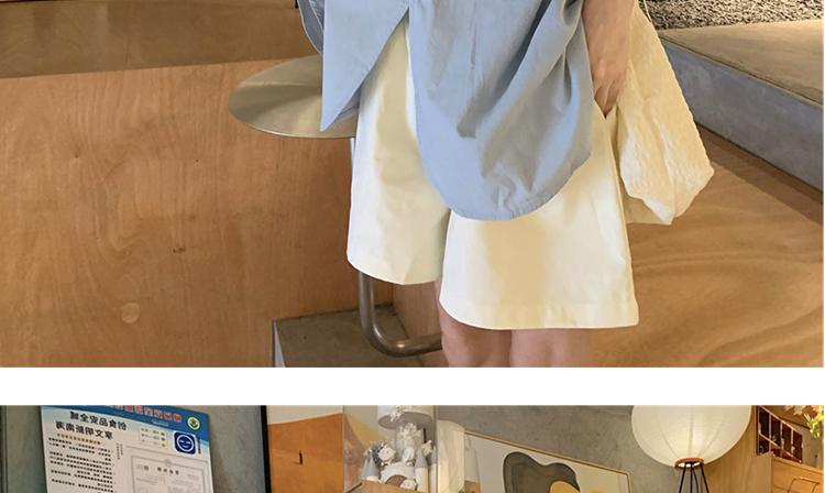 Blue top, White top, White shorts, Khaki shorts, Blue top + white shorts, White top + khaki shorts