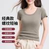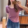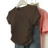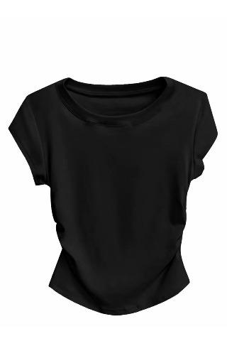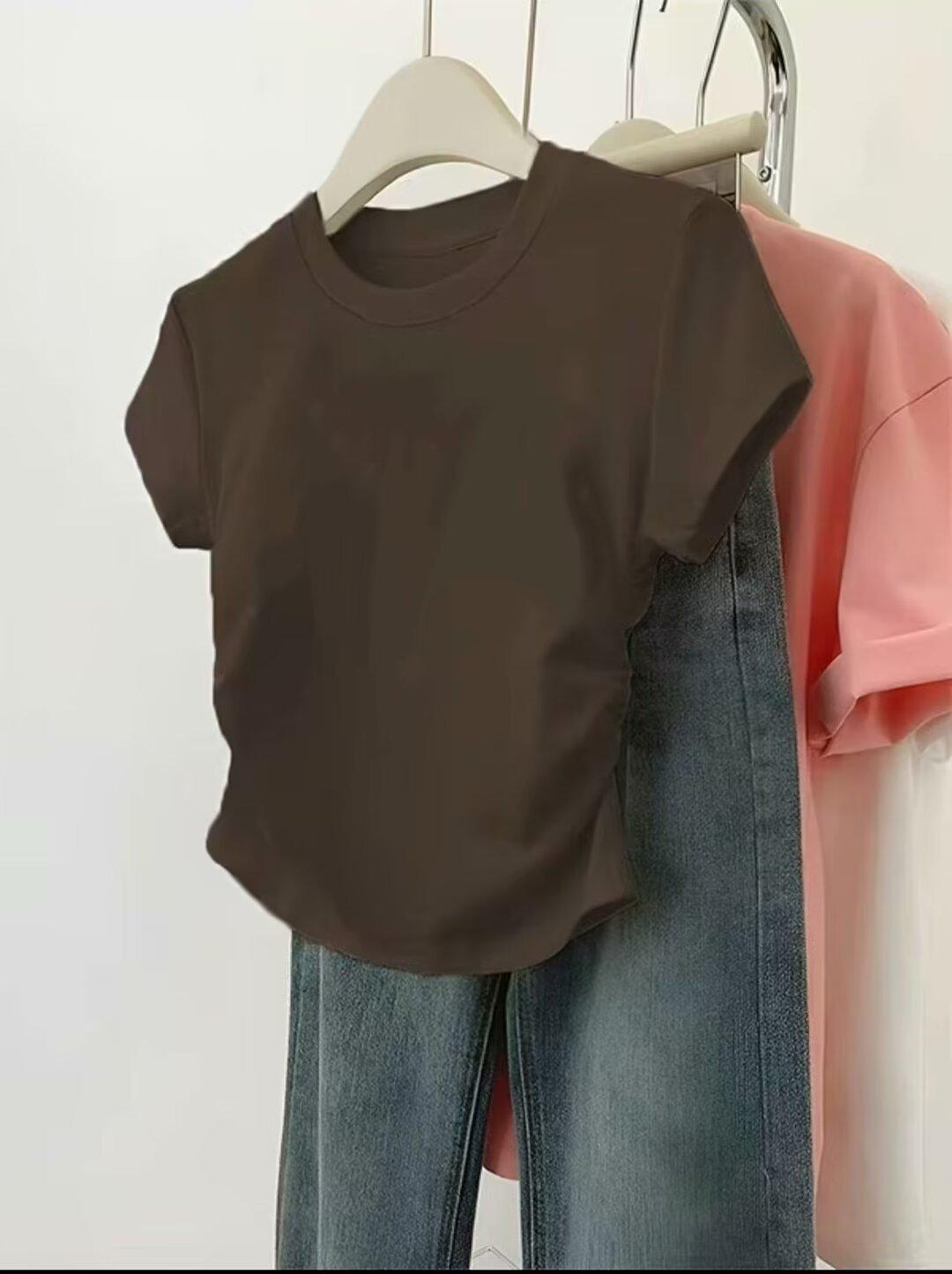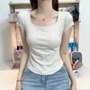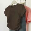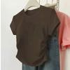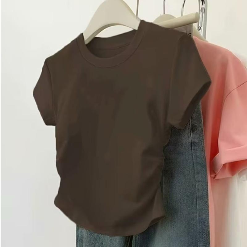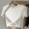 Hombro cintura chica hot playera blanca de manga corta verano 2025 nueva cuello redondo plisada ropa interior delgada top corto