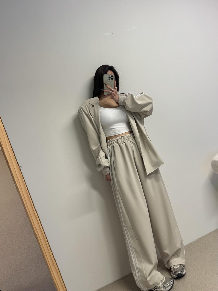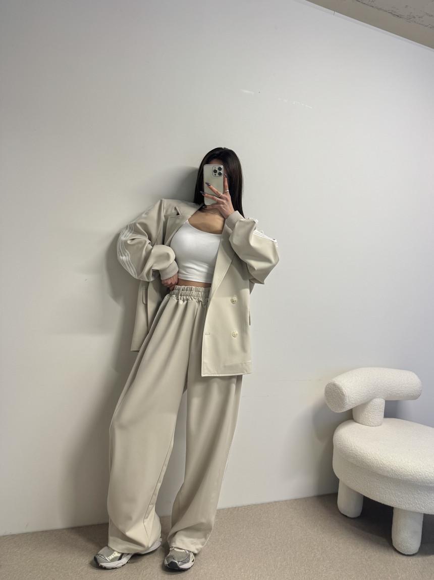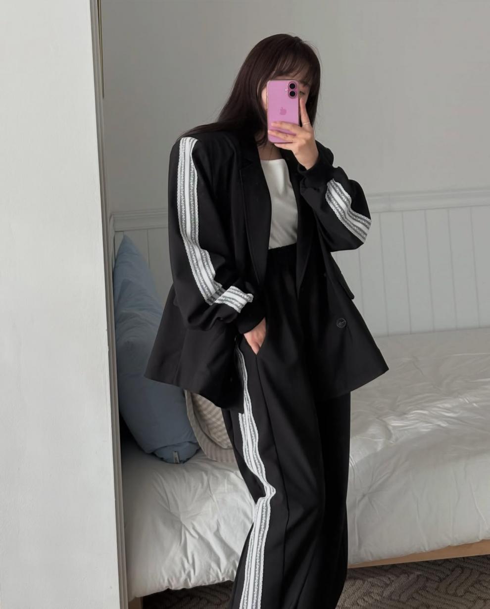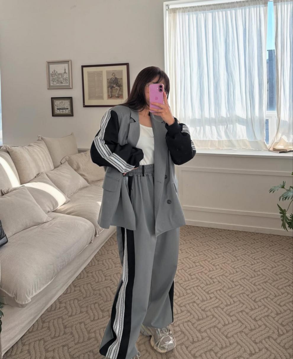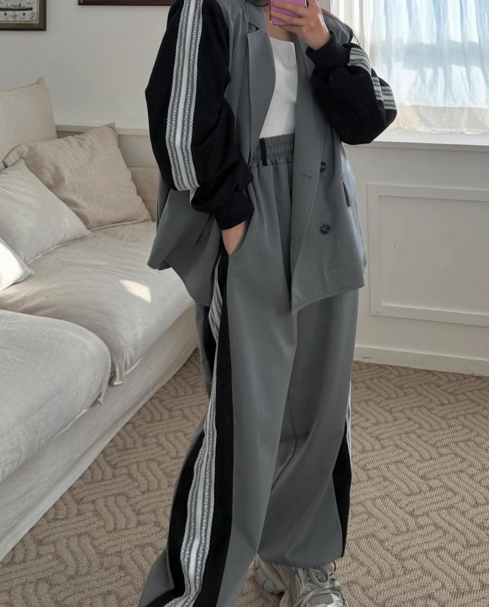 Traje Blazer de Moda Coreana de Alta Gama para Mujer Estilo Deportivo + Pantalones de Pierna Ancha