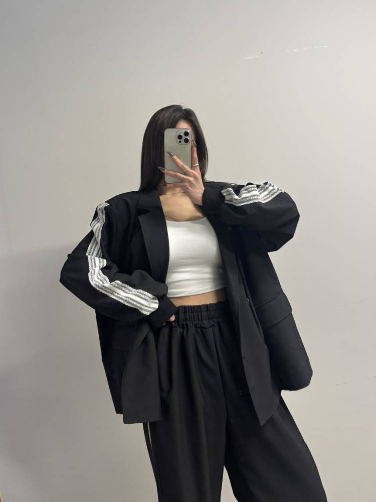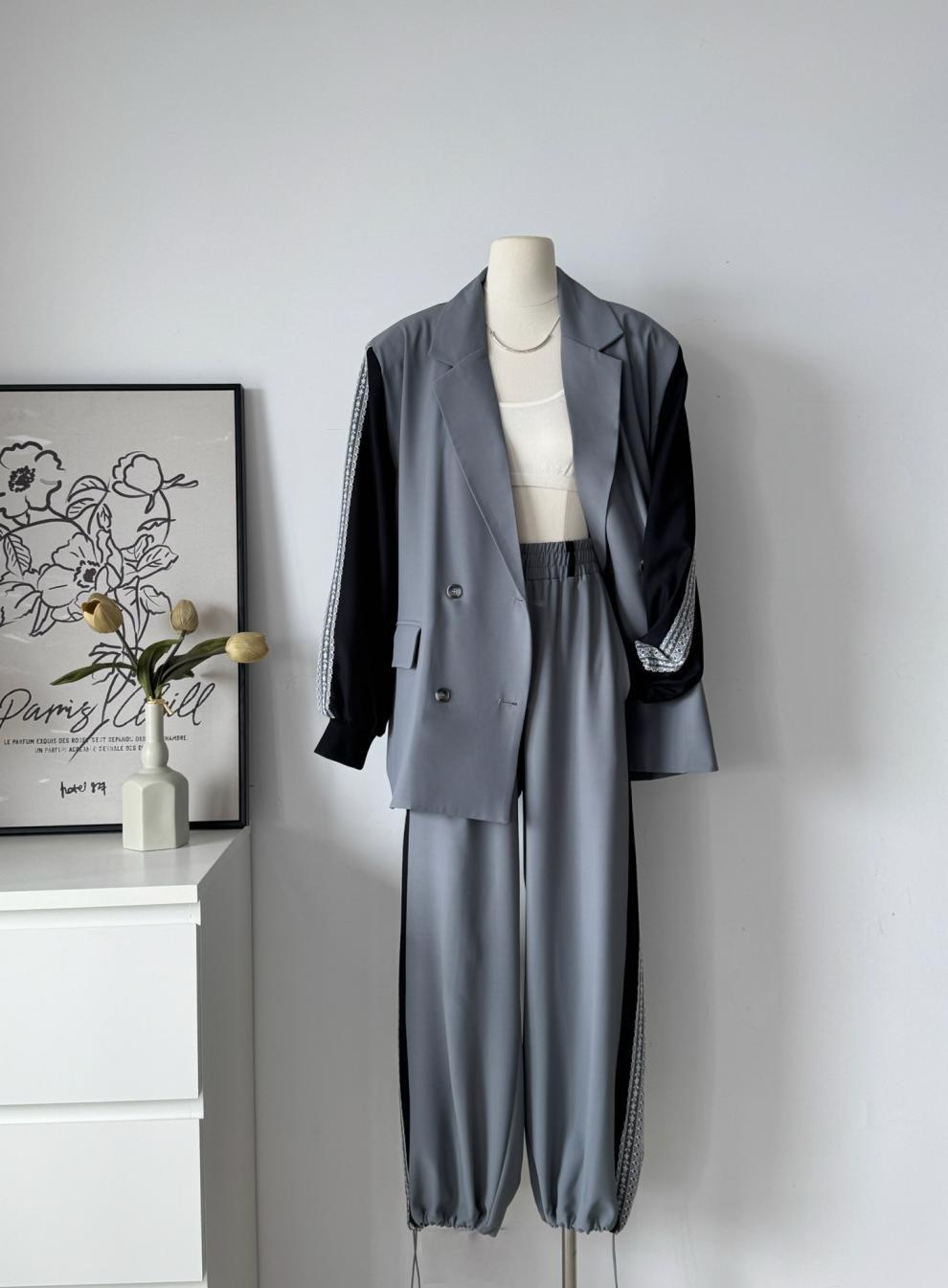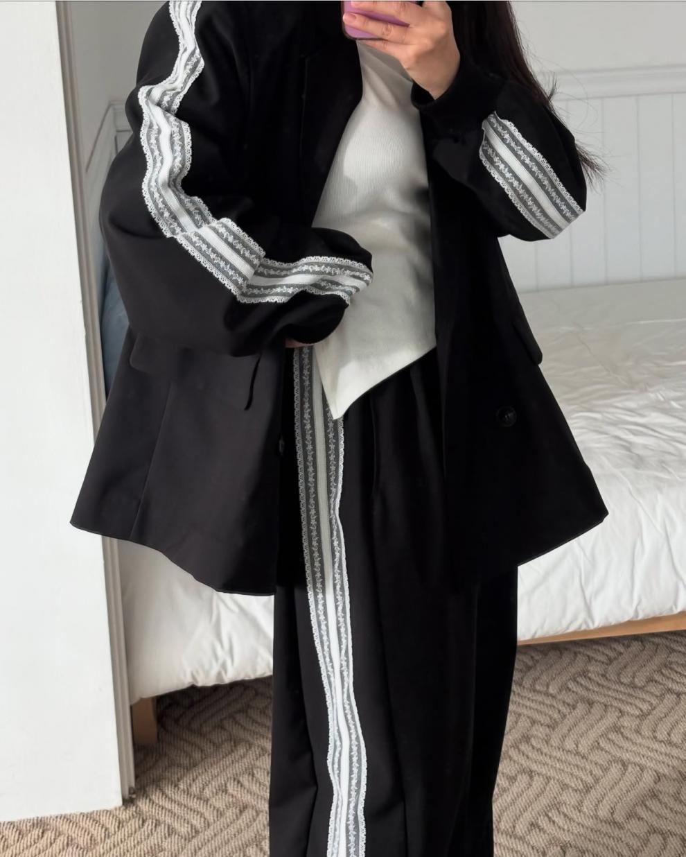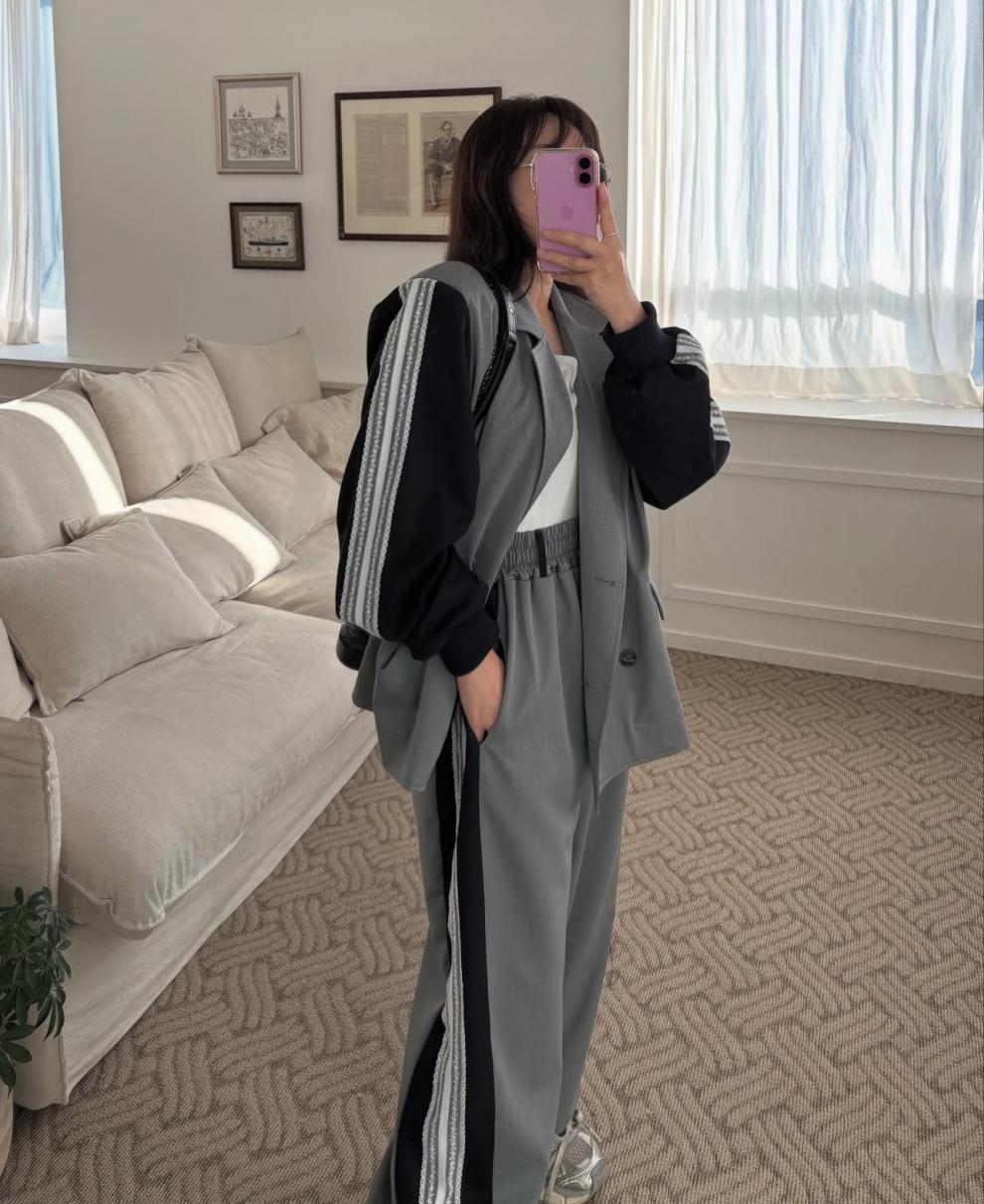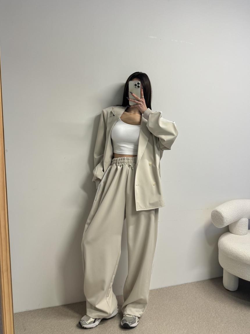 Traje Blazer de Moda Coreana de Alta Gama para Mujer Estilo Deportivo + Pantalones de Pierna Ancha