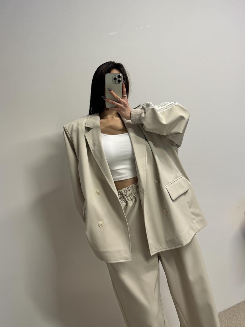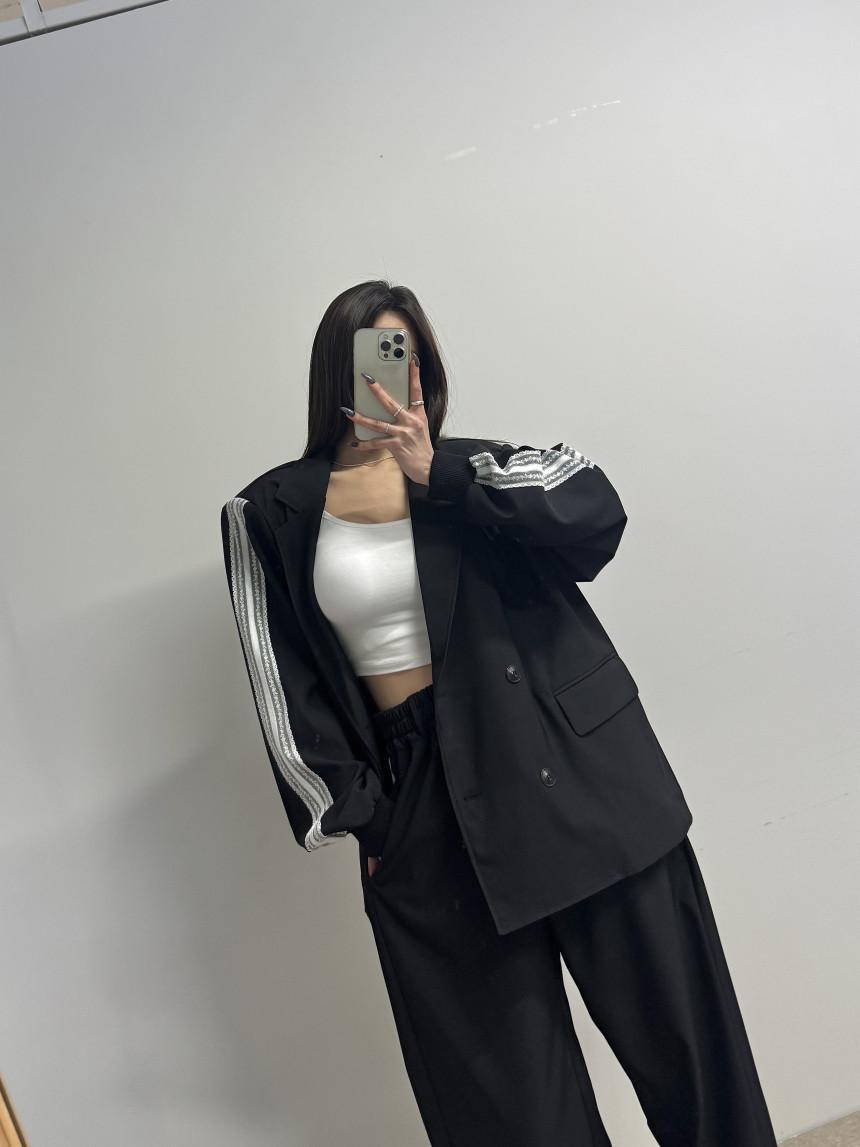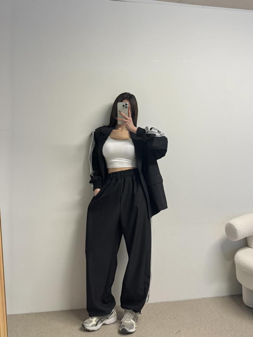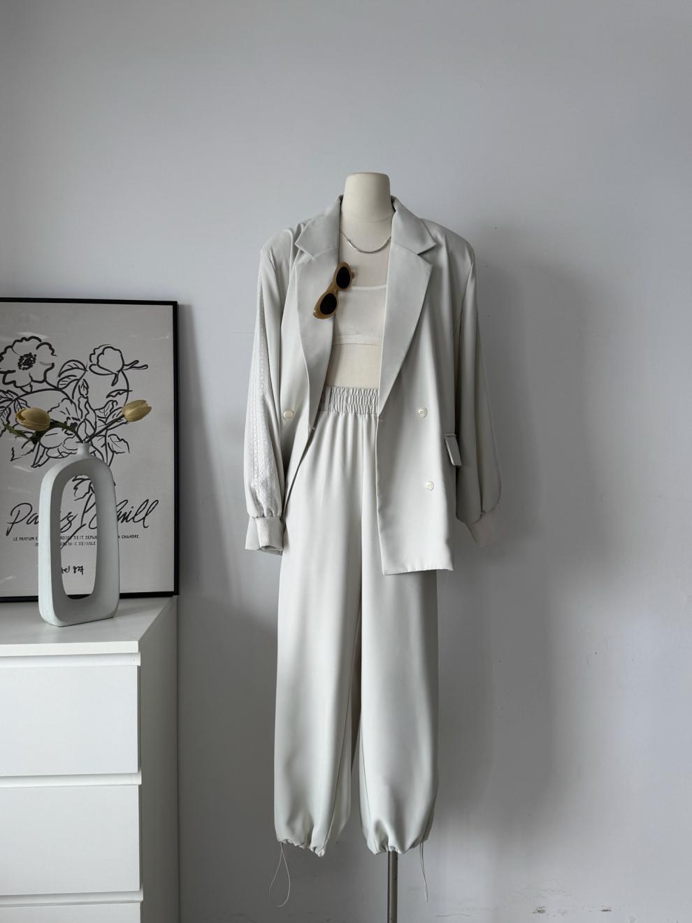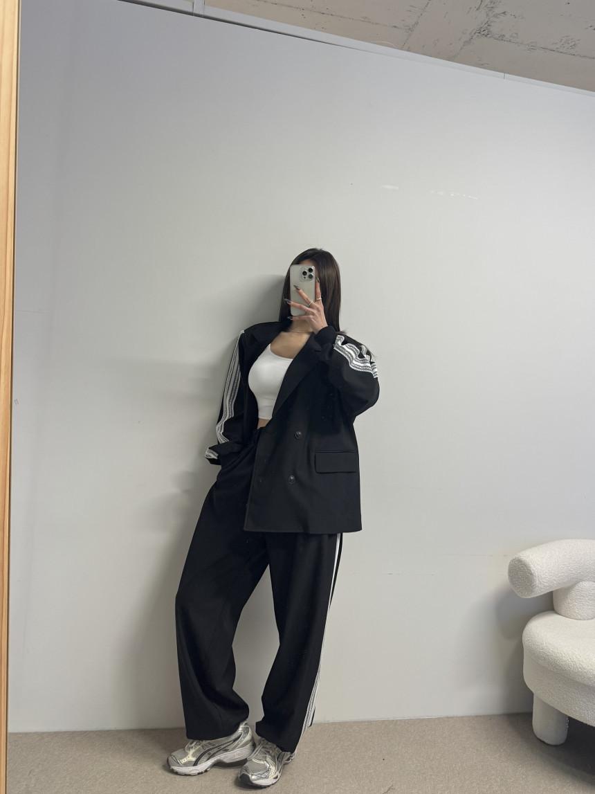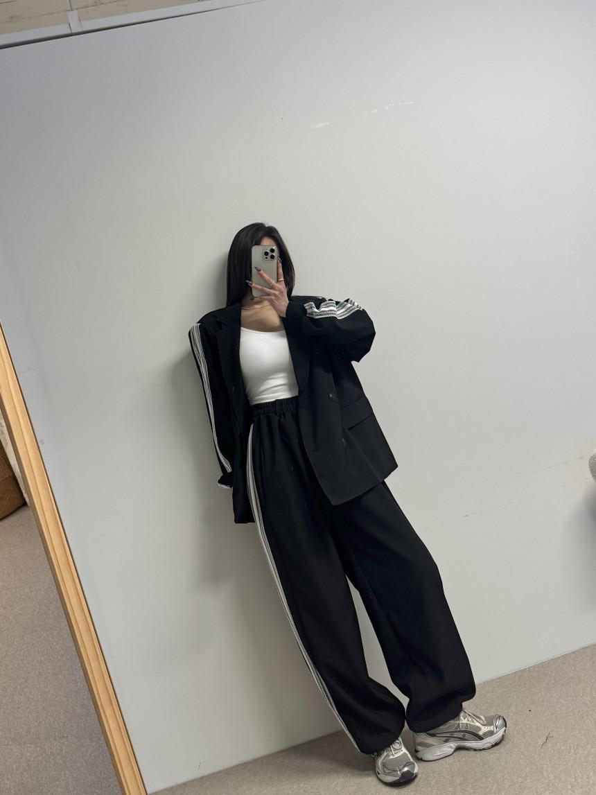 Traje Blazer de Moda Coreana de Alta Gama para Mujer Estilo Deportivo + Pantalones de Pierna Ancha