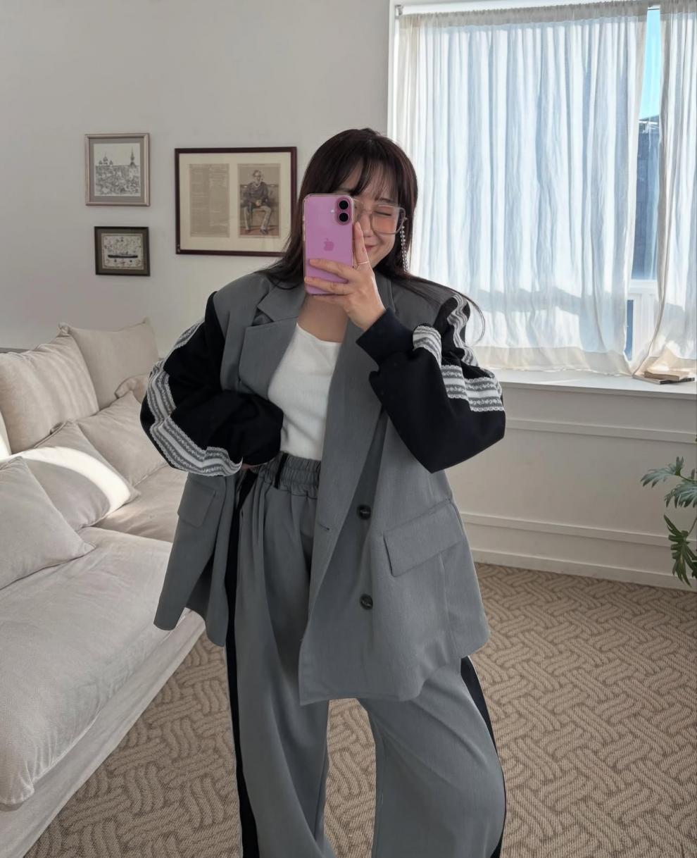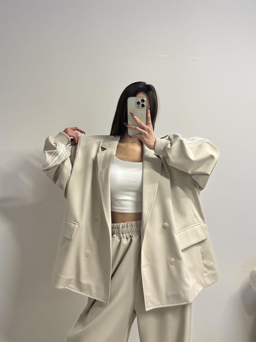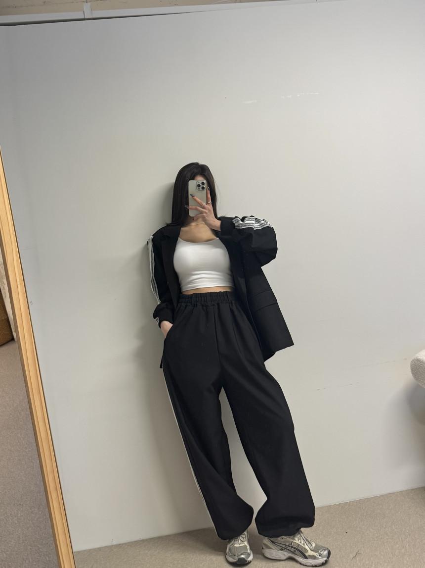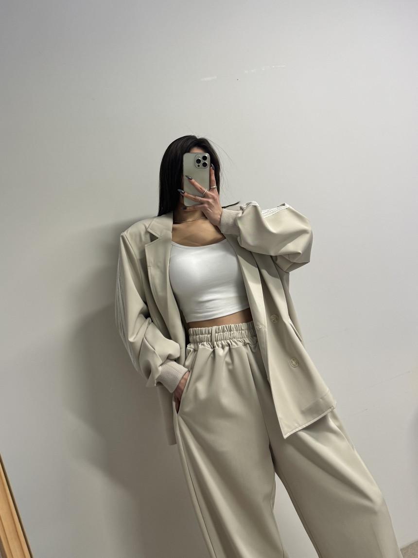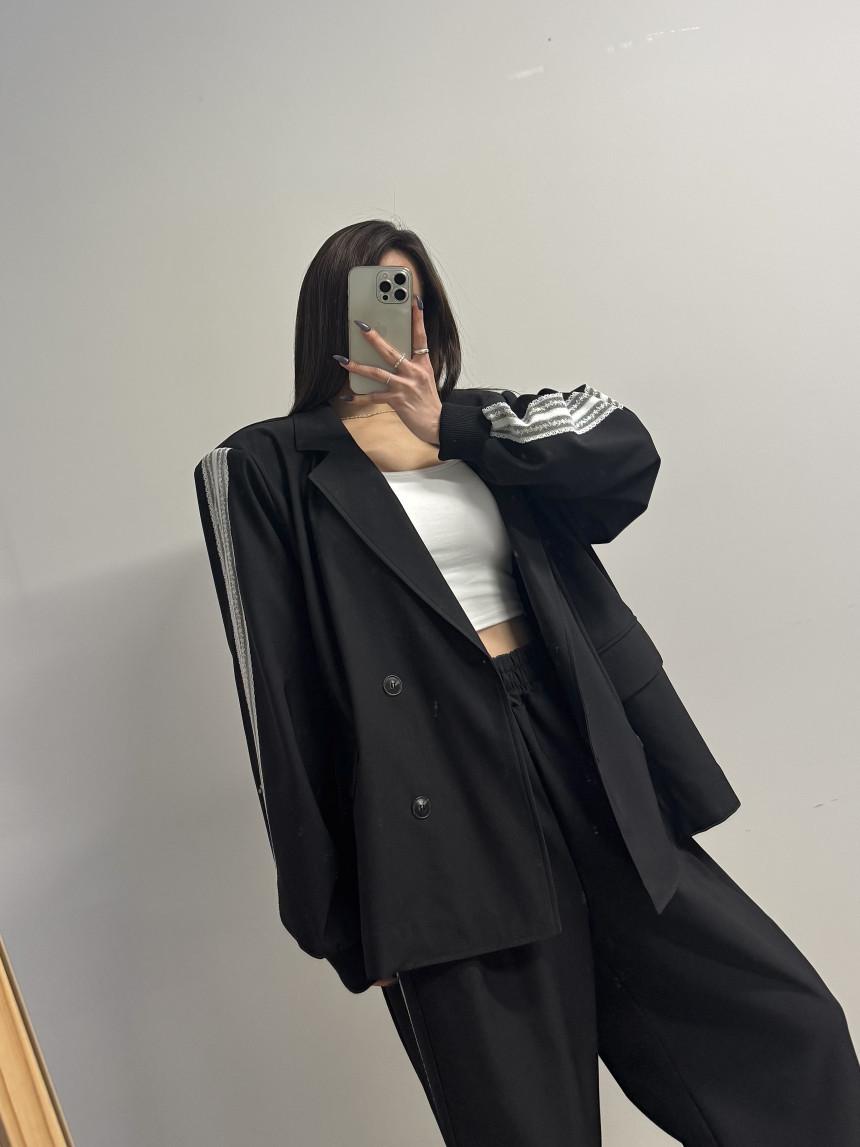 Traje Blazer de Moda Coreana de Alta Gama para Mujer Estilo Deportivo + Pantalones de Pierna Ancha