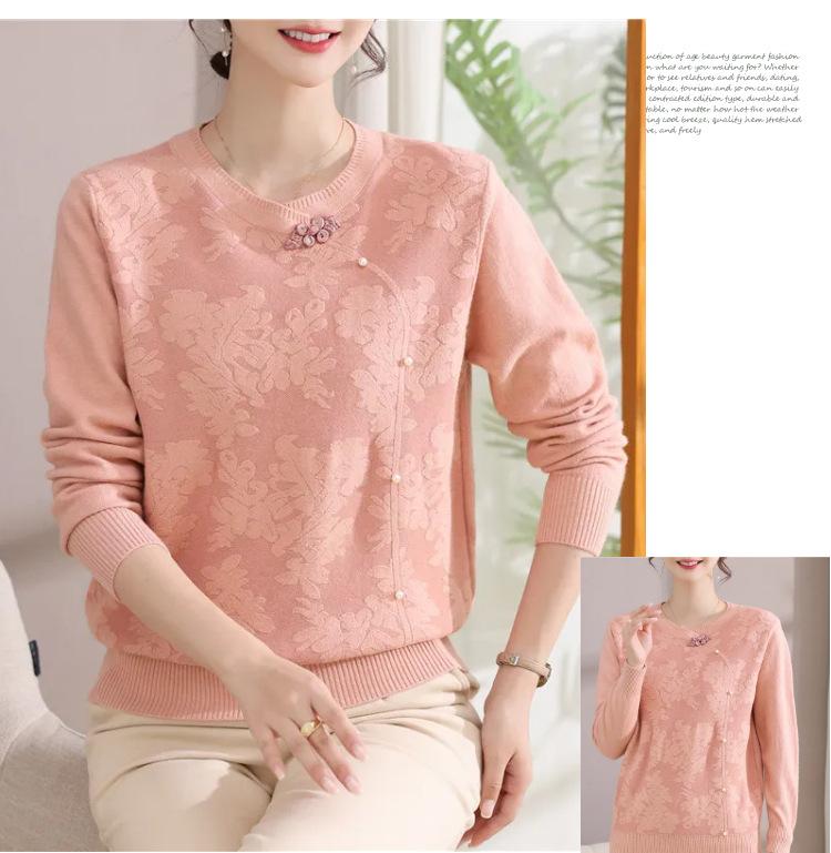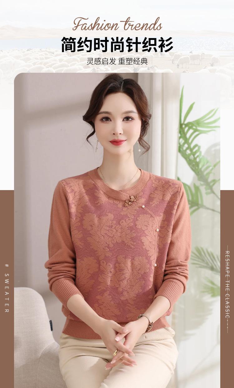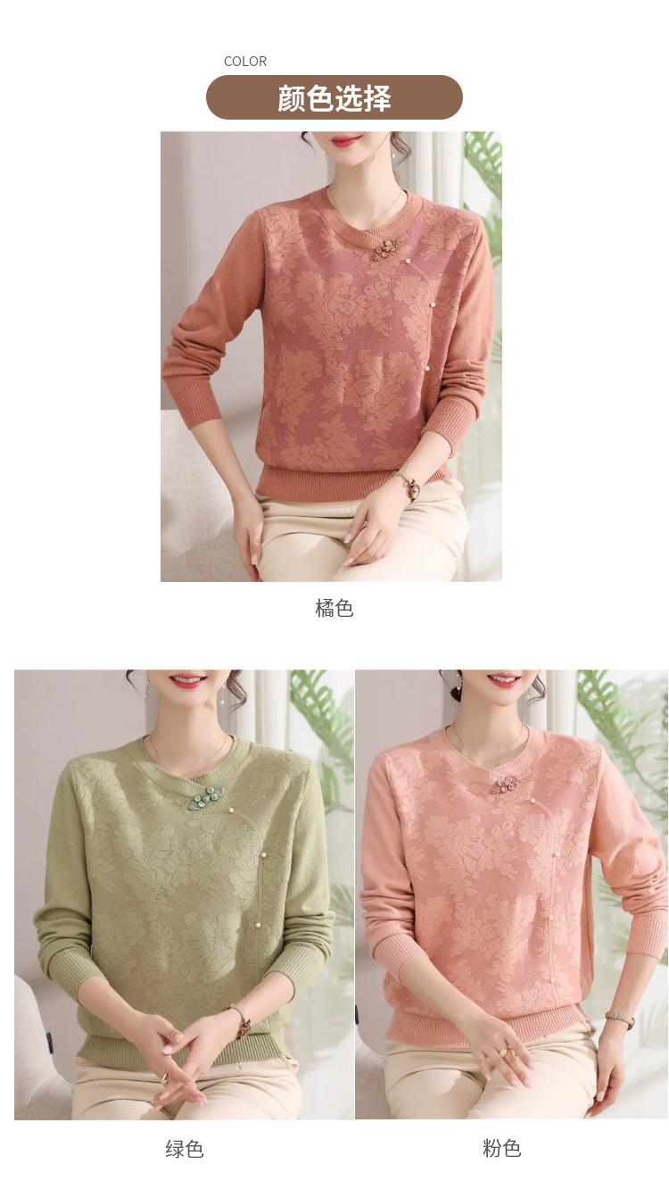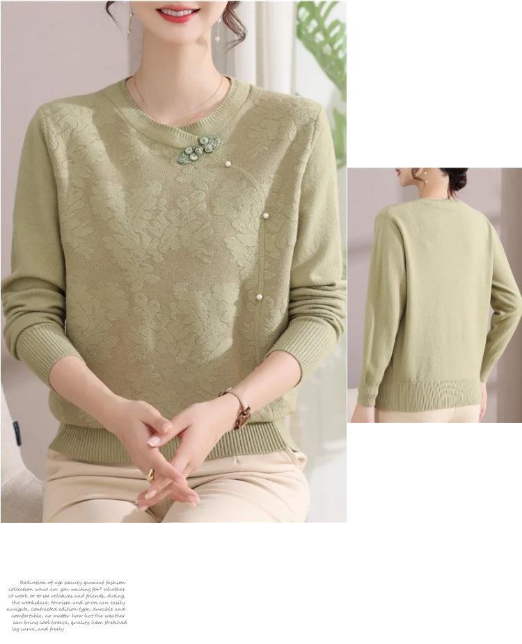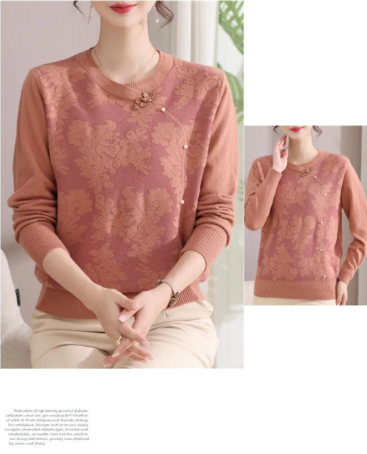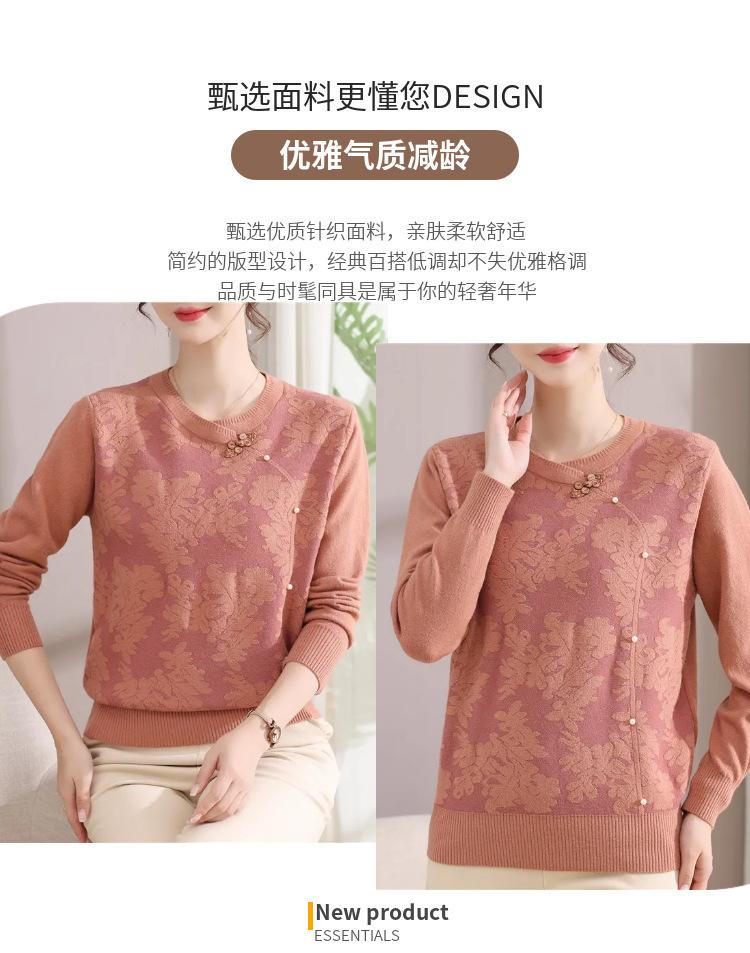 Suéter de Otoño para Mamá a la Moda Top Elegante 2025 Ropa Nueva para Mujeres de Mediana Edad Nuevo Estilo Chino Camiseta Base Venta Física al Mayoreo