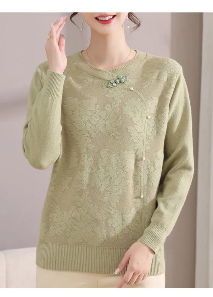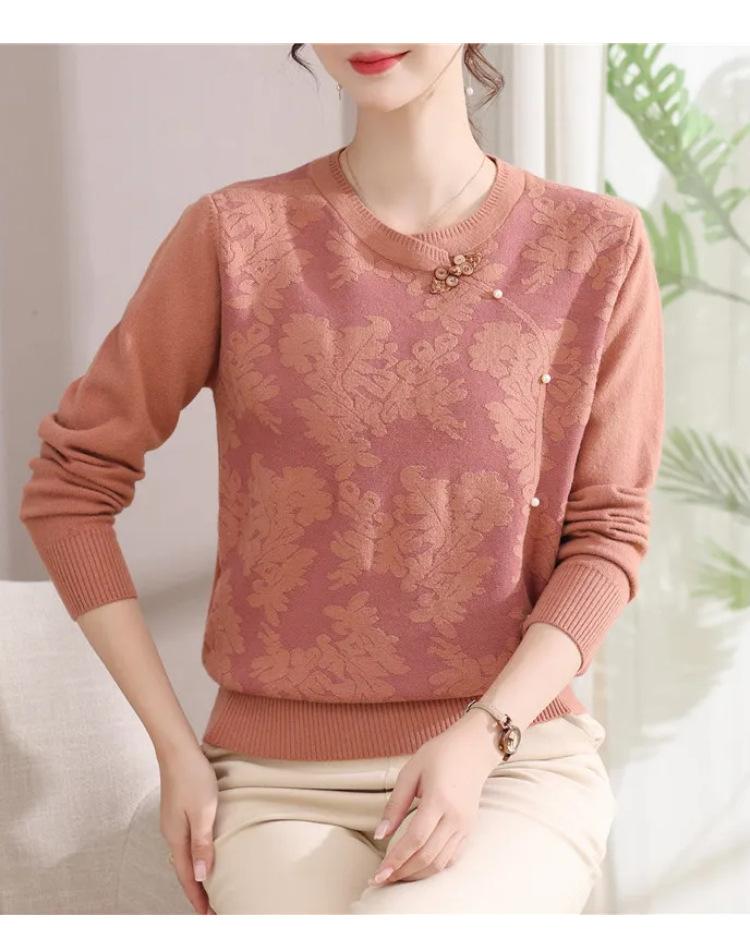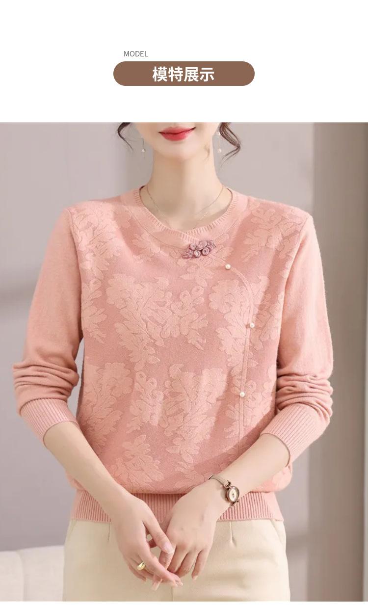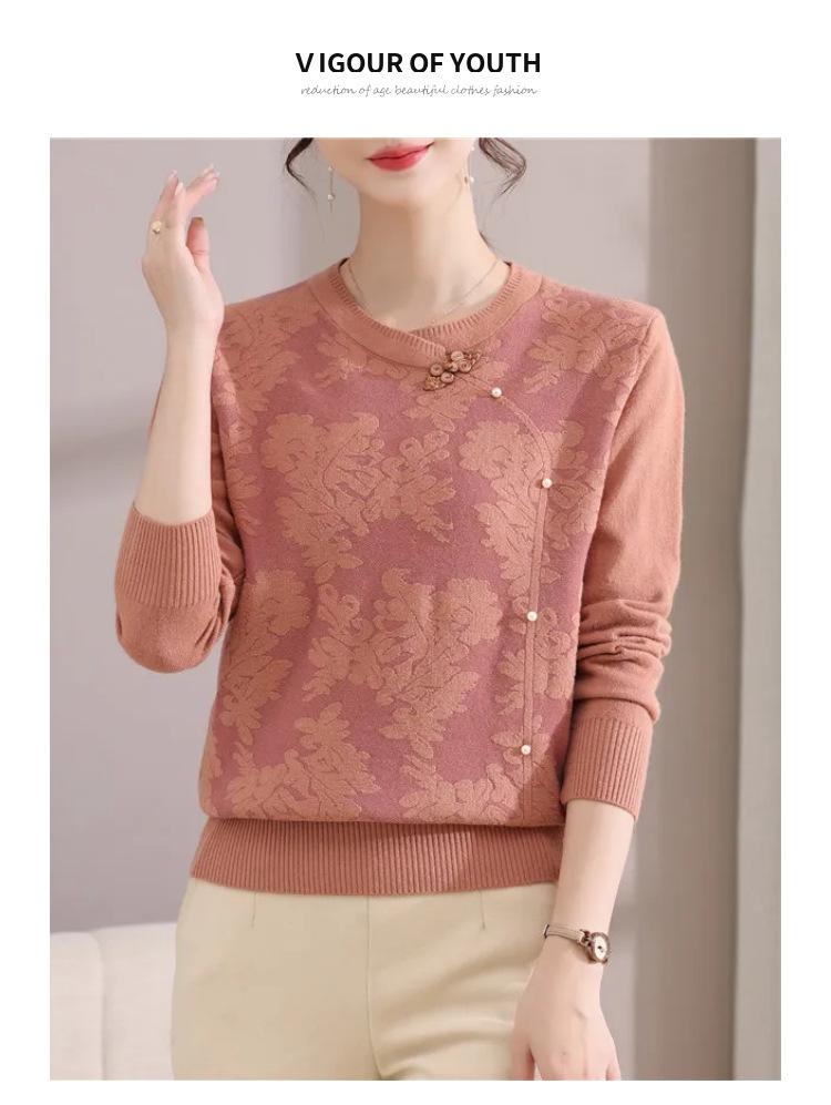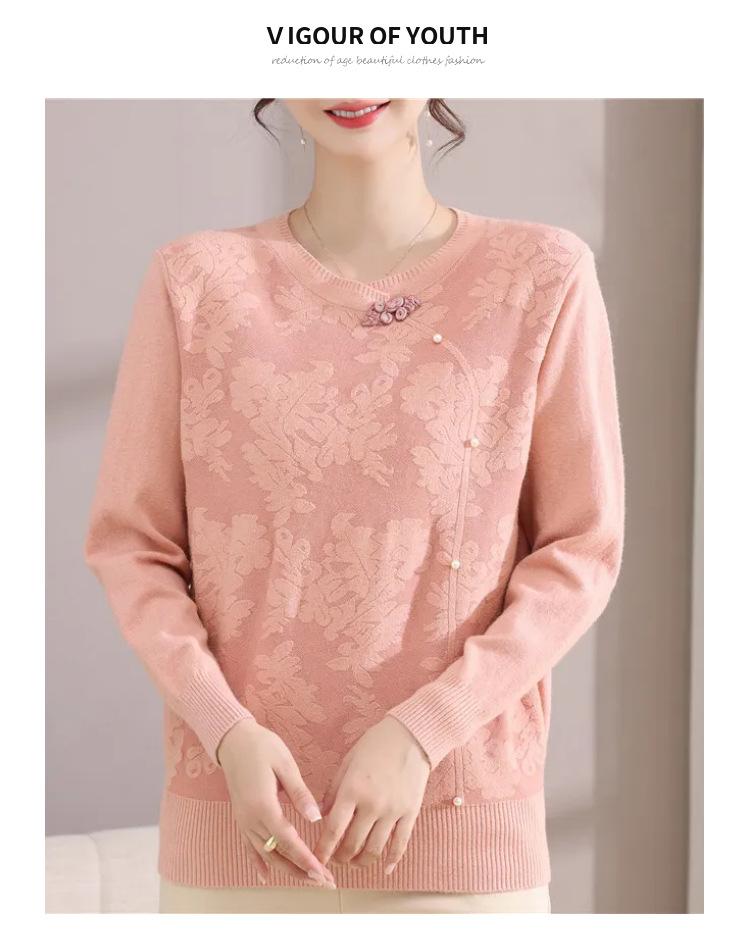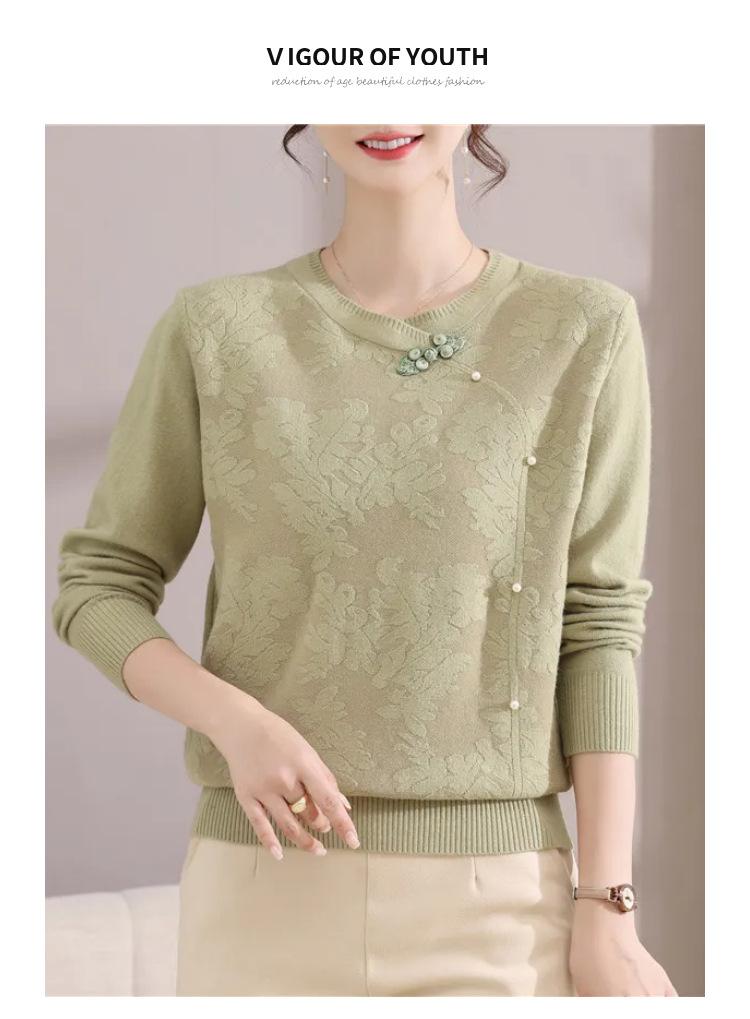 Suéter de Otoño para Mamá a la Moda Top Elegante 2025 Ropa Nueva para Mujeres de Mediana Edad Nuevo Estilo Chino Camiseta Base Venta Física al Mayoreo