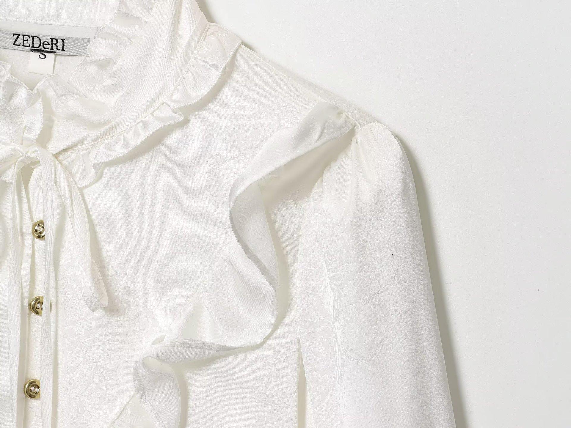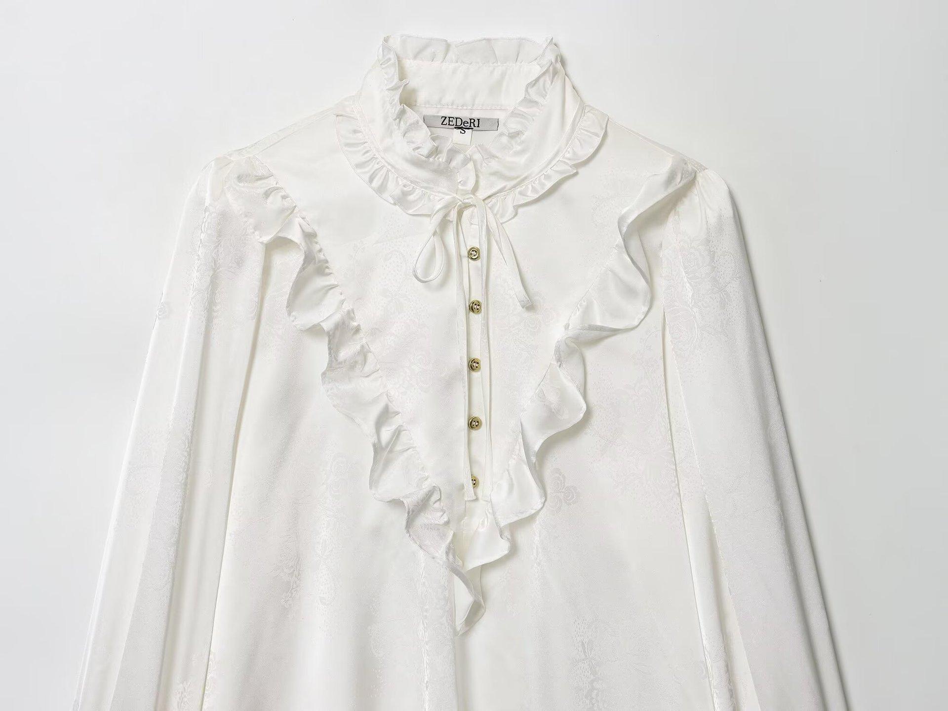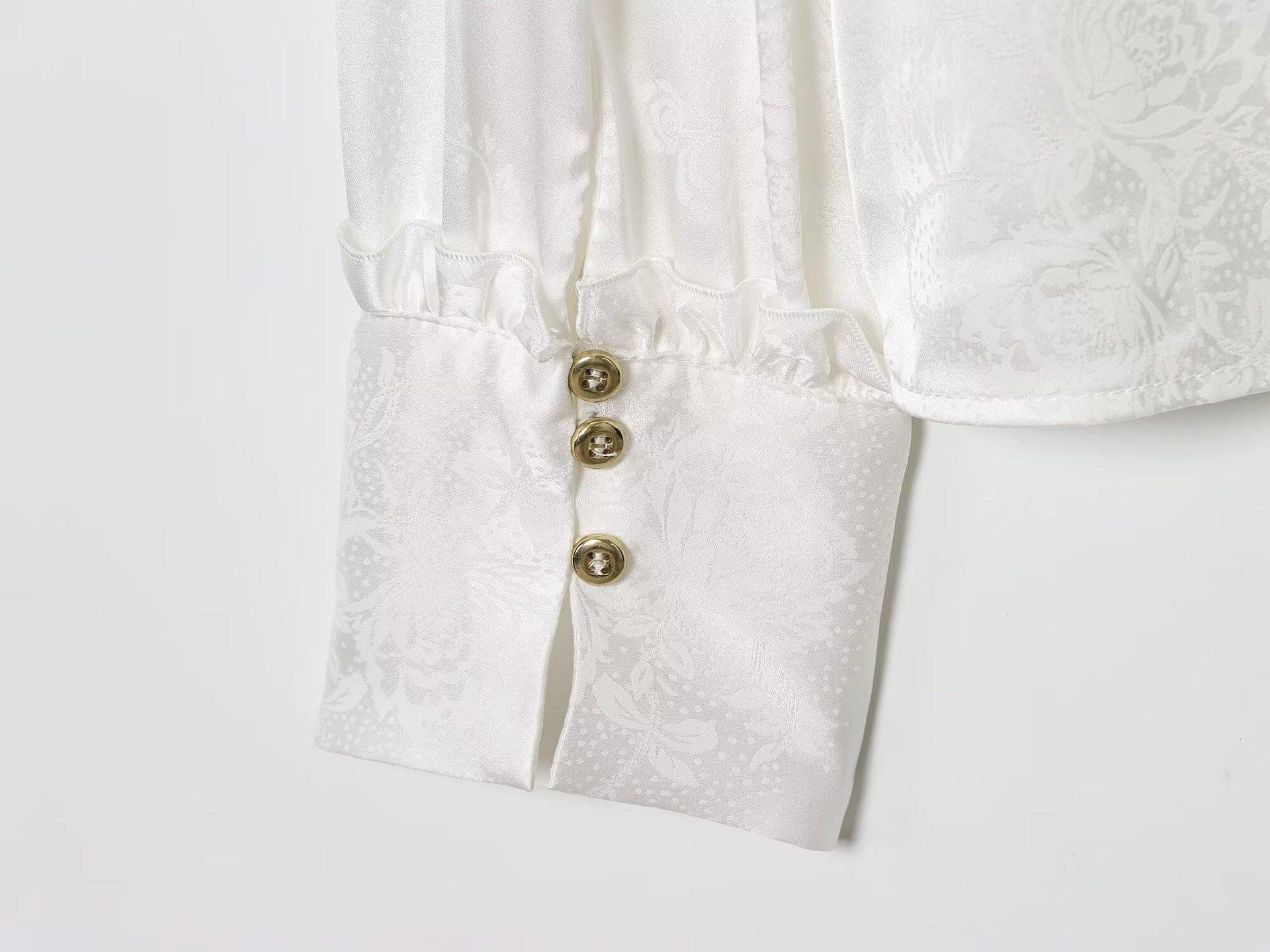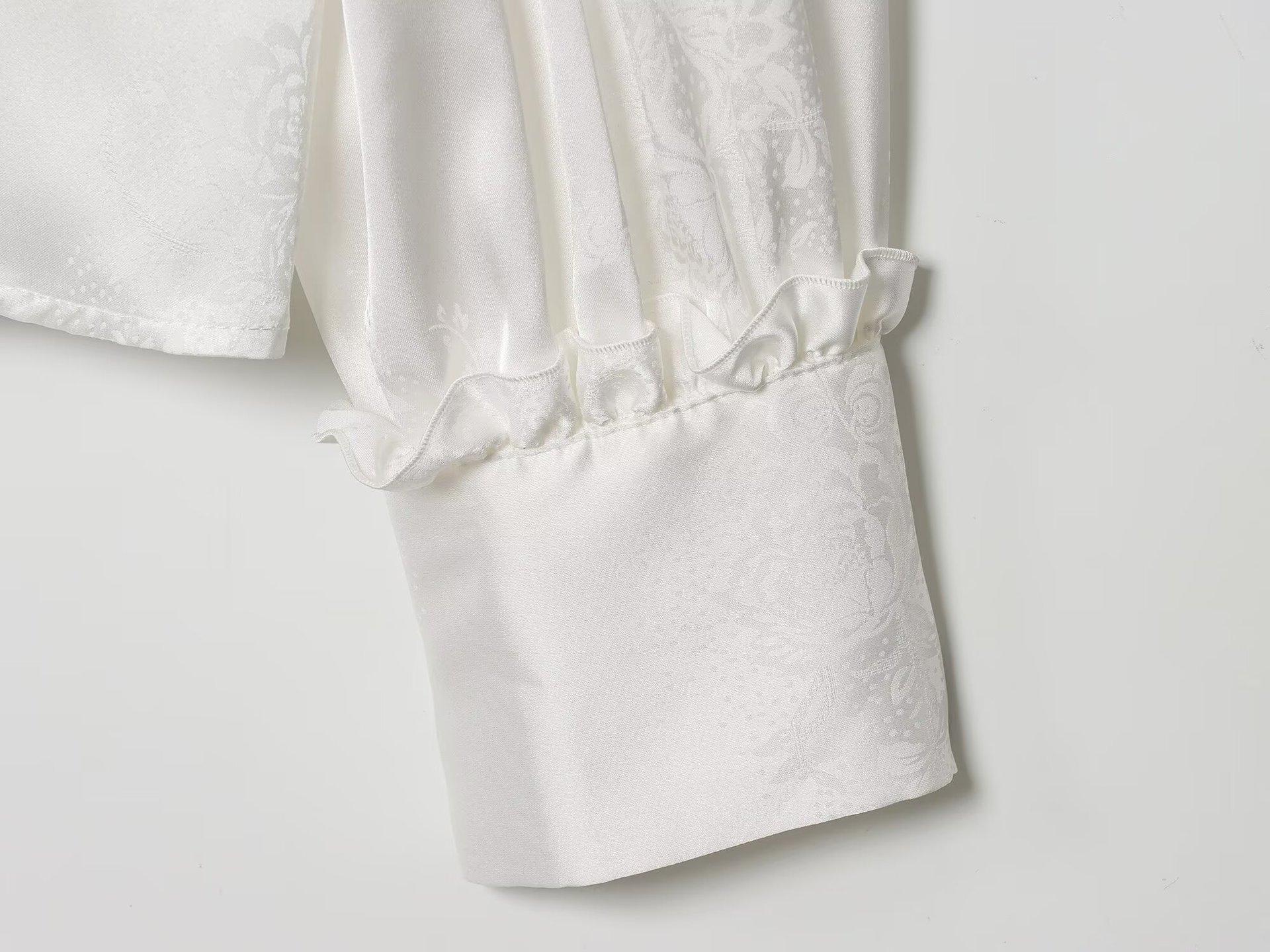 Moda femenina europea y americana transfronteriza AliExpress más vendido camisa elegante casual con textura jacquard de satén de seda