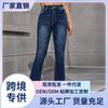 Europeo y Americano Transfronterizo 2024 Venta Directa de Fábrica de Amazon Nuevo Pantalón Casual de Pierna Recta Jeans Lavados de Cintura Alta Elásticos para Mujer