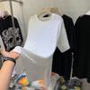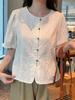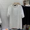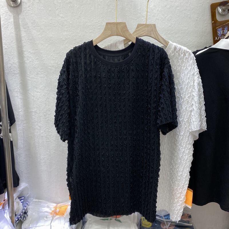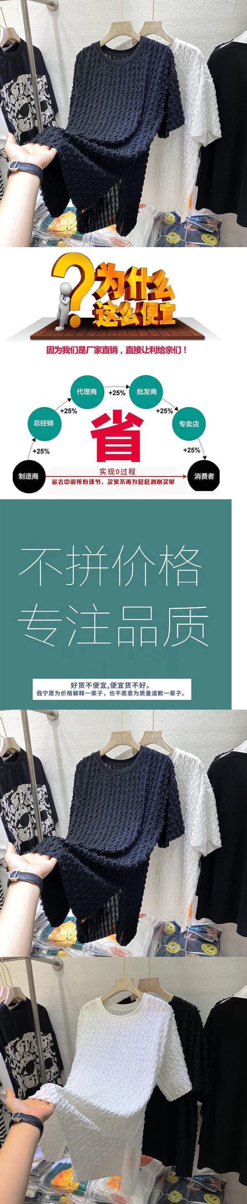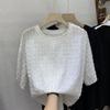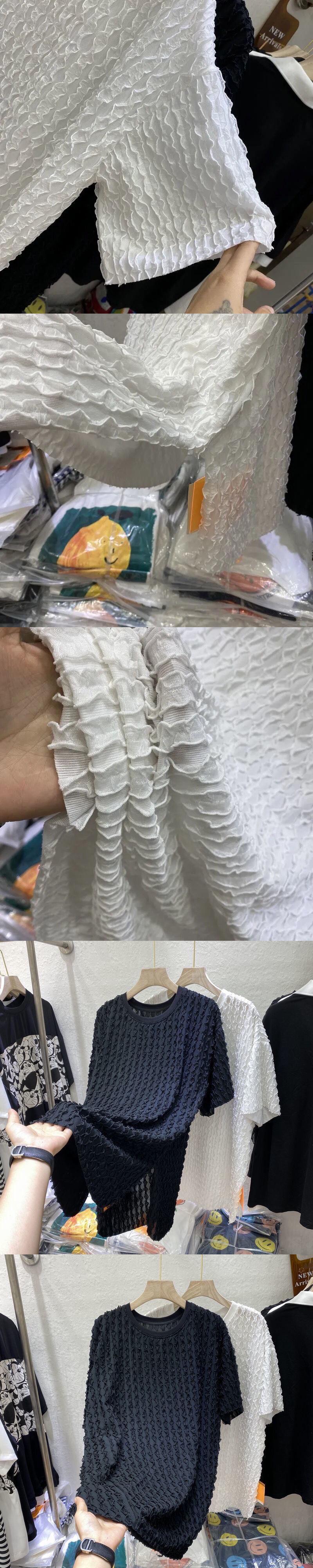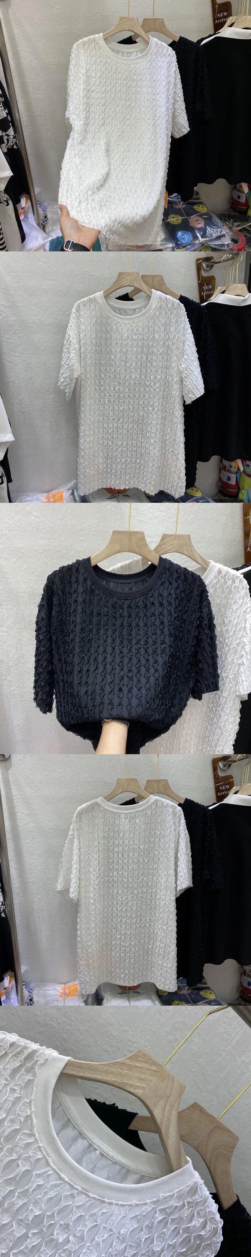 Verano Nueva Camisa de Gasa Plisada de Encaje para Mujer 2024 Manga Corta Holgada Versión Grande Look Adelgazante Camiseta de Largo Medio para Mujer