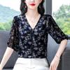 Verano Nueva Blusa de Encaje con Volantes de Chifón para Mujer 2021 Manga Corta Holgada Oversize Adelgazante Delgada Manga Media Camiseta