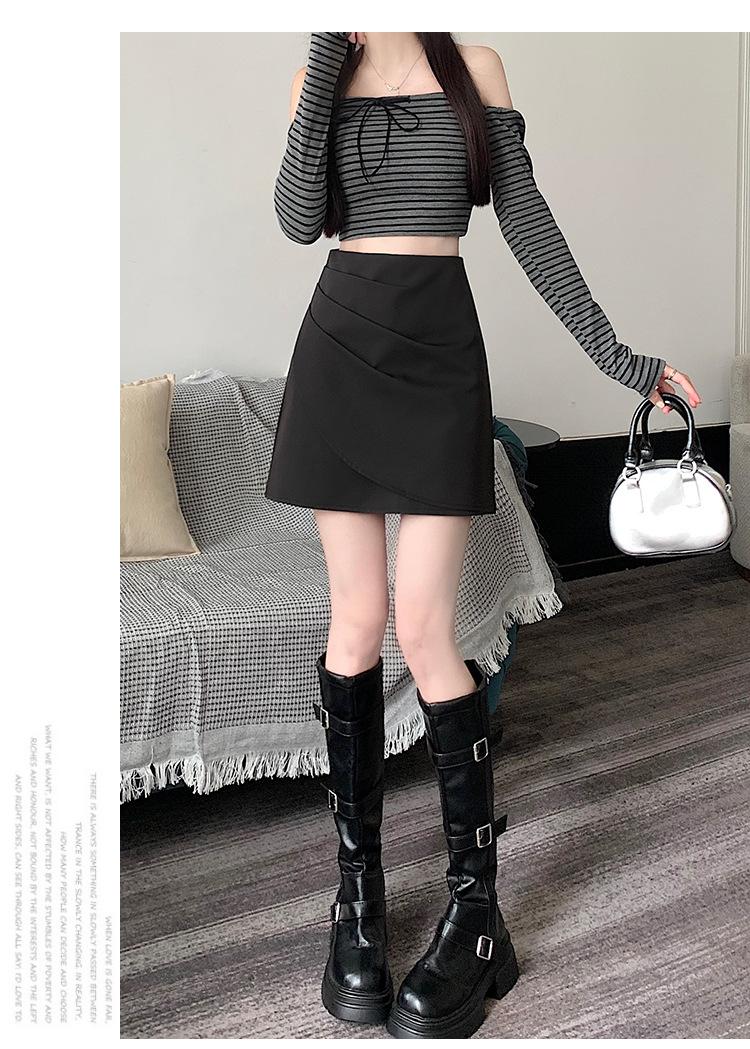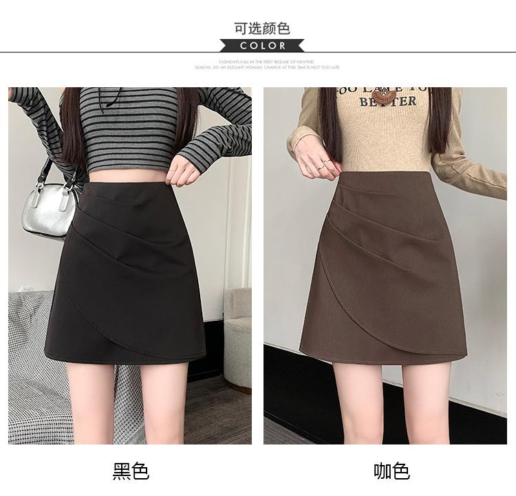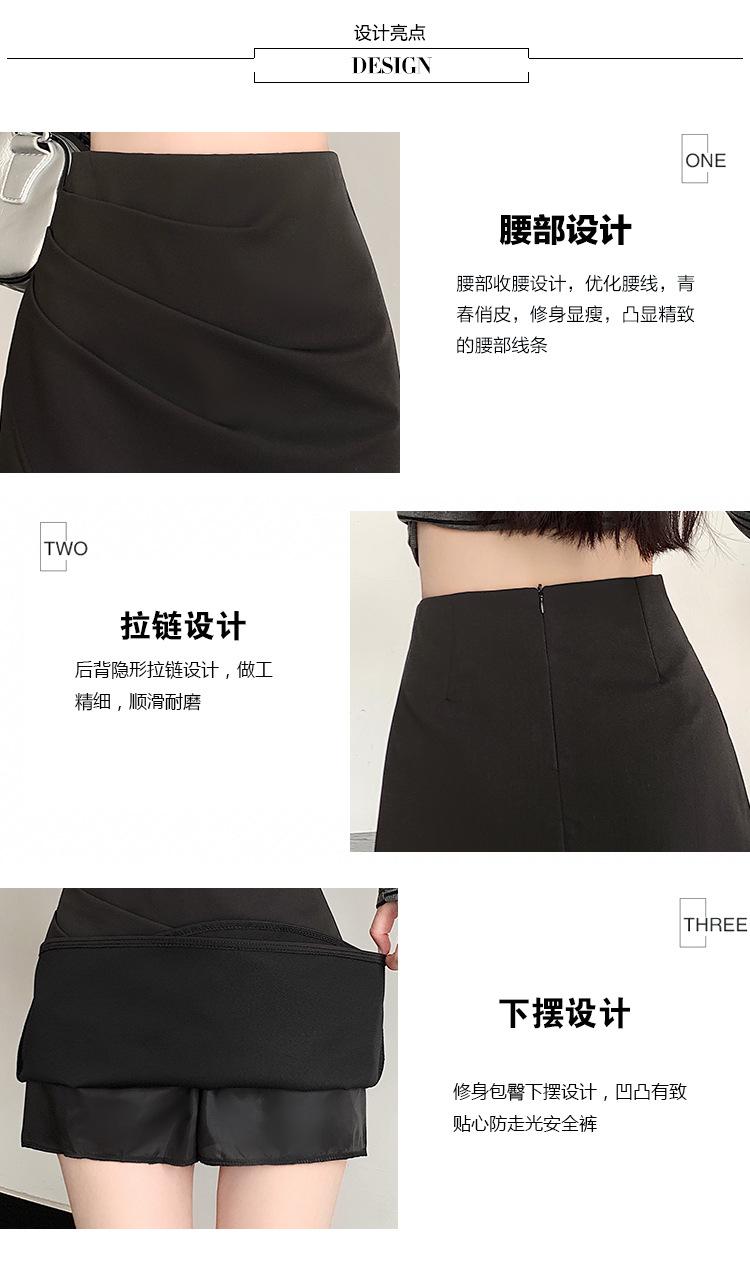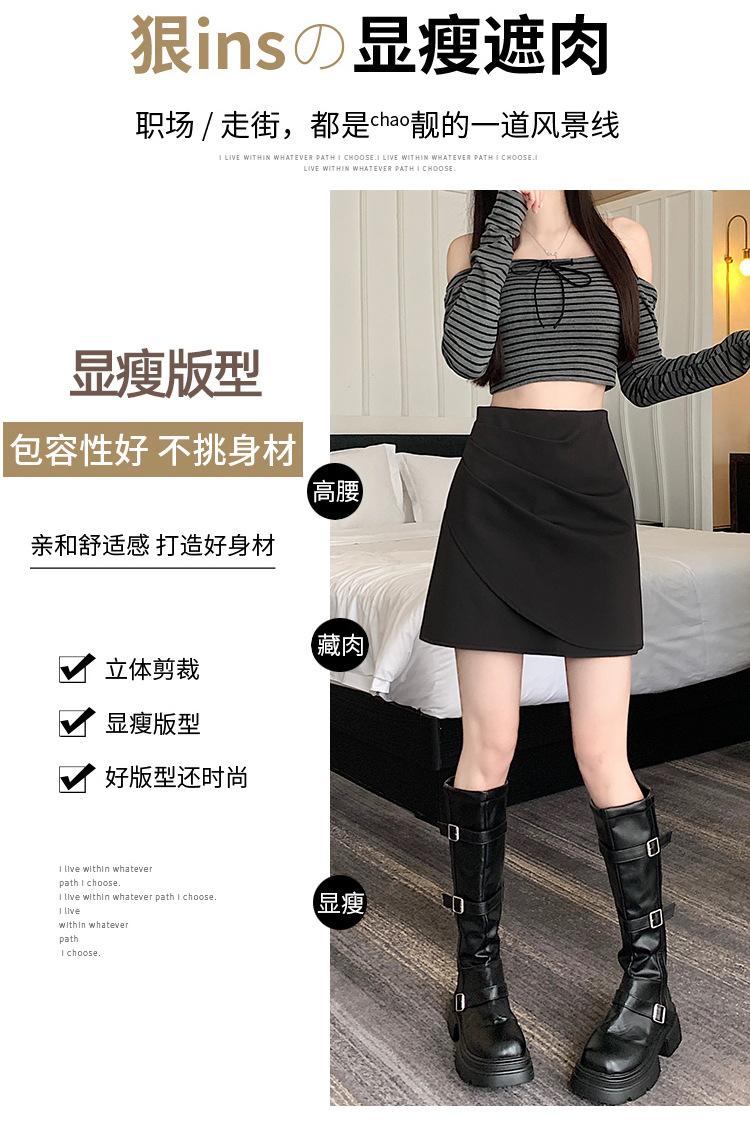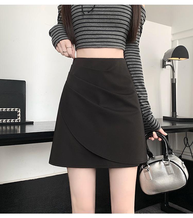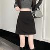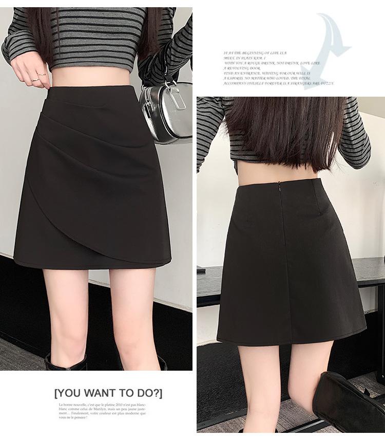 Foto real en stock otoño e invierno nuevo temperamento cintura alta sexy negro irregular adelgazante falda corta bordado mediana elástica