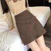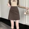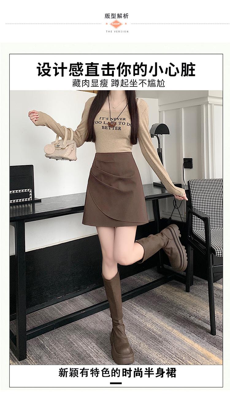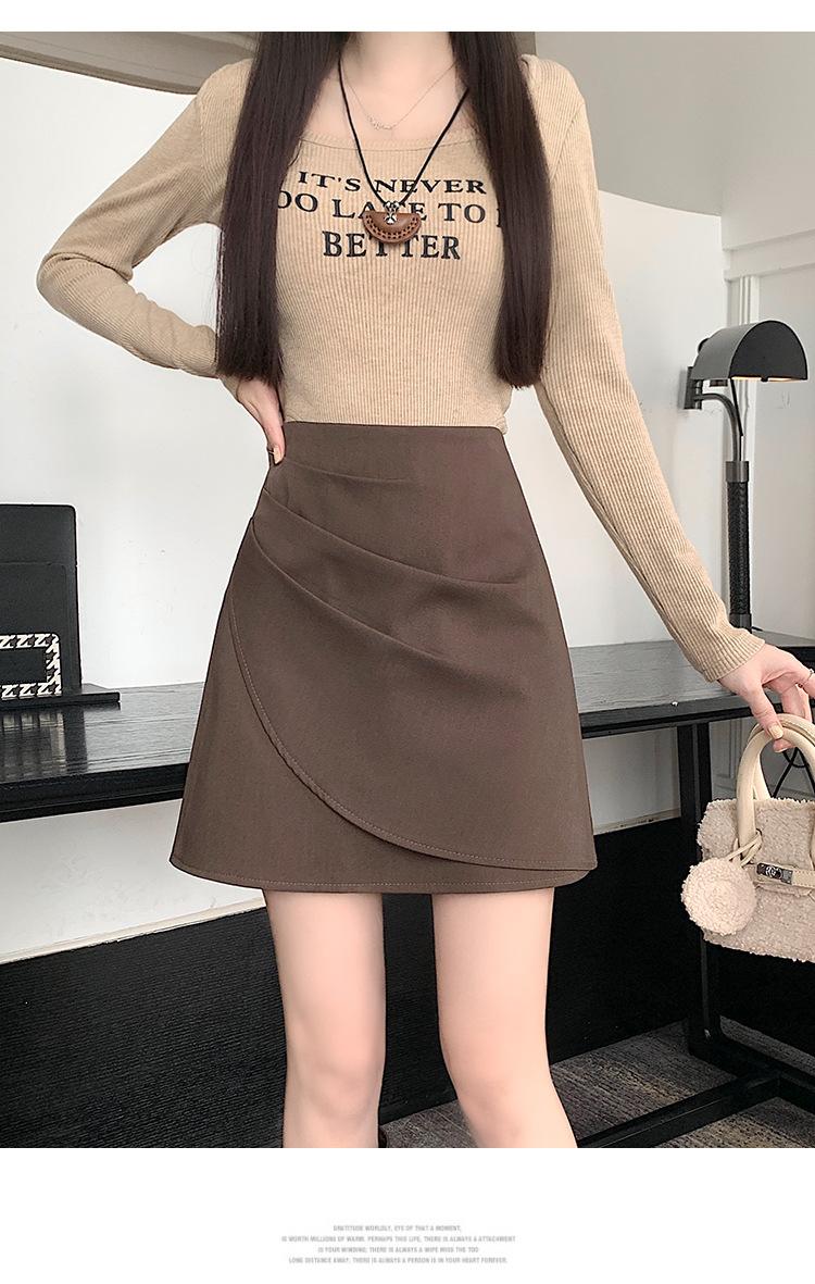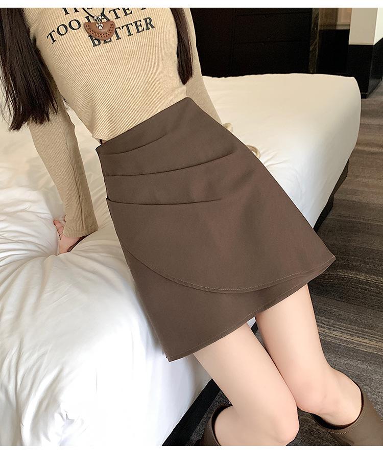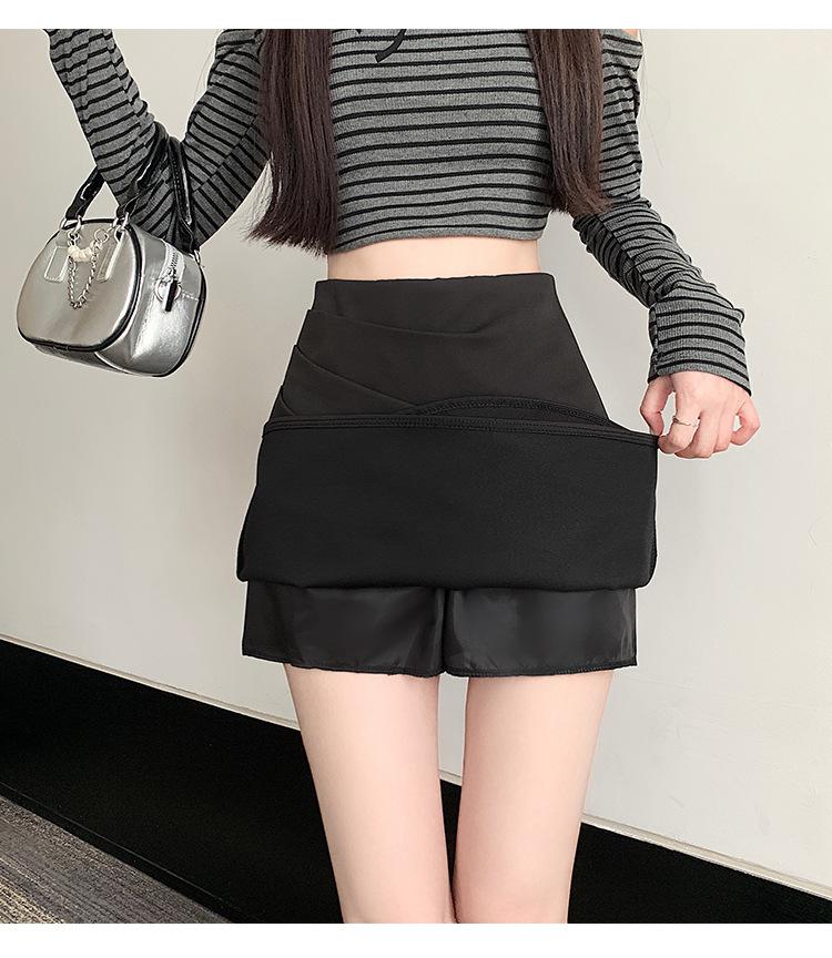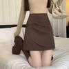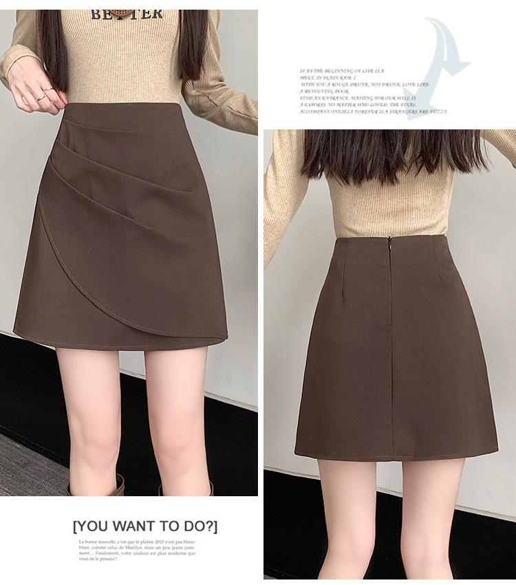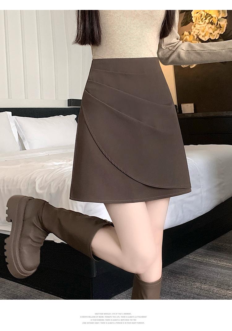 Foto real en stock otoño e invierno nuevo temperamento cintura alta sexy negro irregular adelgazante falda corta bordado mediana elástica