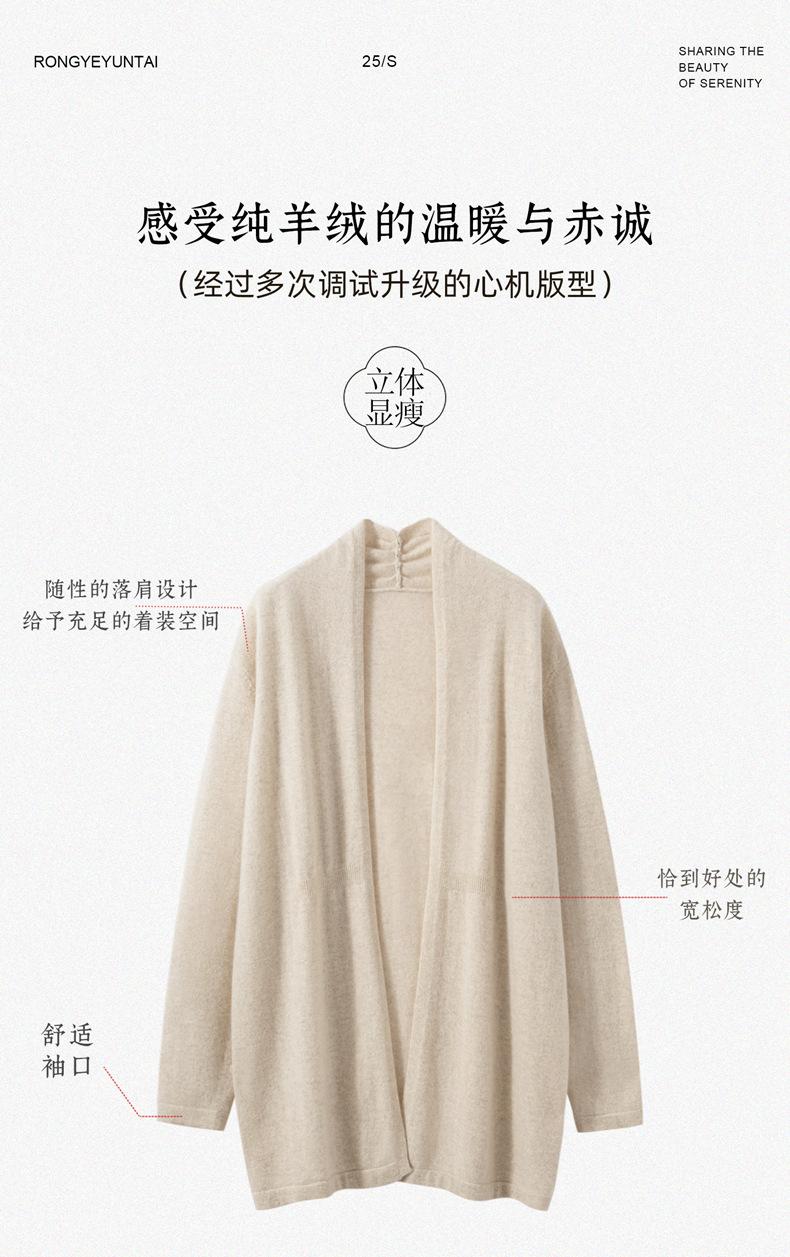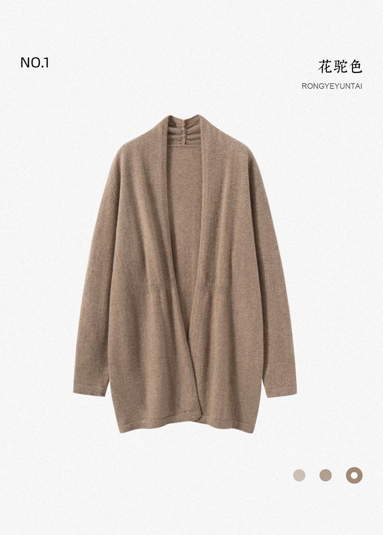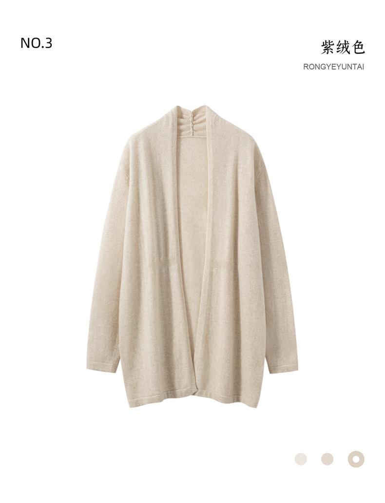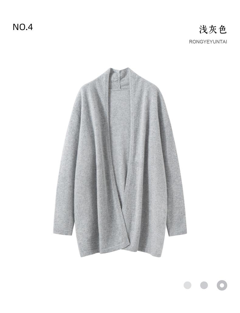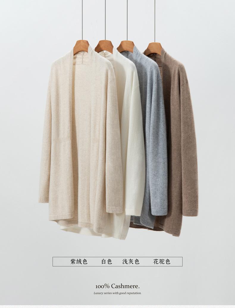 Cárdigan de Largo Medio para Mujer Otoño/Invierno 100% Cachemira Pura Cálido Hombro Caído Casual Moda Ropa Exterior