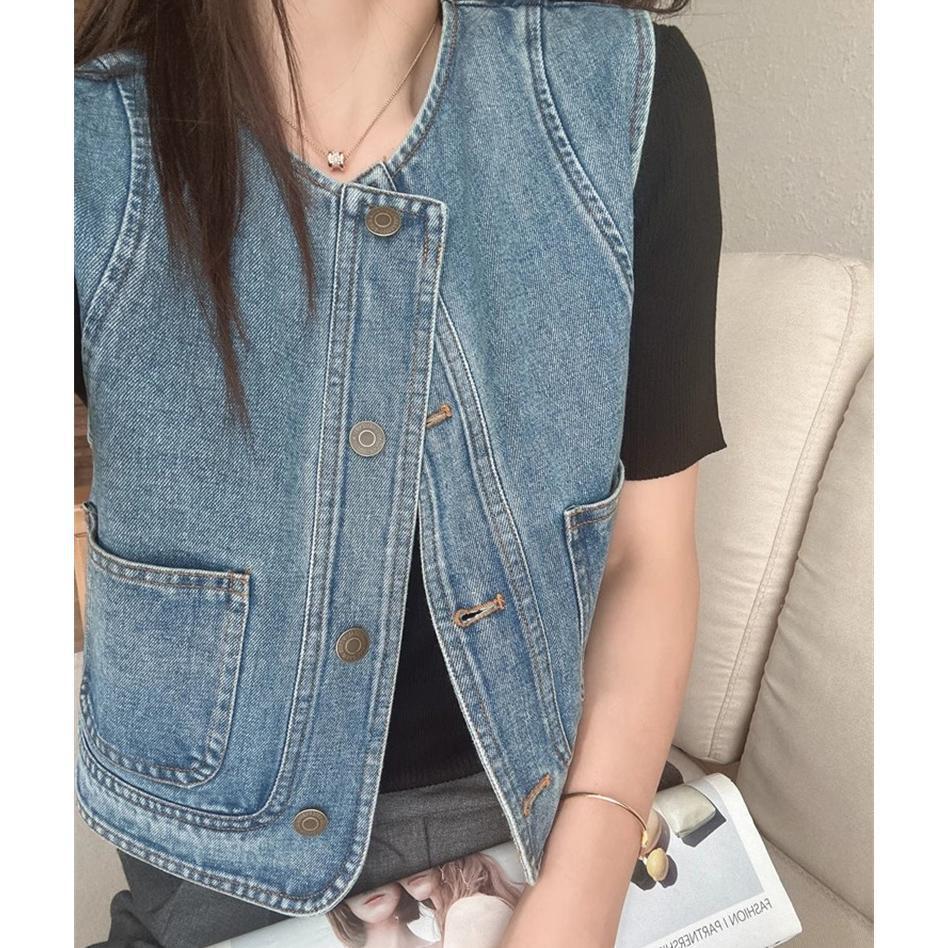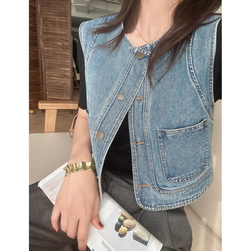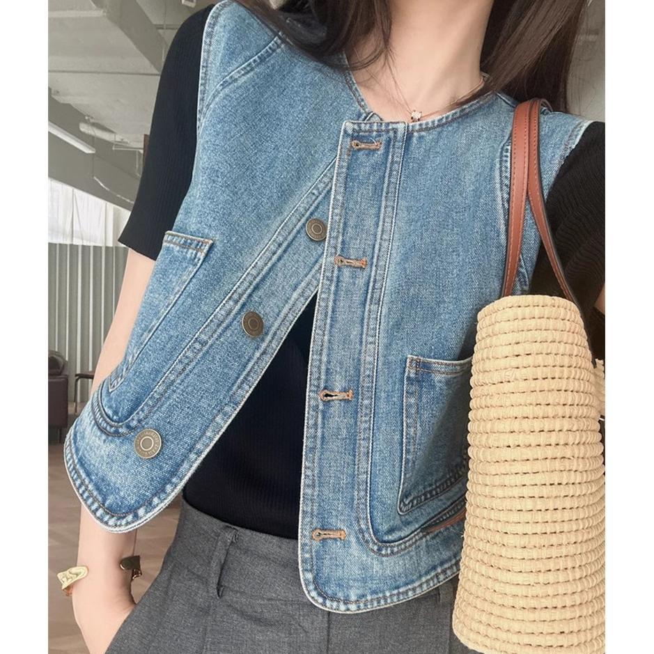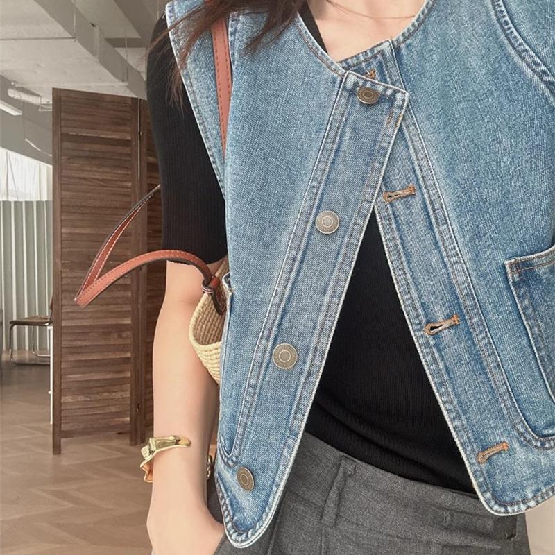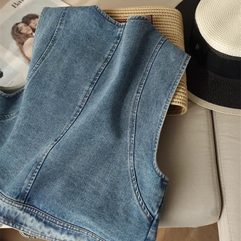 Chaleco vaquero de mezclilla de moda y versátil para mujer, nuevo para primavera y verano, estilo corto holgado, exterior petite sin mangas