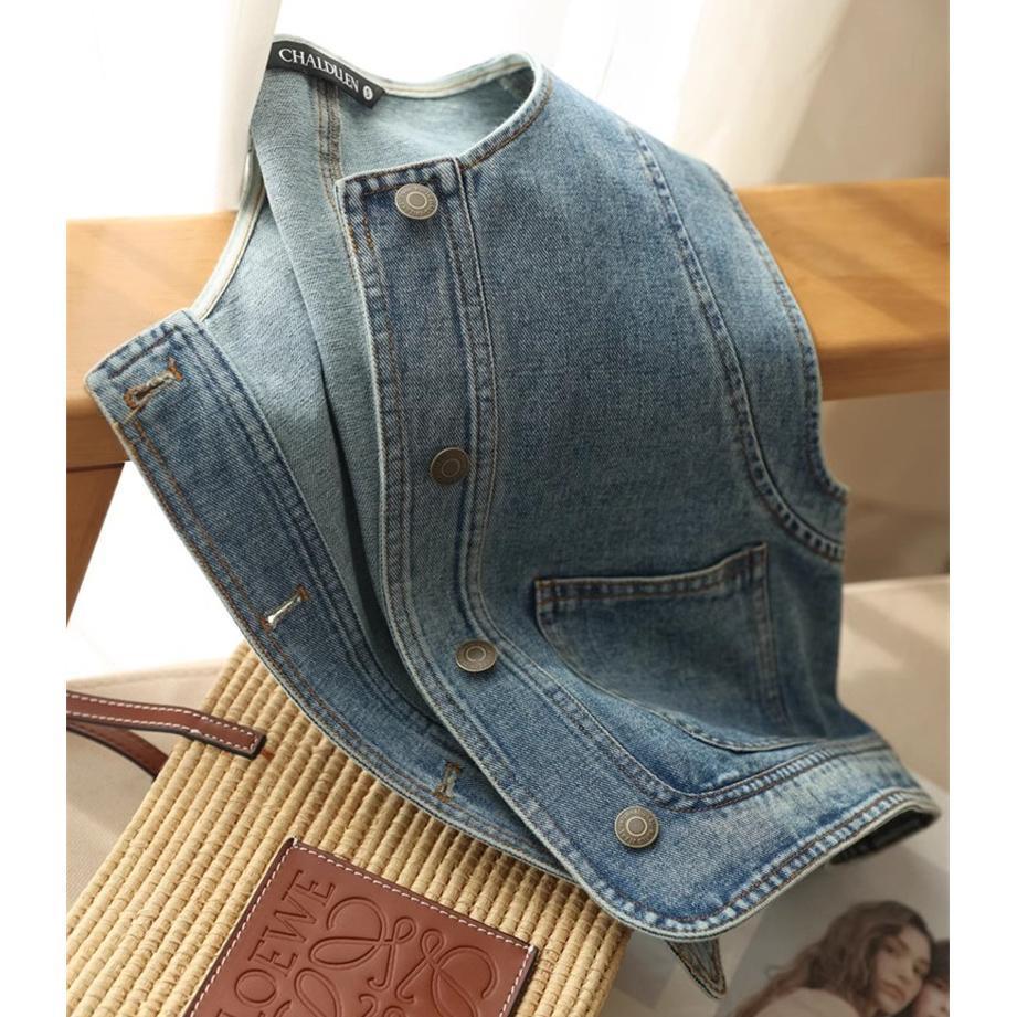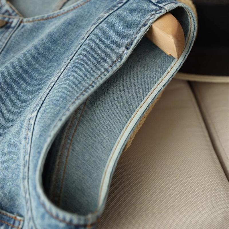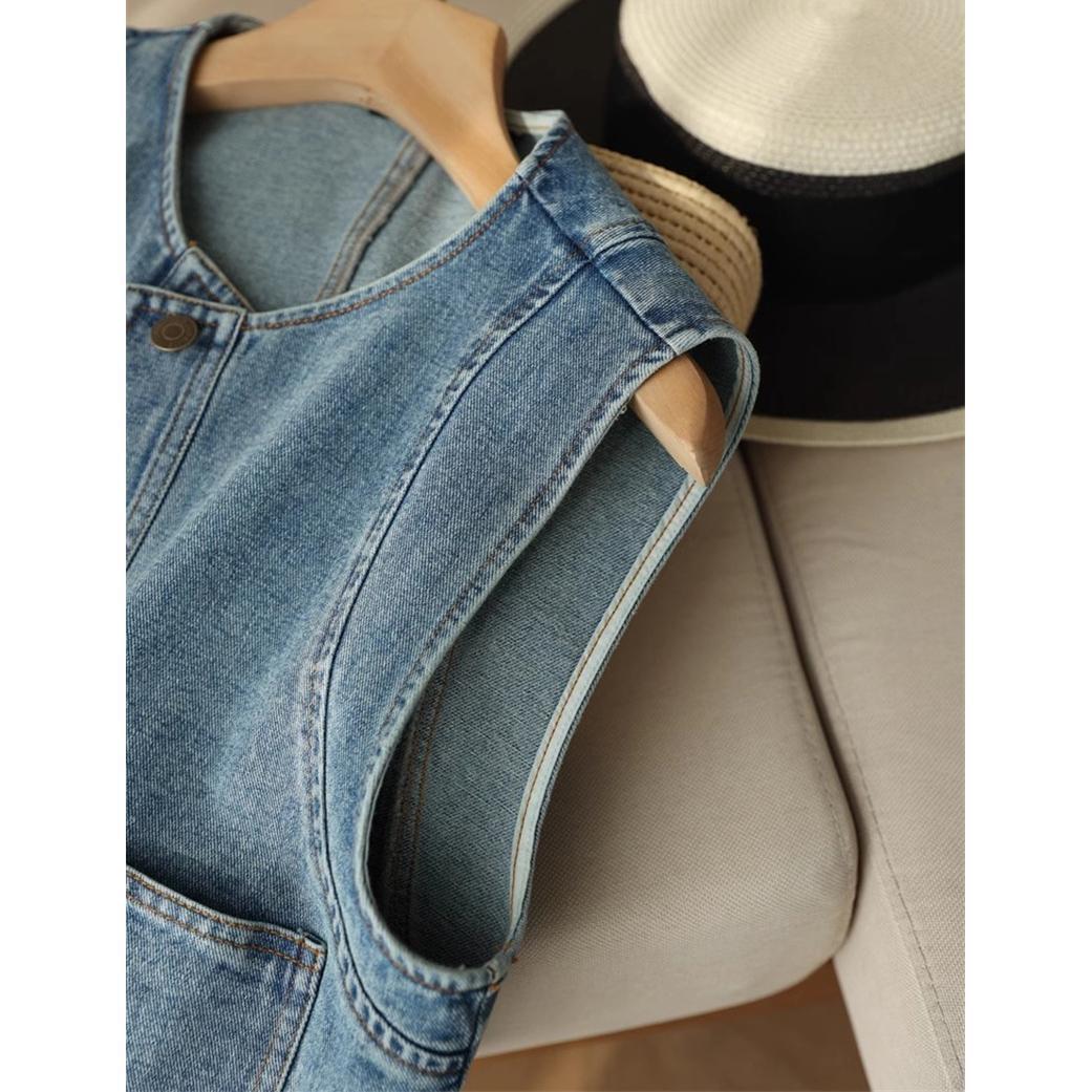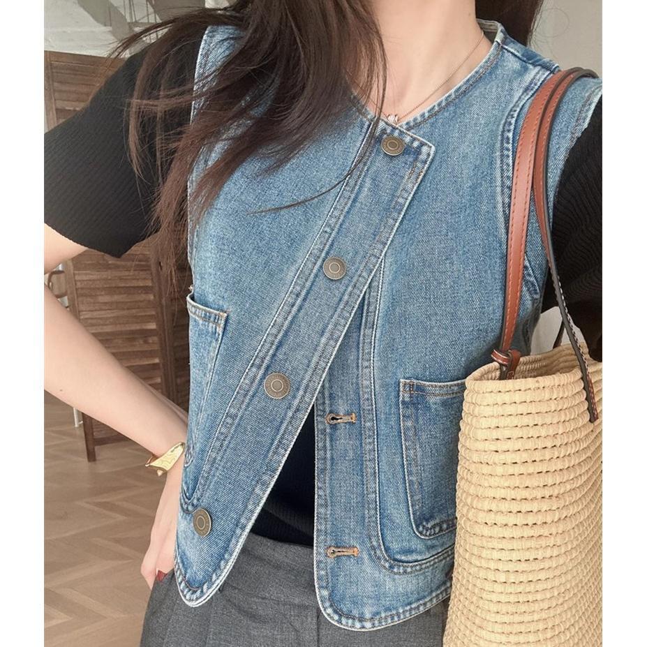 Chaleco vaquero de mezclilla de moda y versátil para mujer, nuevo para primavera y verano, estilo corto holgado, exterior petite sin mangas