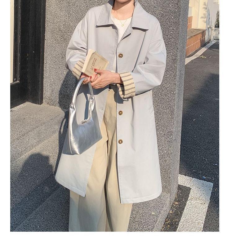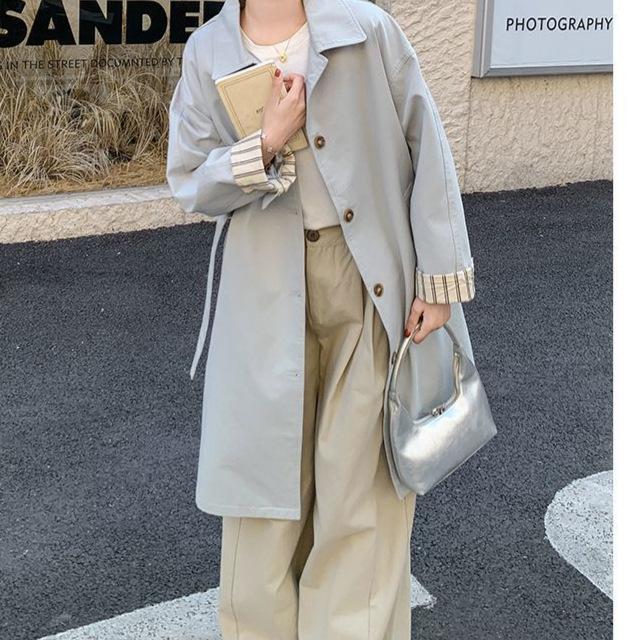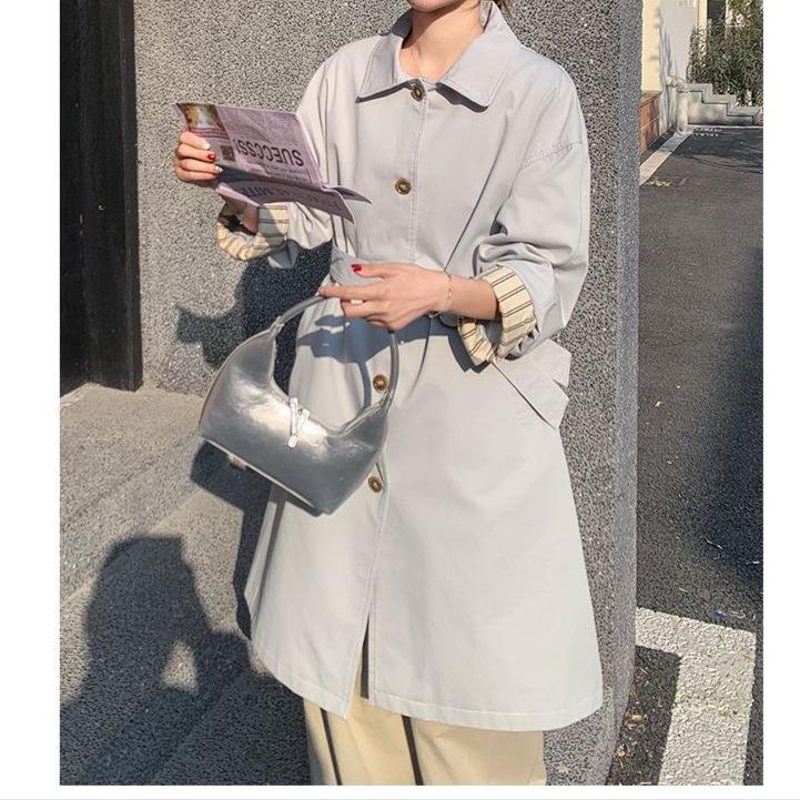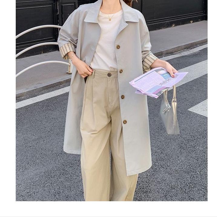 Gabardina minimalista de estilo británico para mujer, nueva moda de primavera y otoño 2025, chaqueta casual holgada de largo medio para mujer