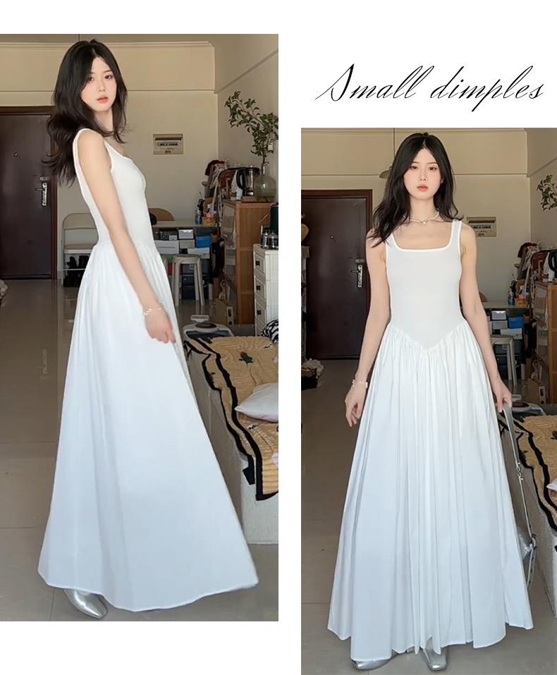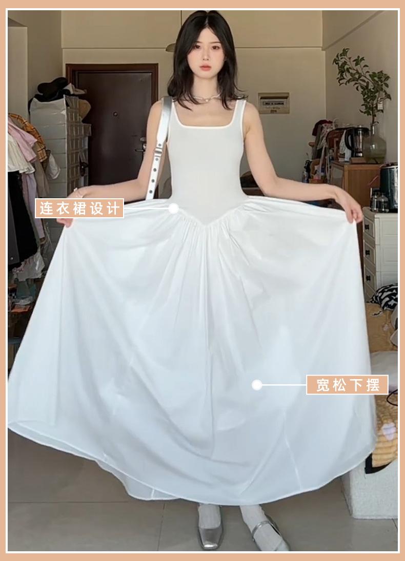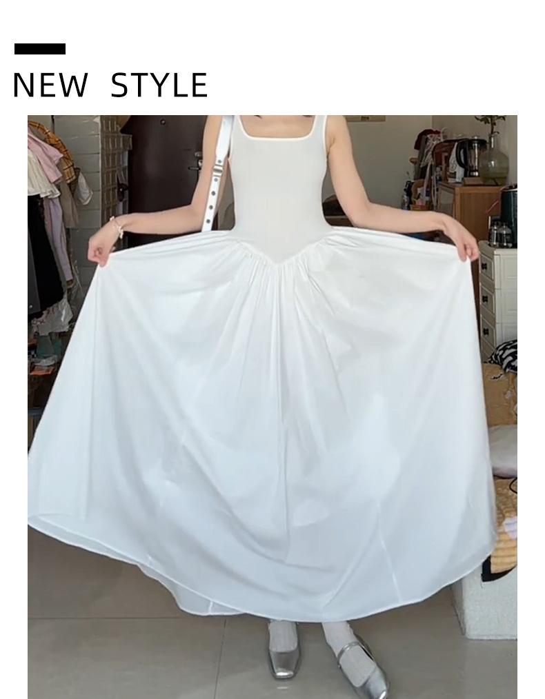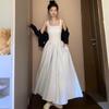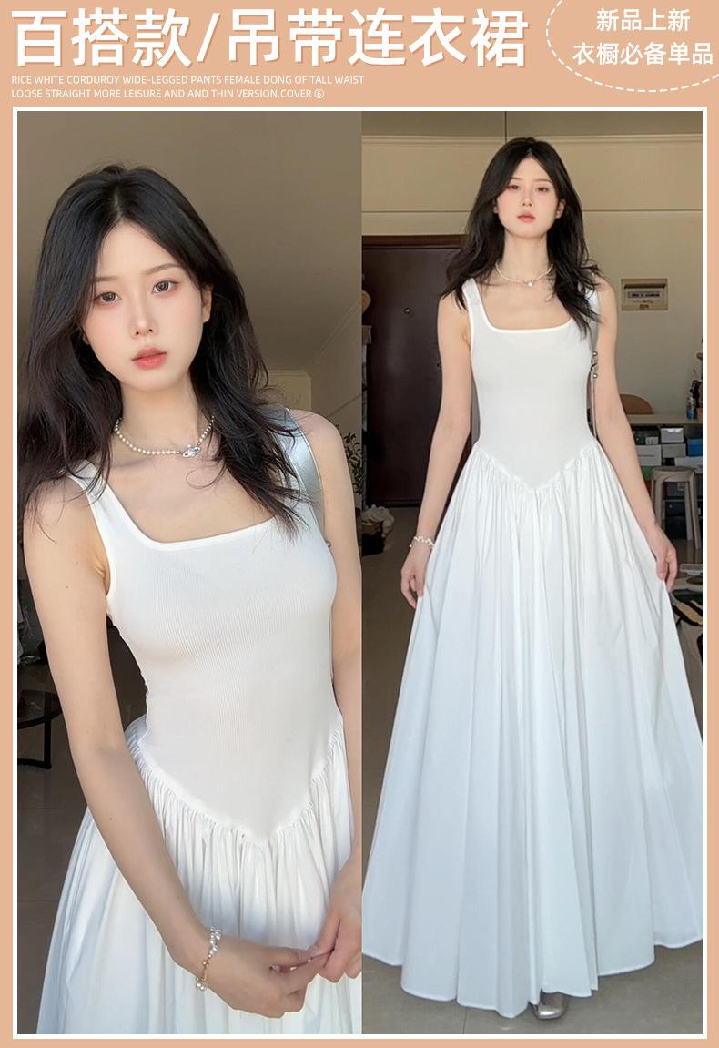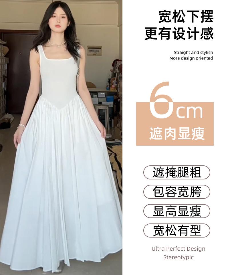 Vestido Blanco con Tirantes de Cuello U para Mujer Verano 2025 Nuevo Adelgazante Cintura Temperamento Francés Versátil Vestido Largo